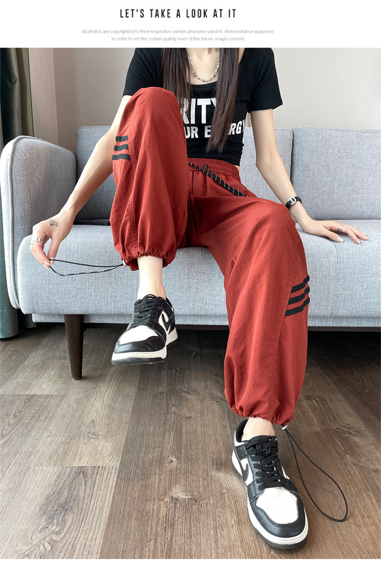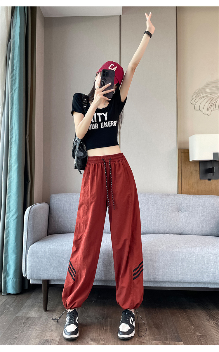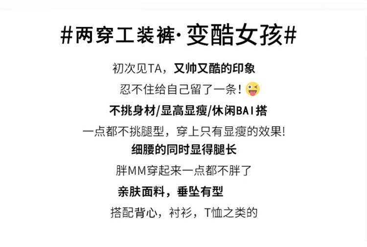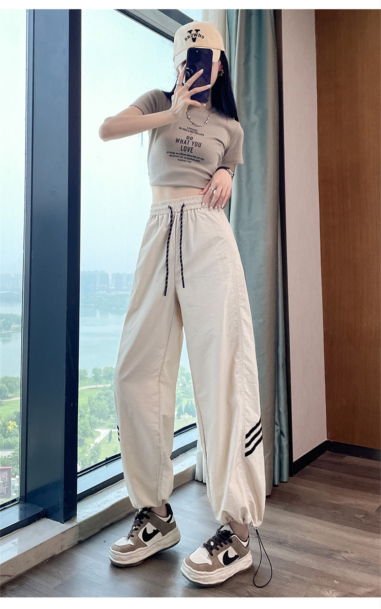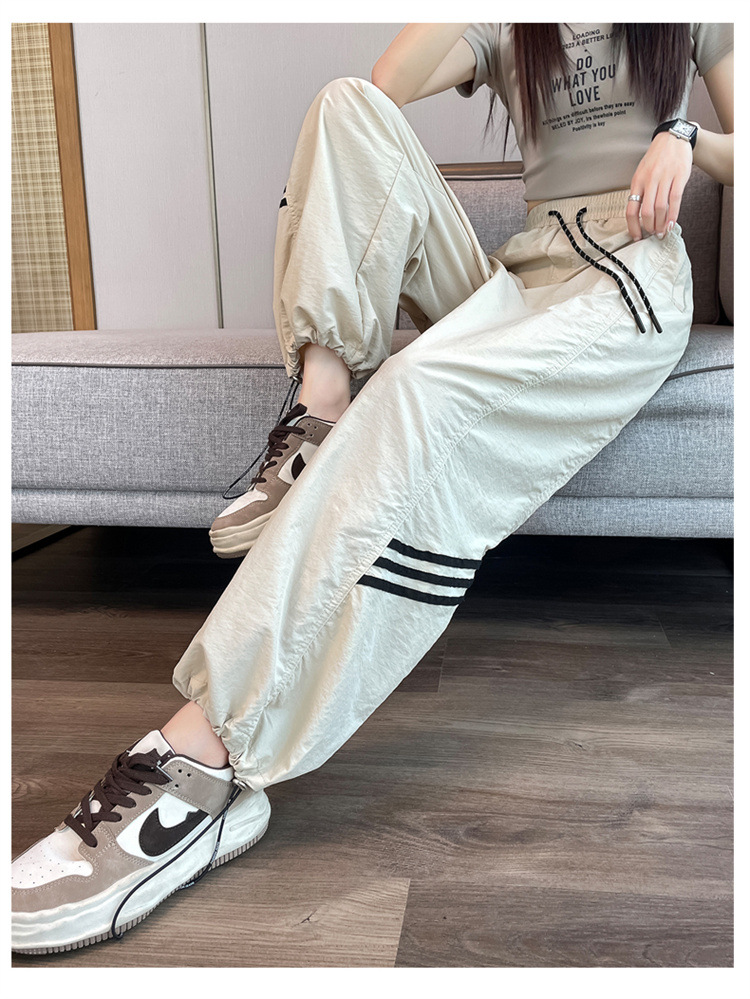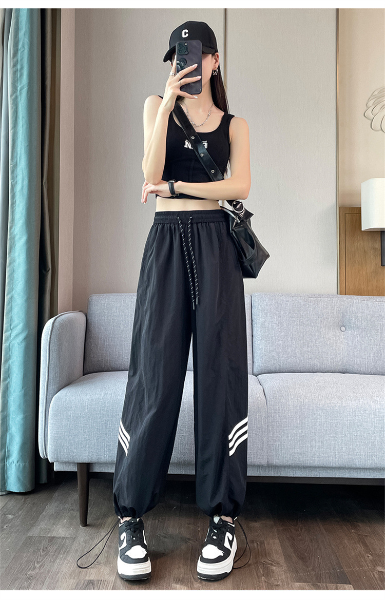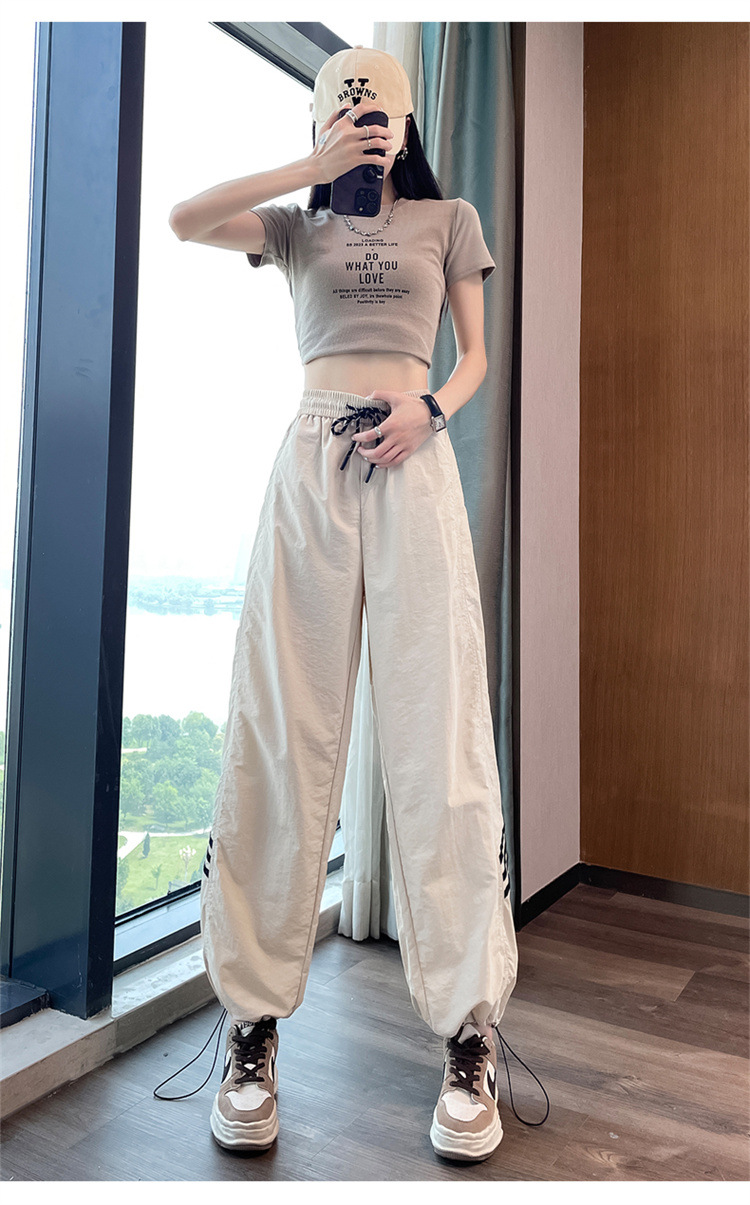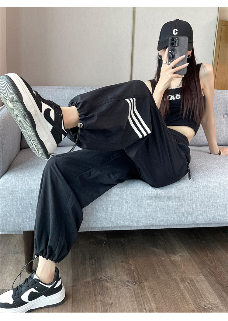 【美式拼接工装裤】夏季凉感速干薄款抽绳可两穿束脚阔腿高腰休闲运动裤
