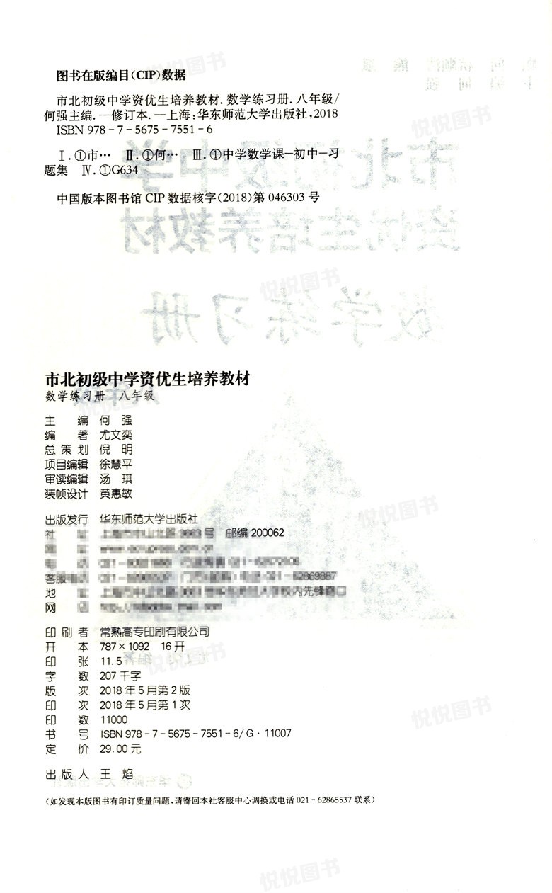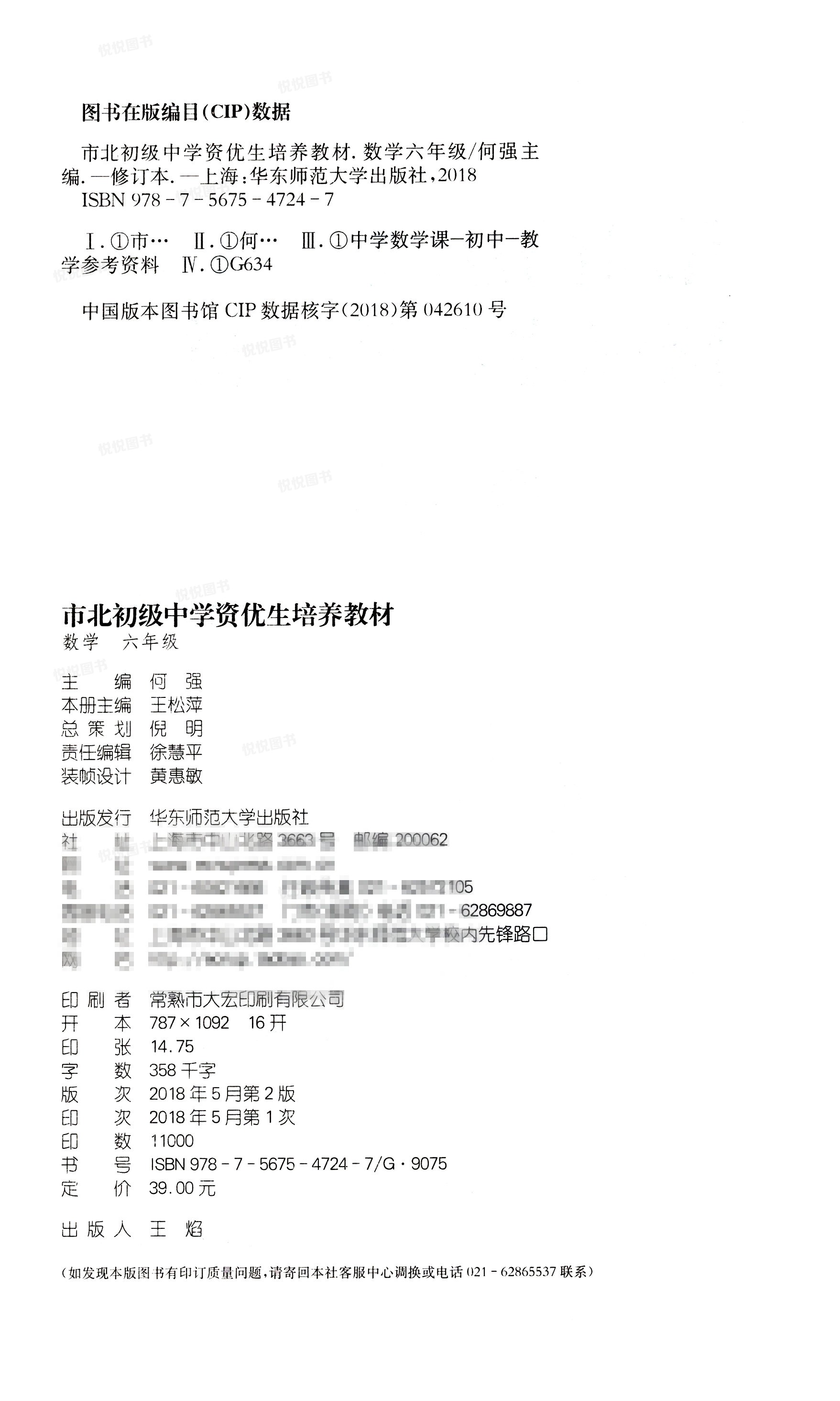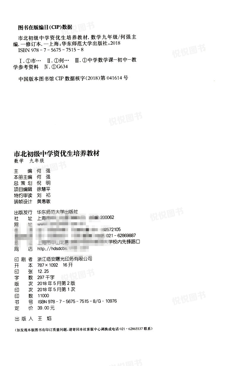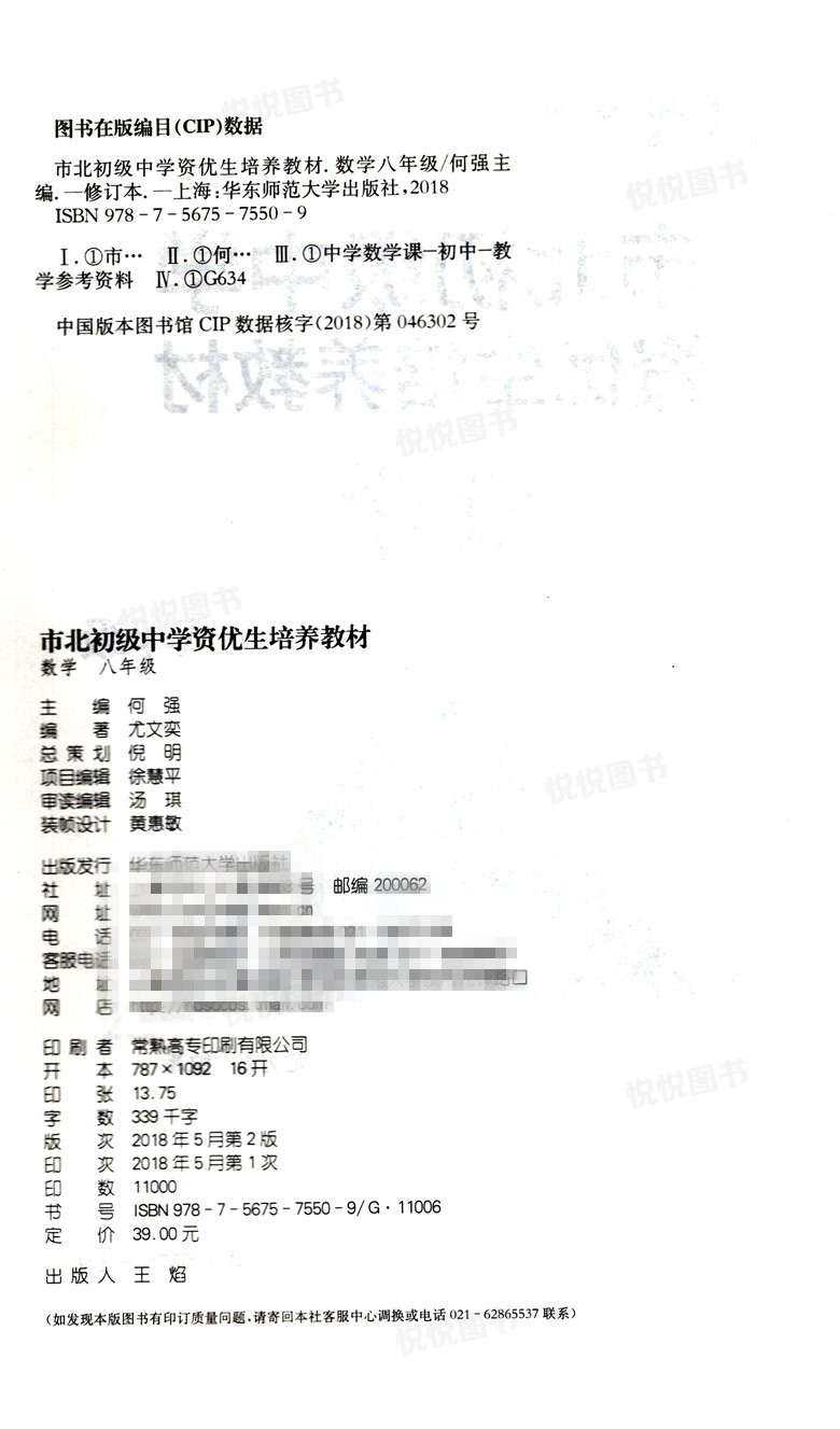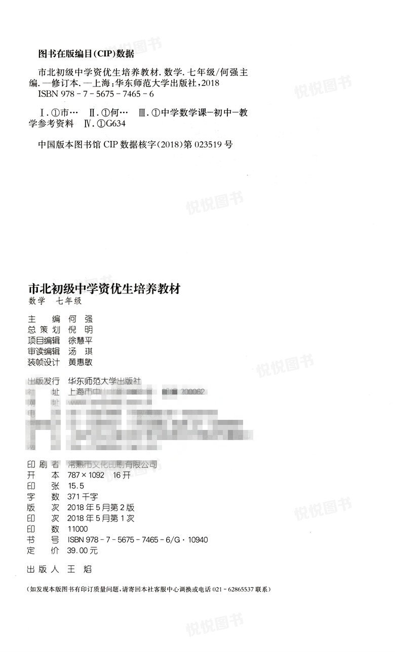 市北初级中学资优生培养教材 数学 六七八九年级 教材+练习册 套装Q8册