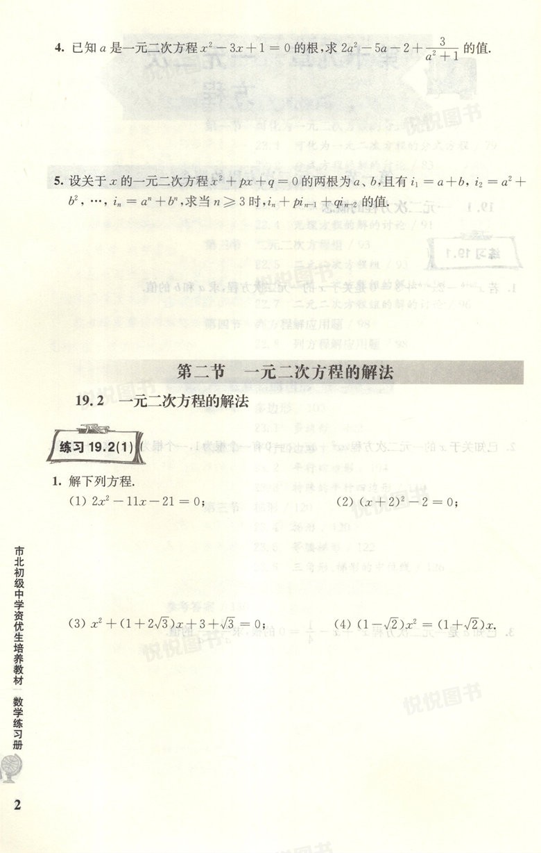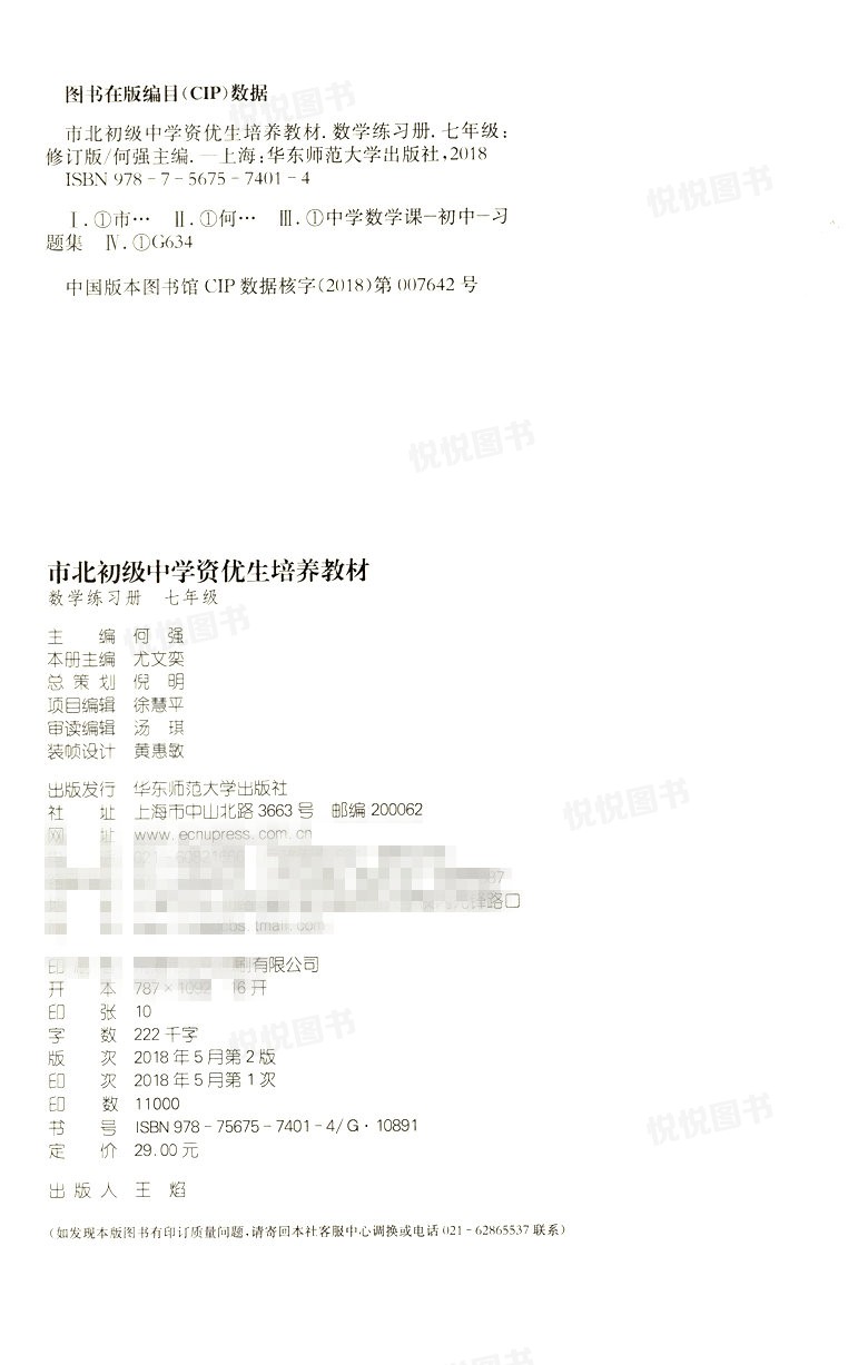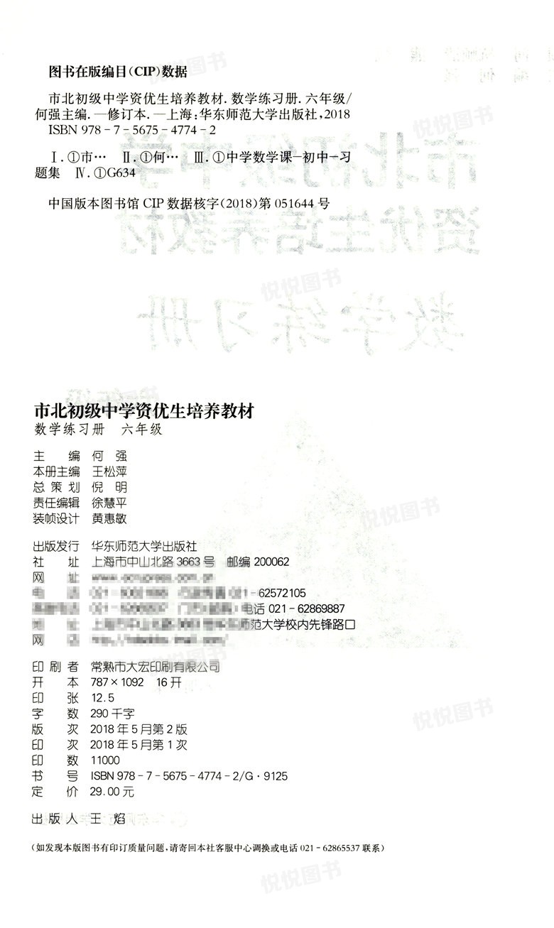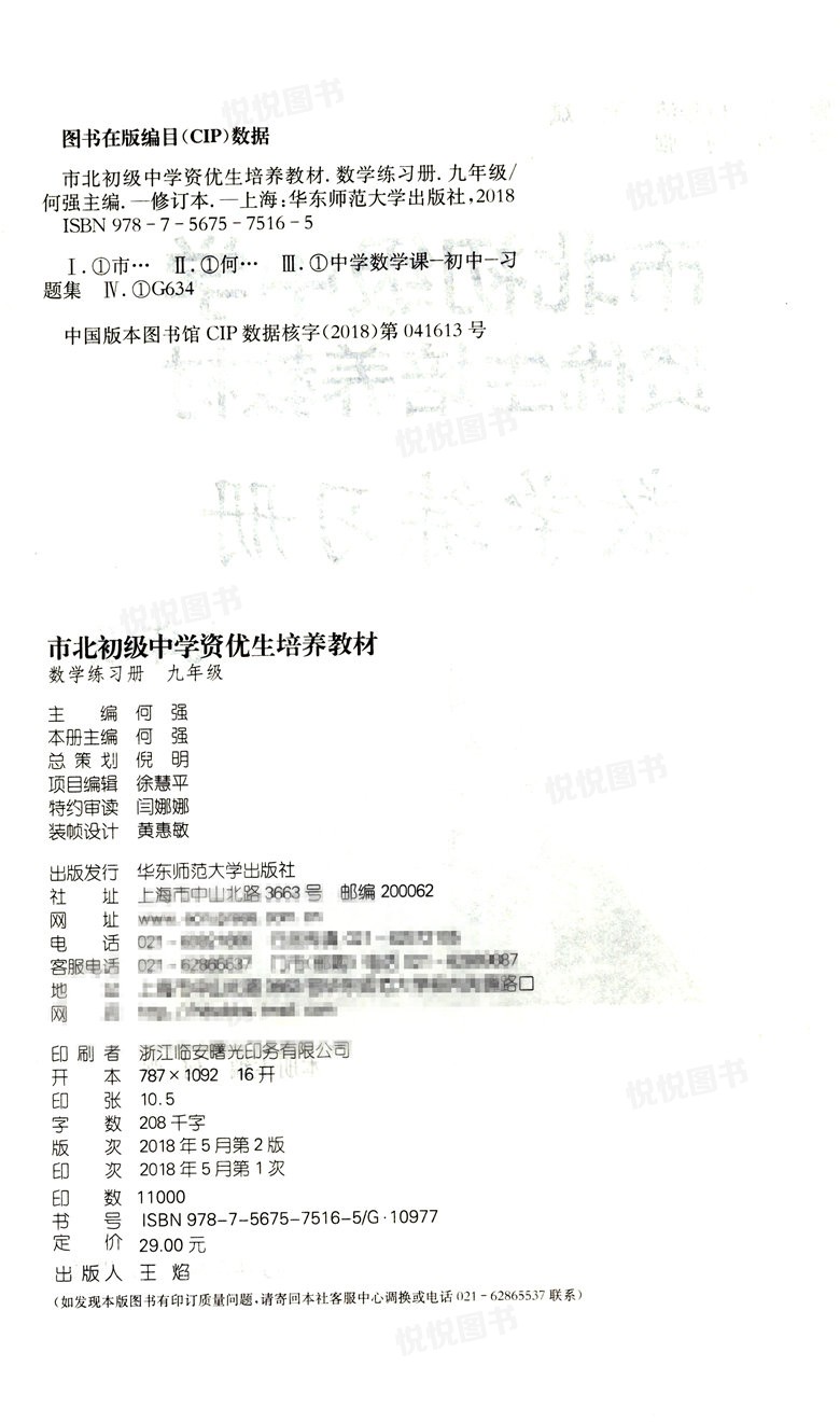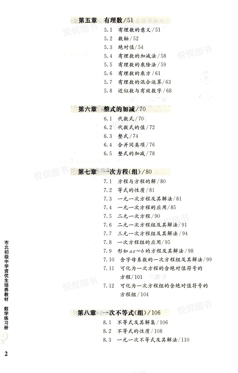 市北初级中学资优生培养教材 数学 六七八九年级 教材+练习册 套装Q8册