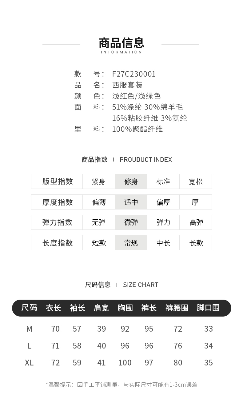 【特价不退换】阿菁娜新品浪漫轻松时髦莫兰迪色系羊毛单排扣西装套装F27C230001