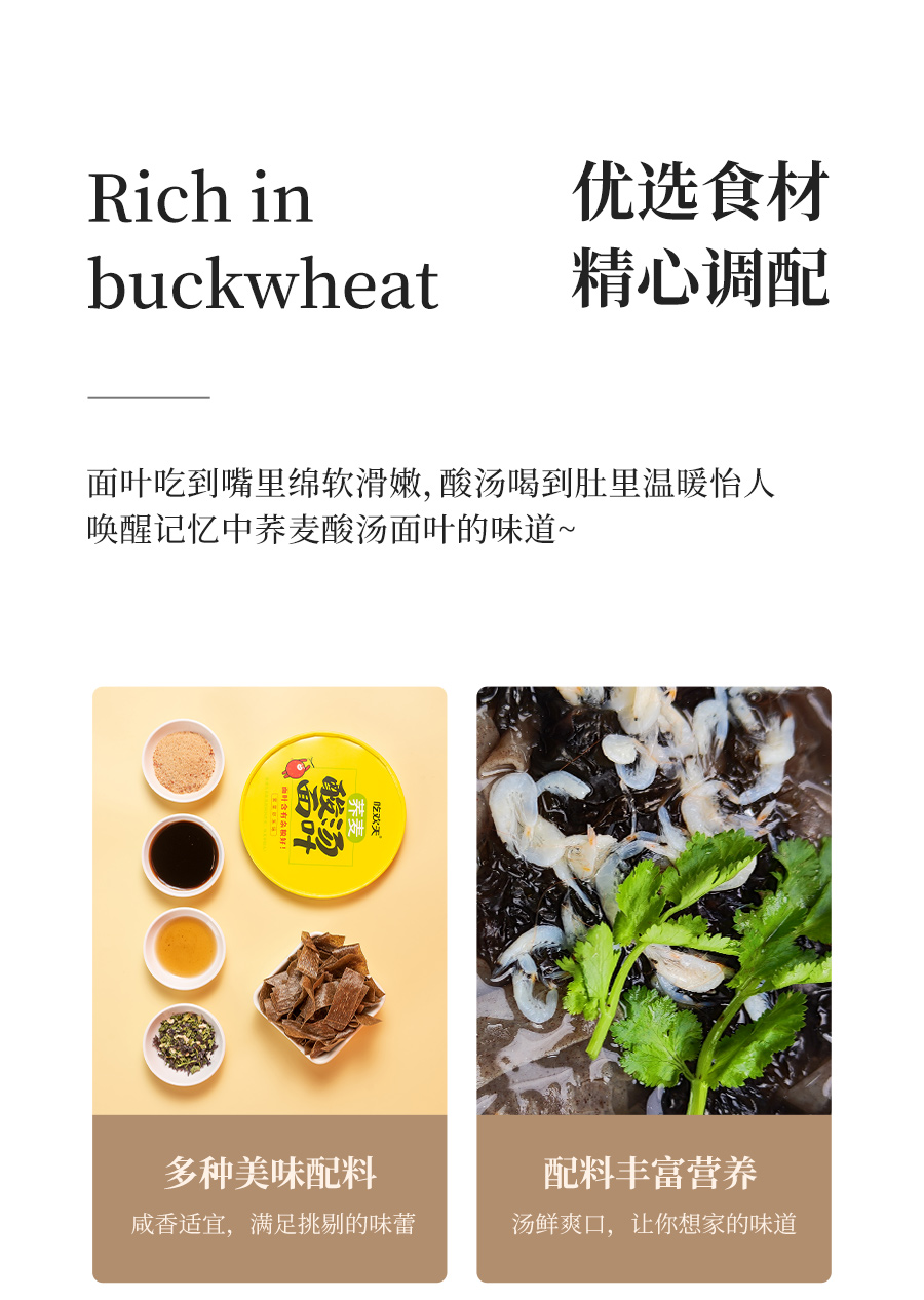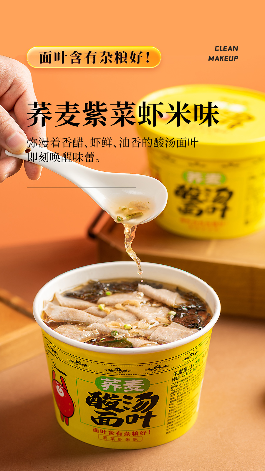 【配料表】小麦粉、荞麦粉(添加量≥20%)食用盐、味精、香辛料、虾皮、脱水紫菜等