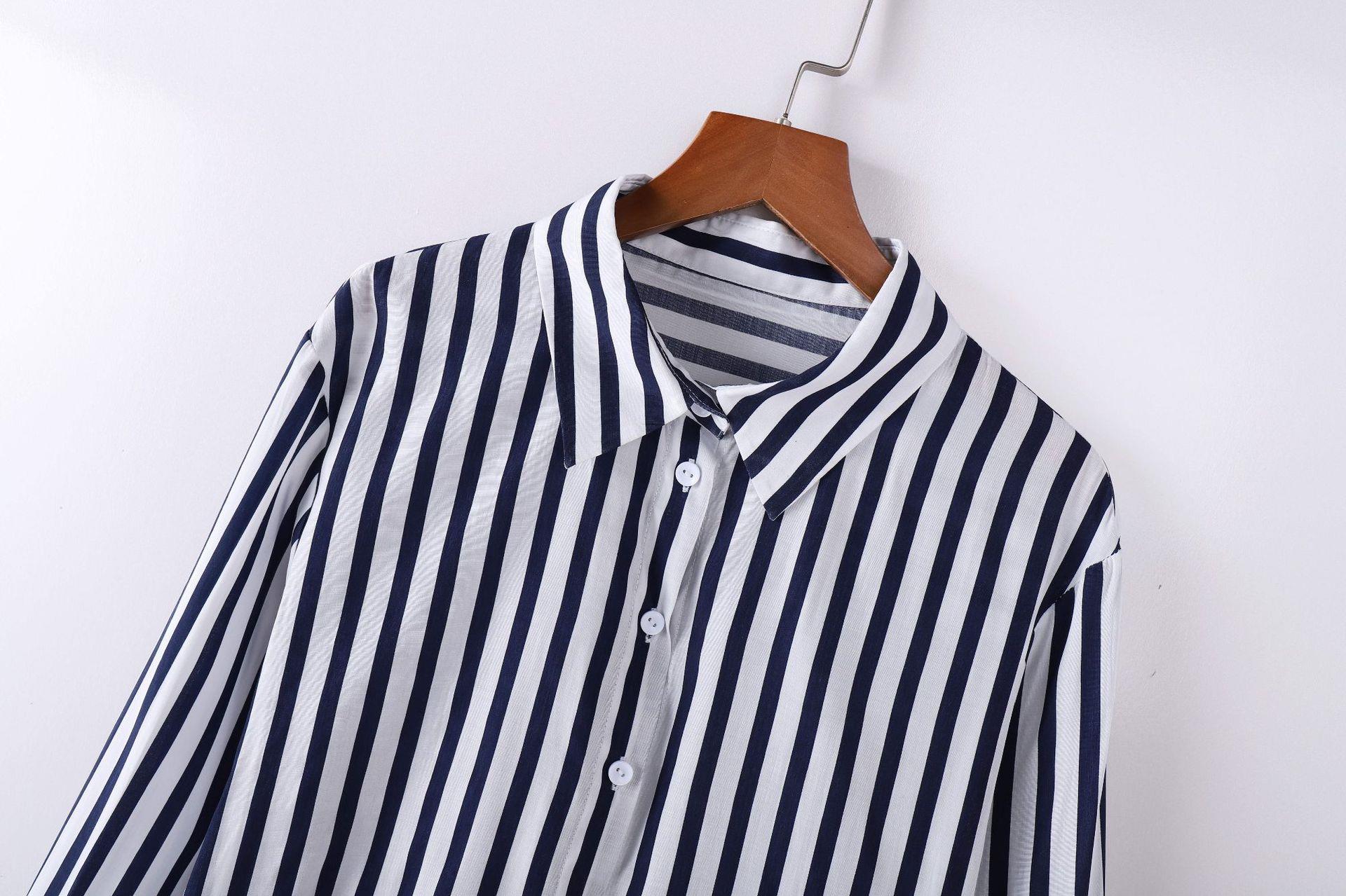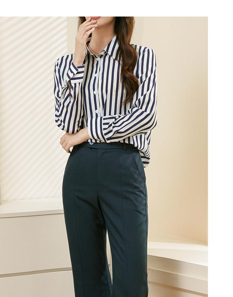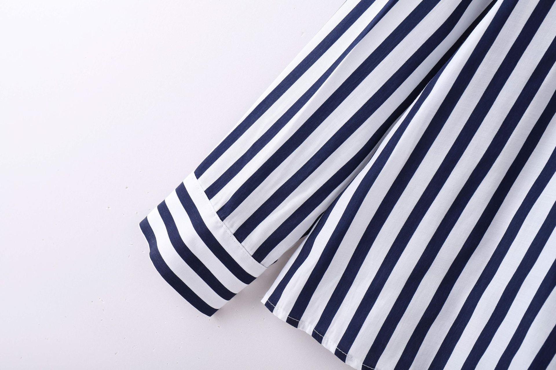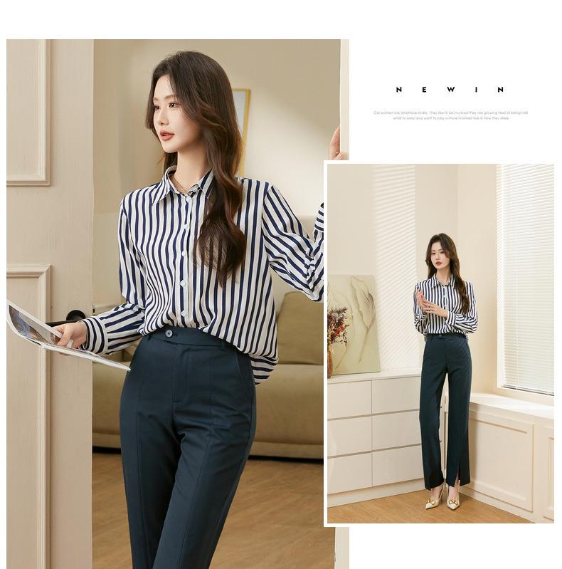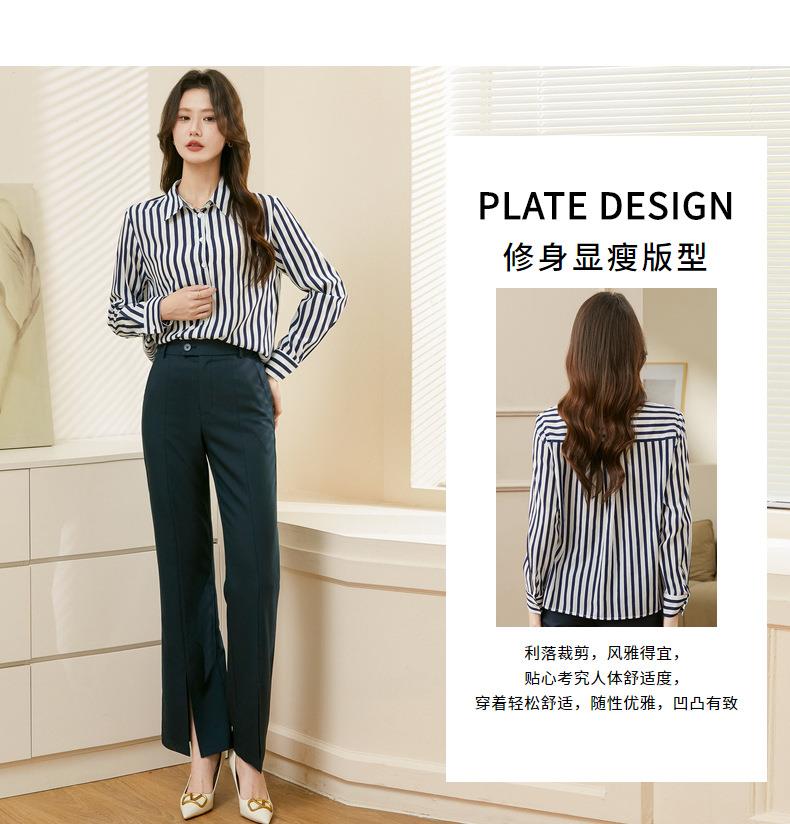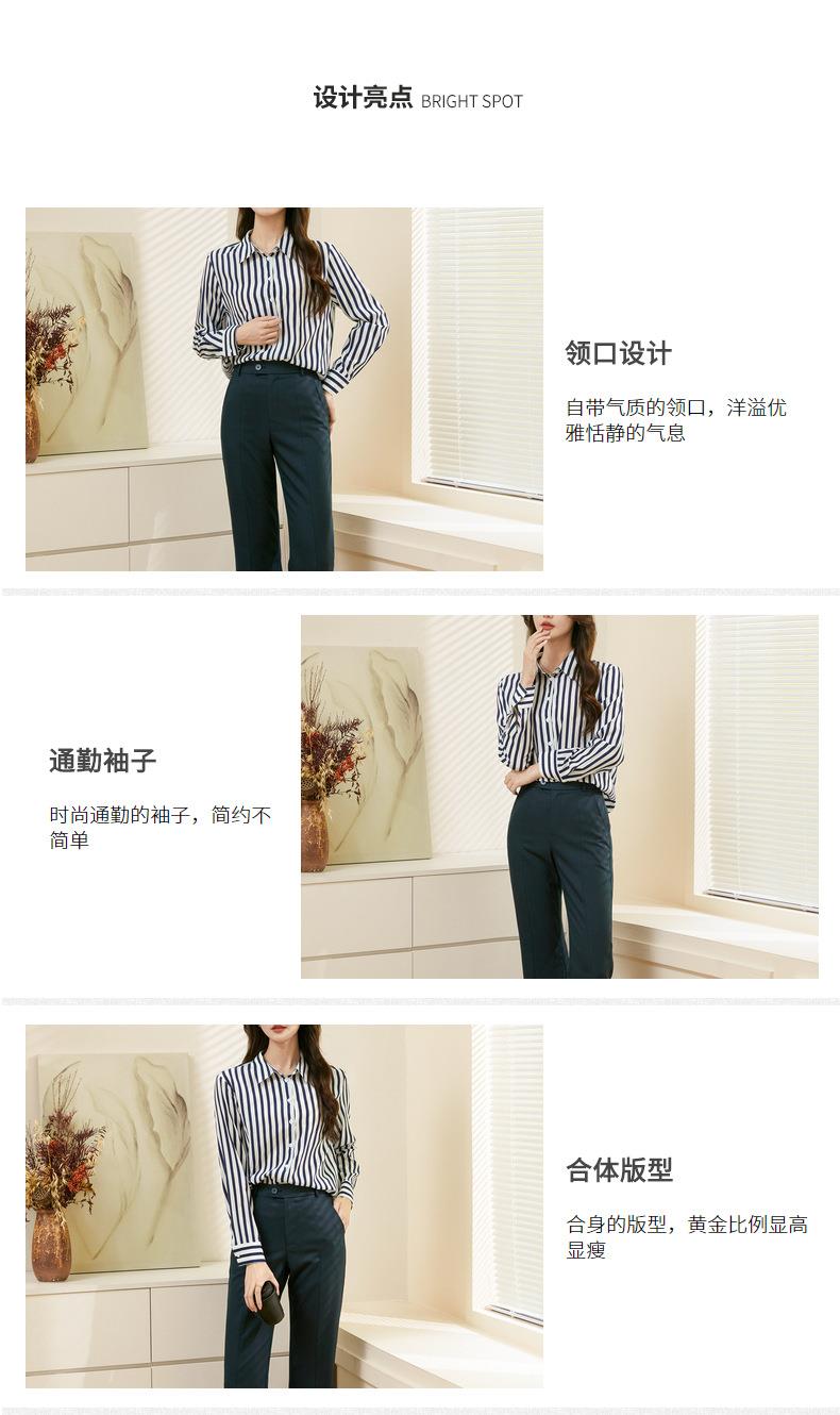 百姿 条纹自留款翻领衬衣2023早秋新款长袖气质OL衬衫女231240