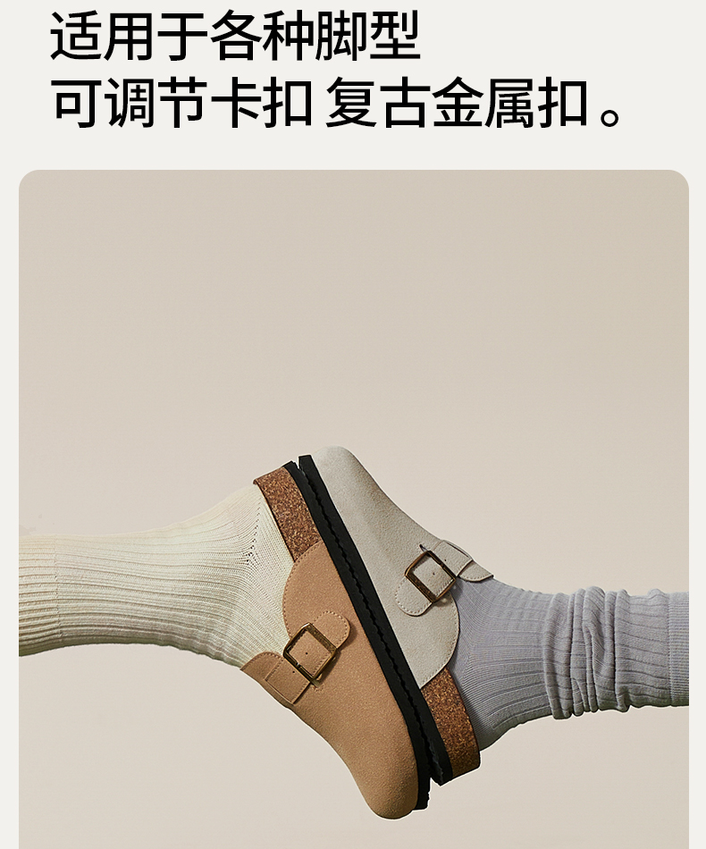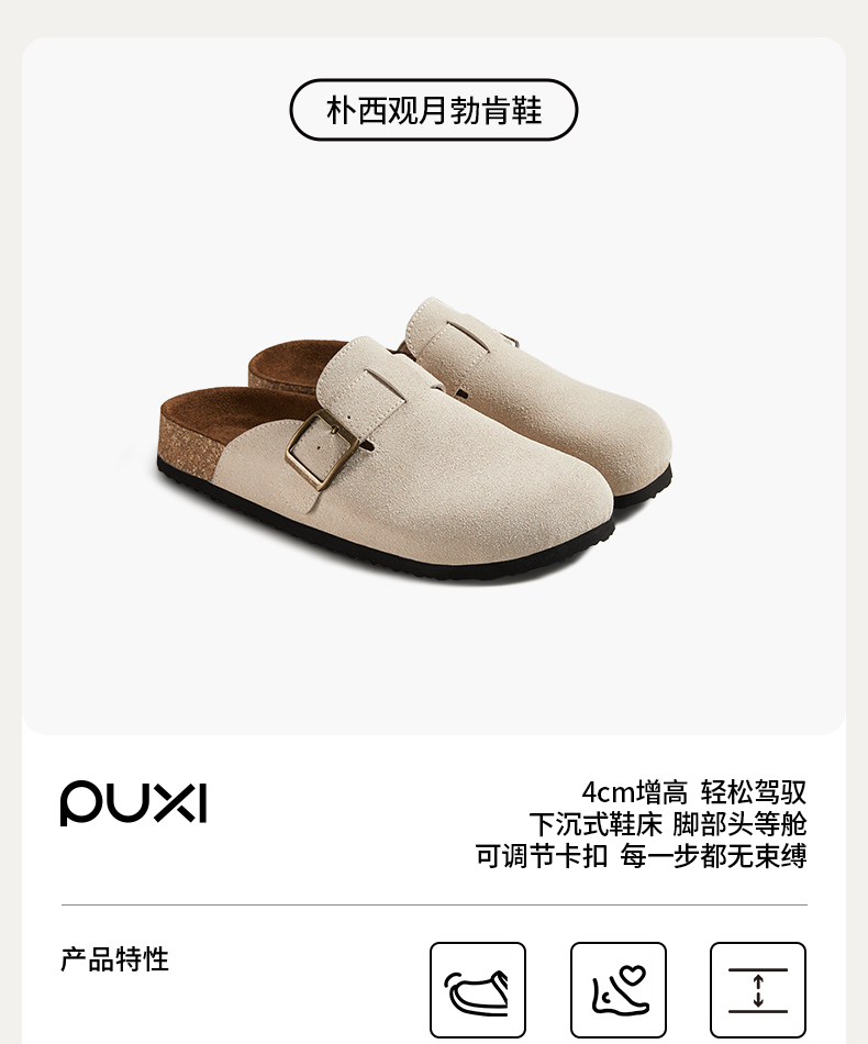 朴西观月勃肯拖鞋女休闲慵懒外穿软木半包拖鞋包头懒人拖