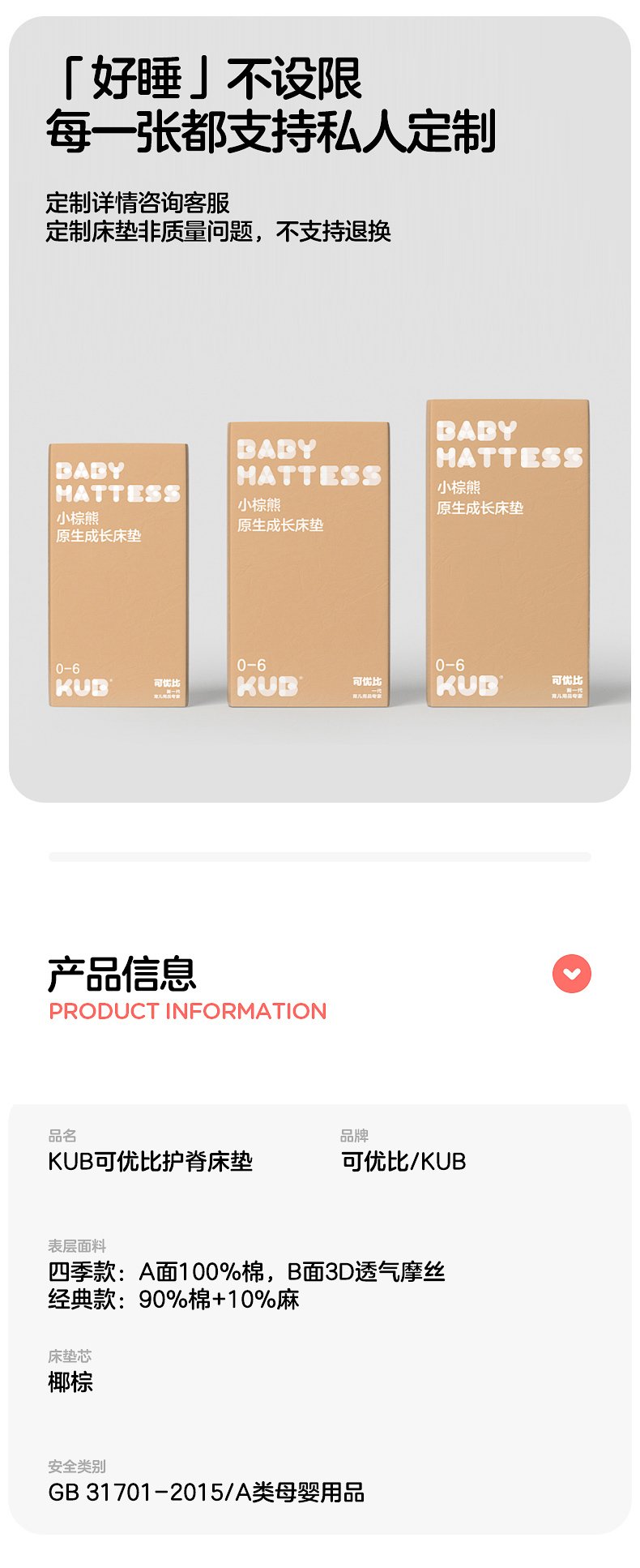 KUB可优比婴儿床垫天然椰棕幼儿园拼接床垫宝宝乳胶儿童床褥定制