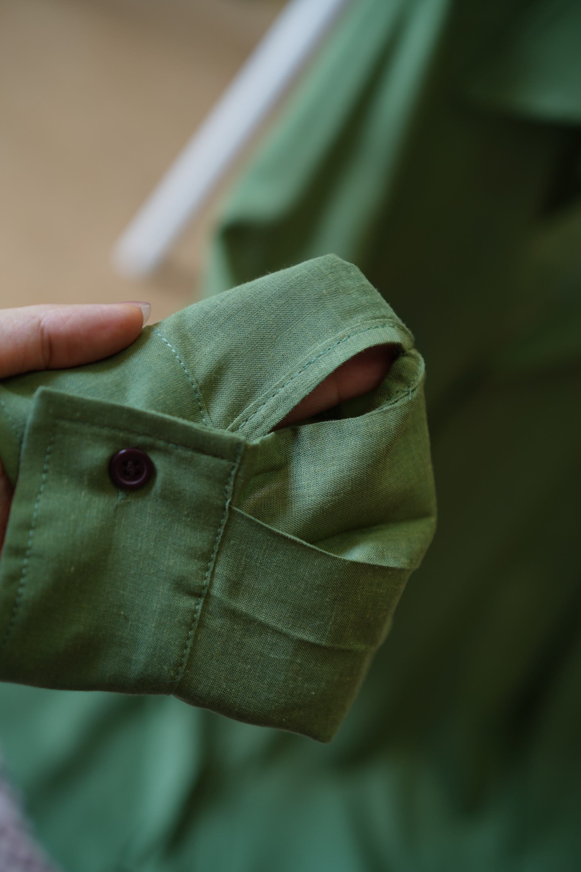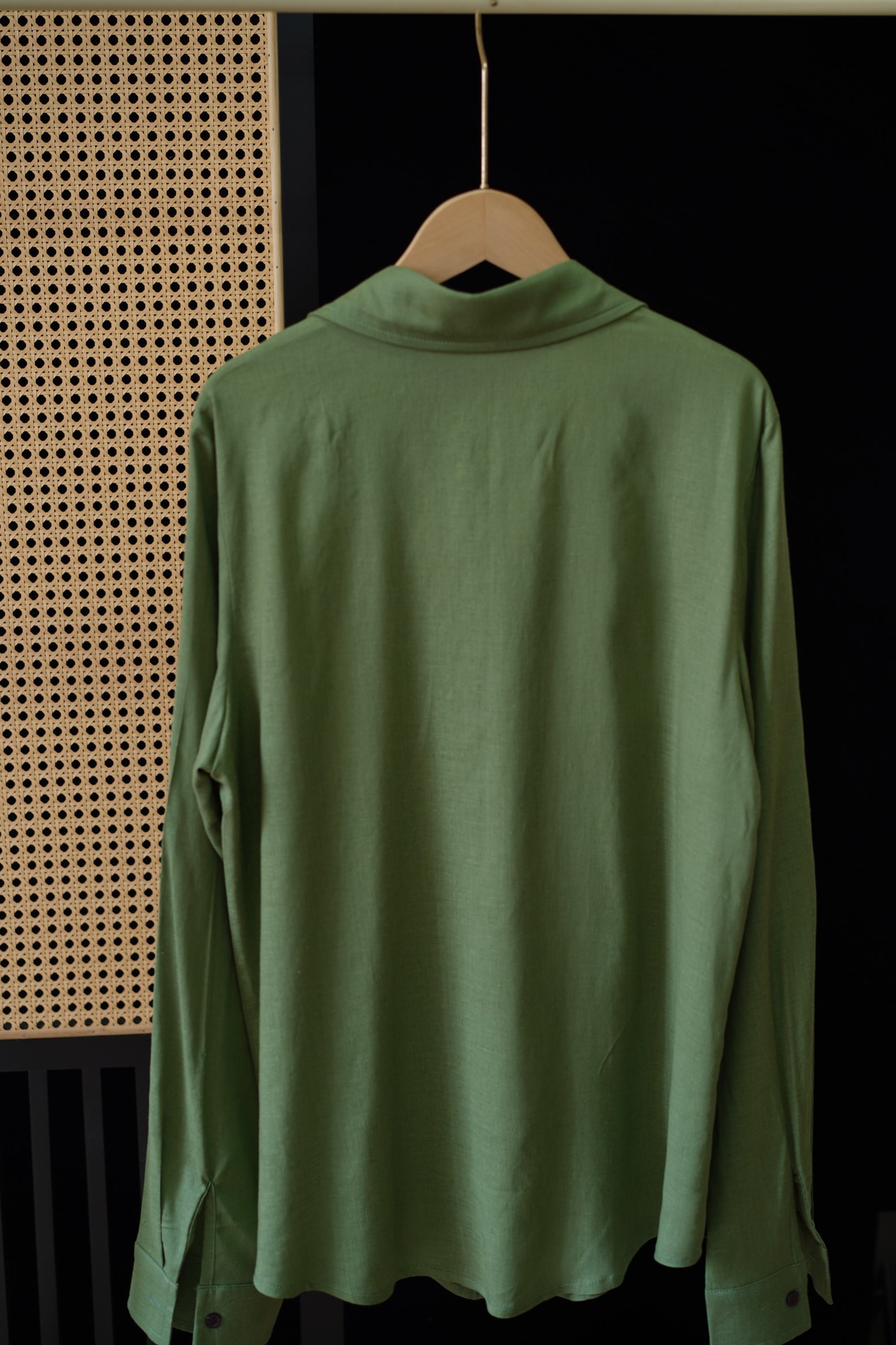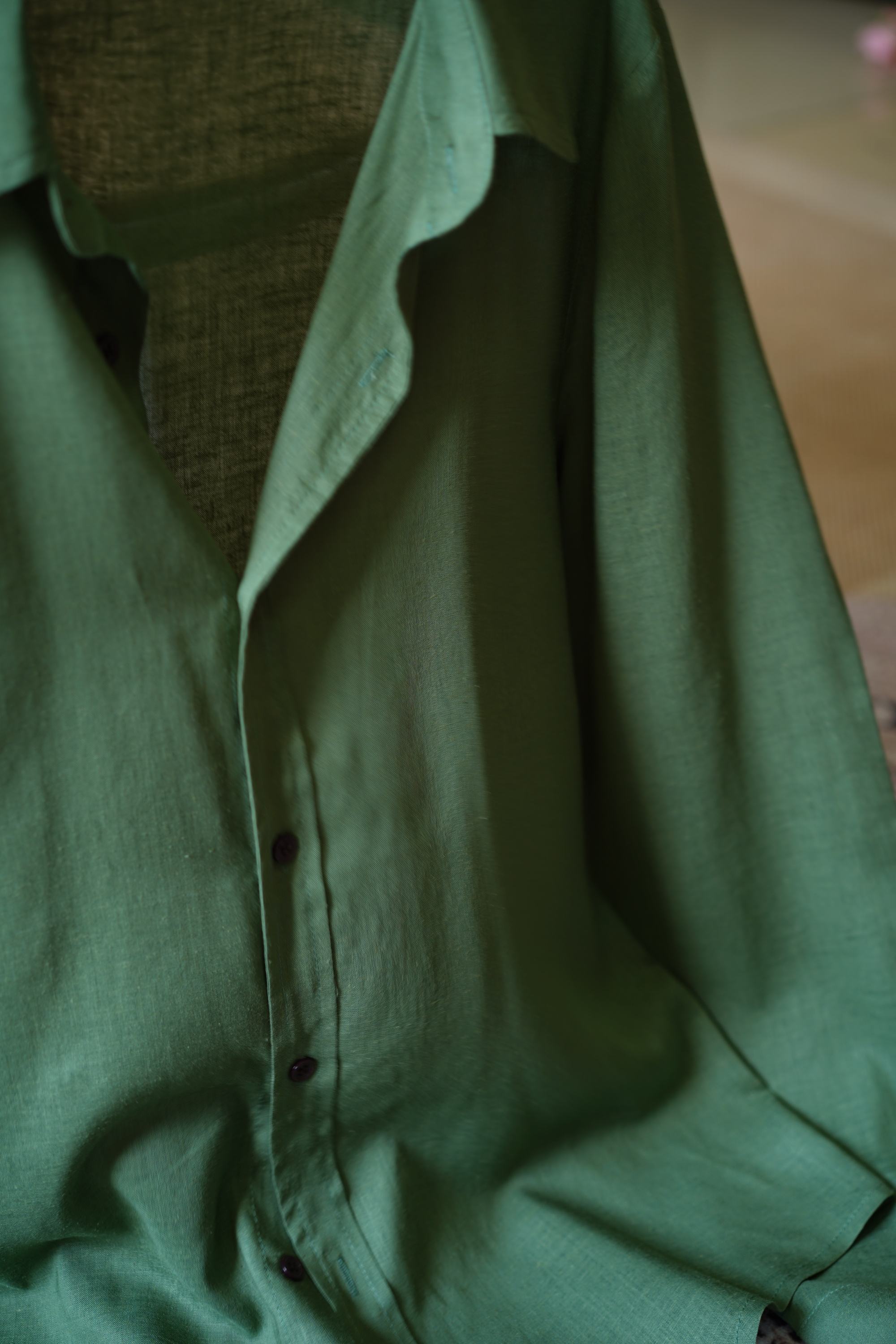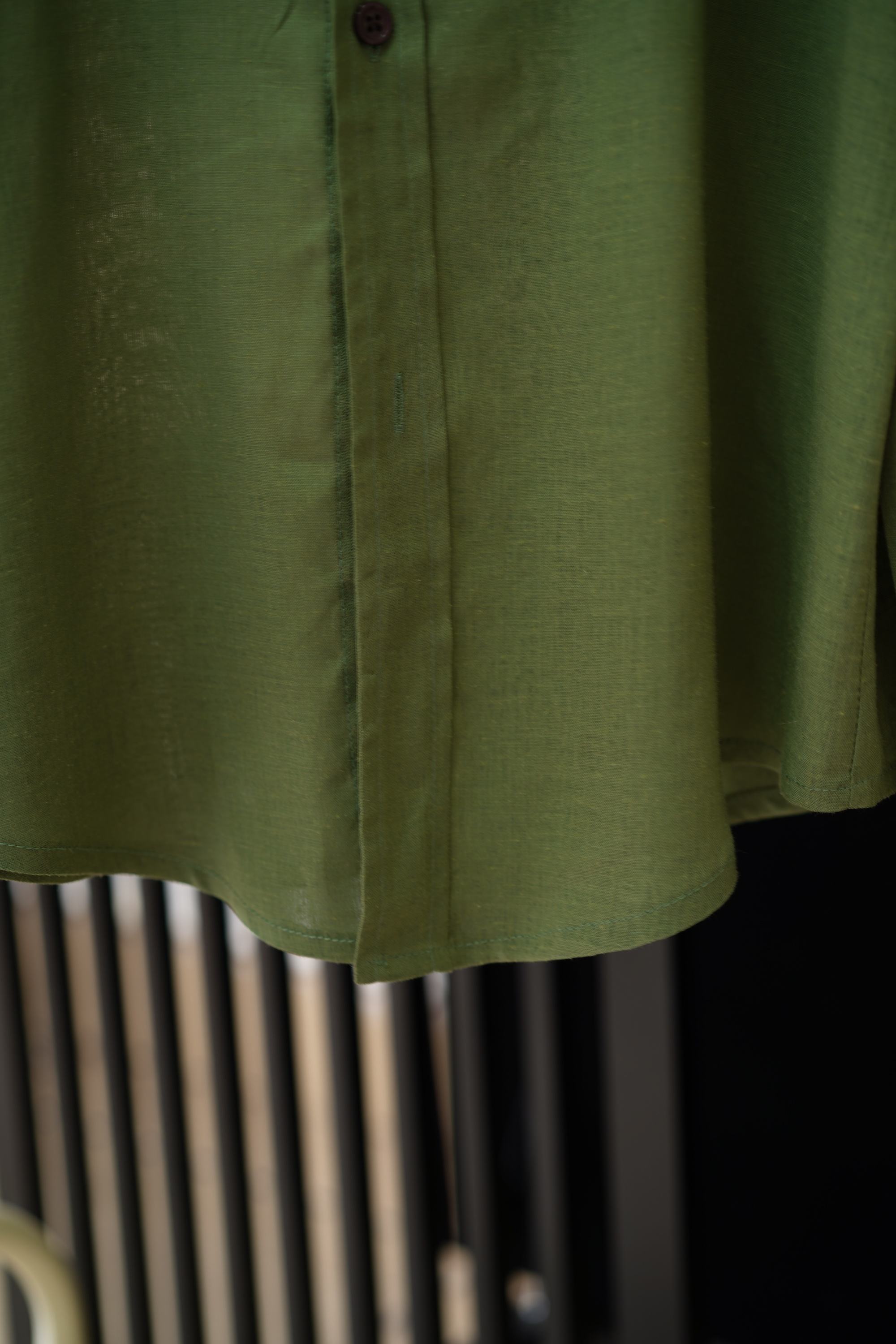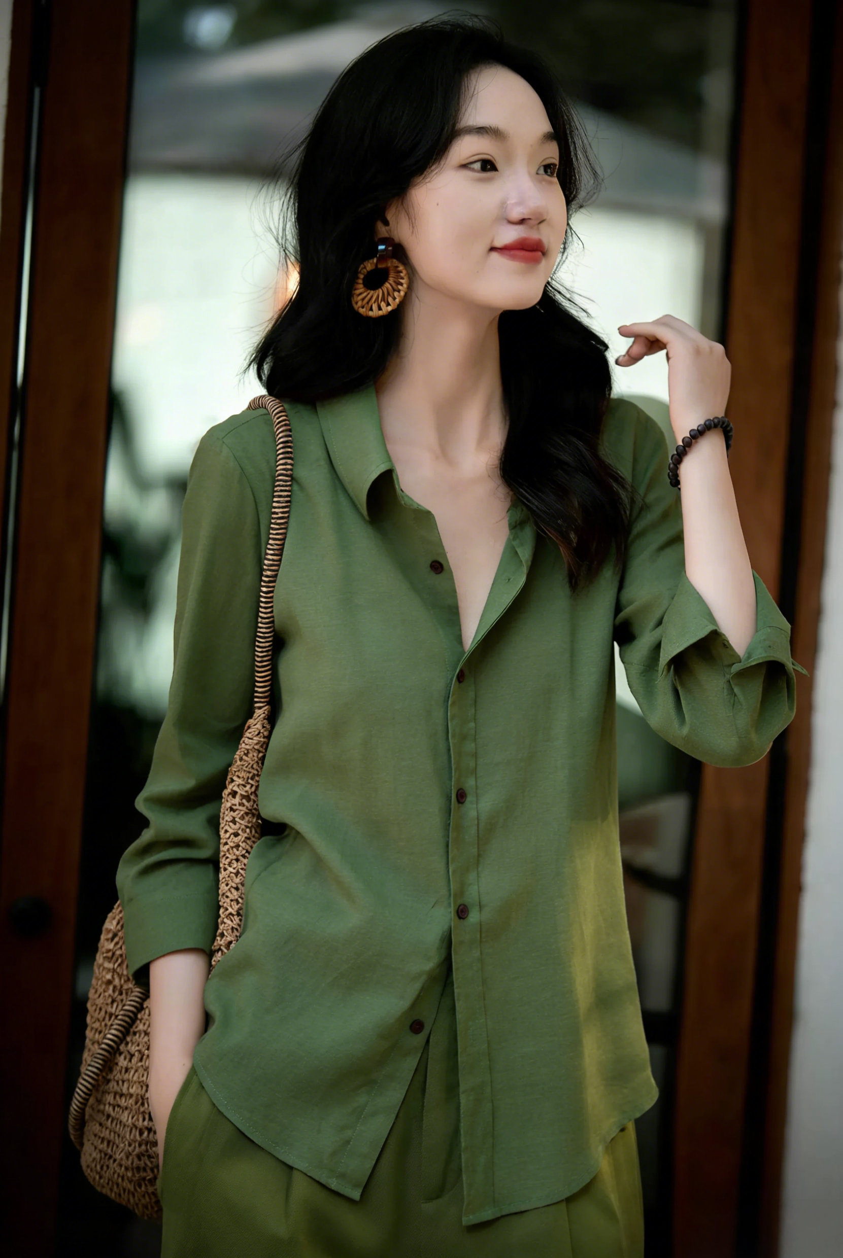 【下单3-7天发货】ORIGNAL&CO松绿色苎麻长袖衬衫,面料轻薄透气,夏天穿也可以保持干爽,宽松版型 不限制任何身材,遮肉显瘦!