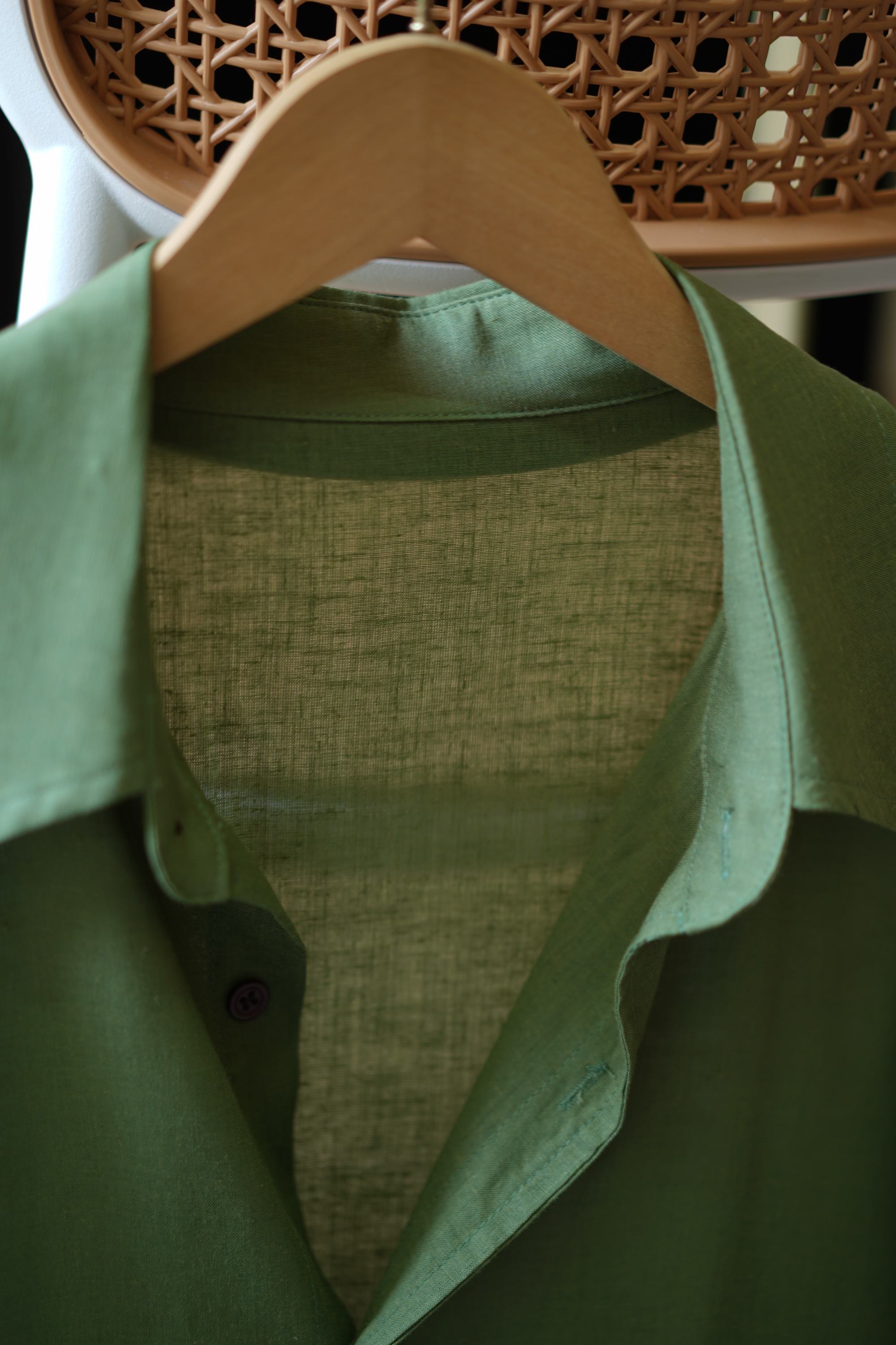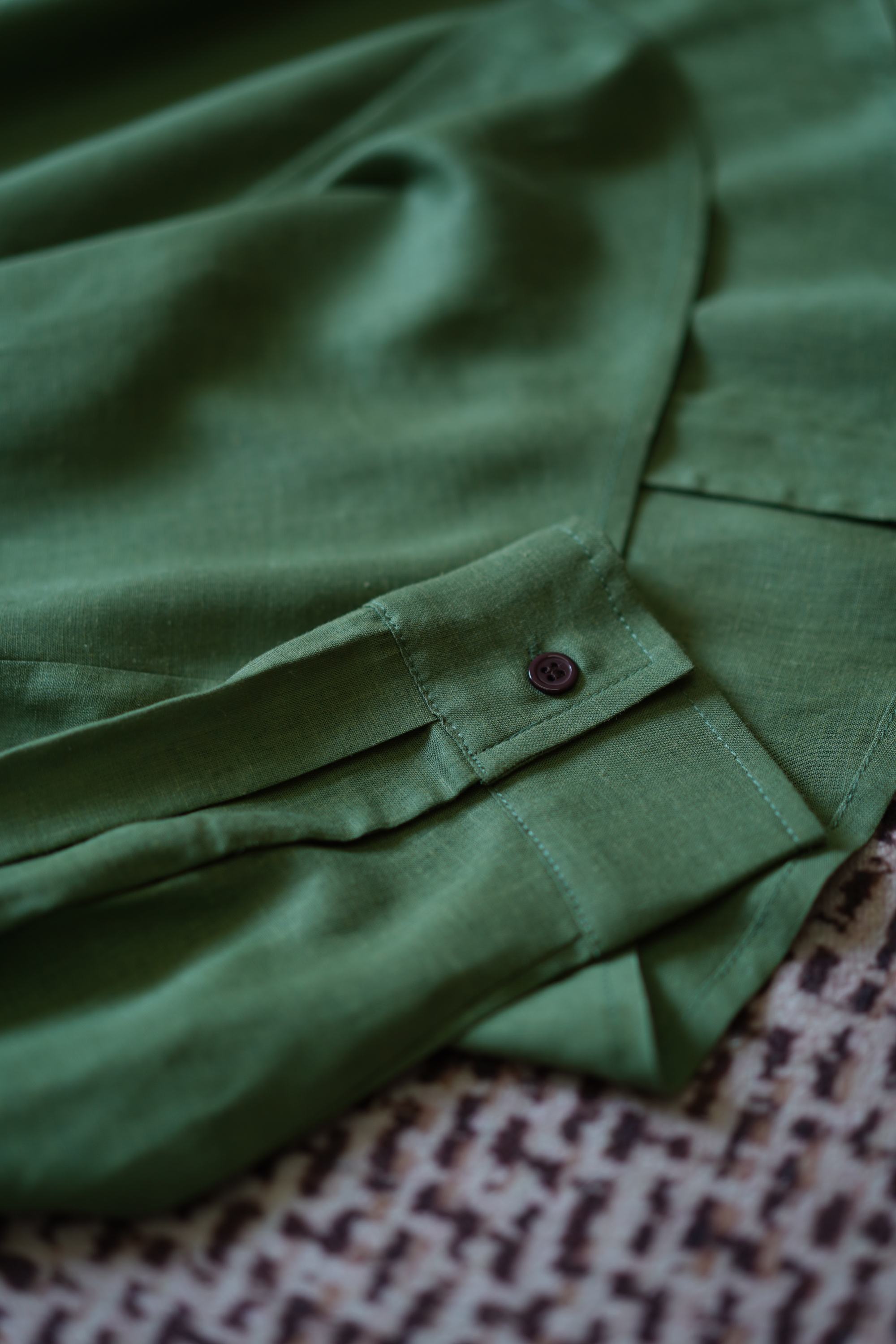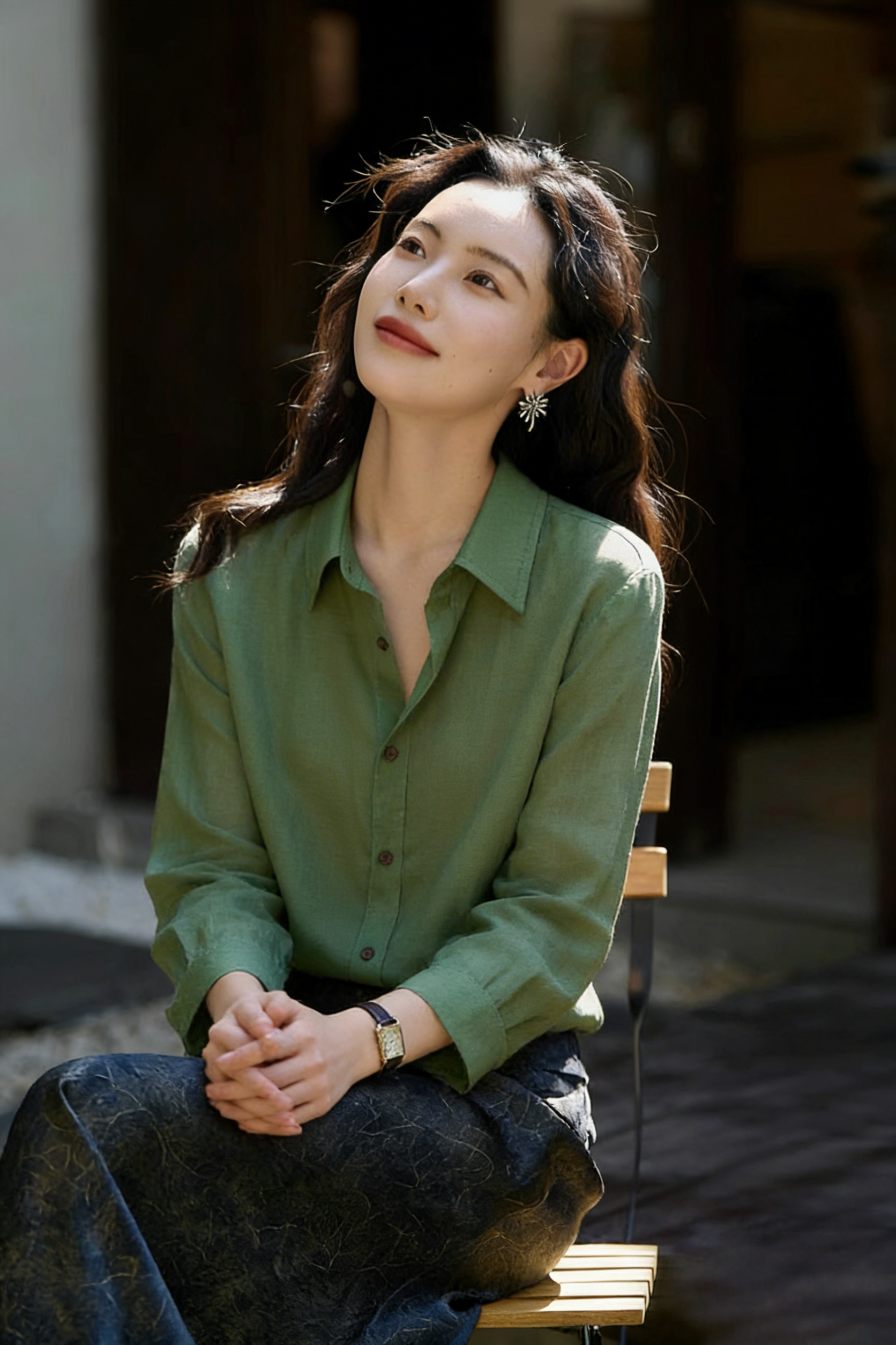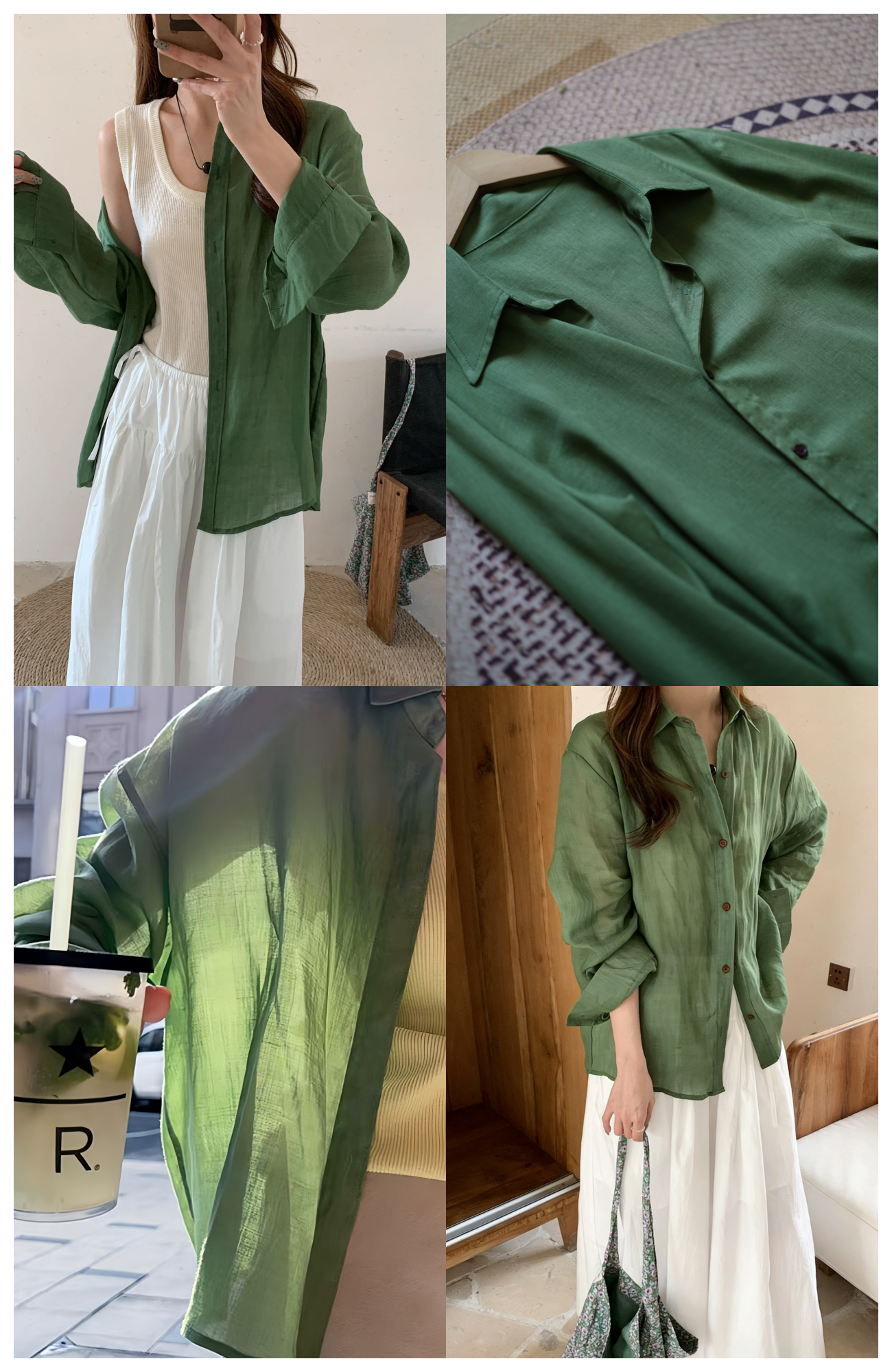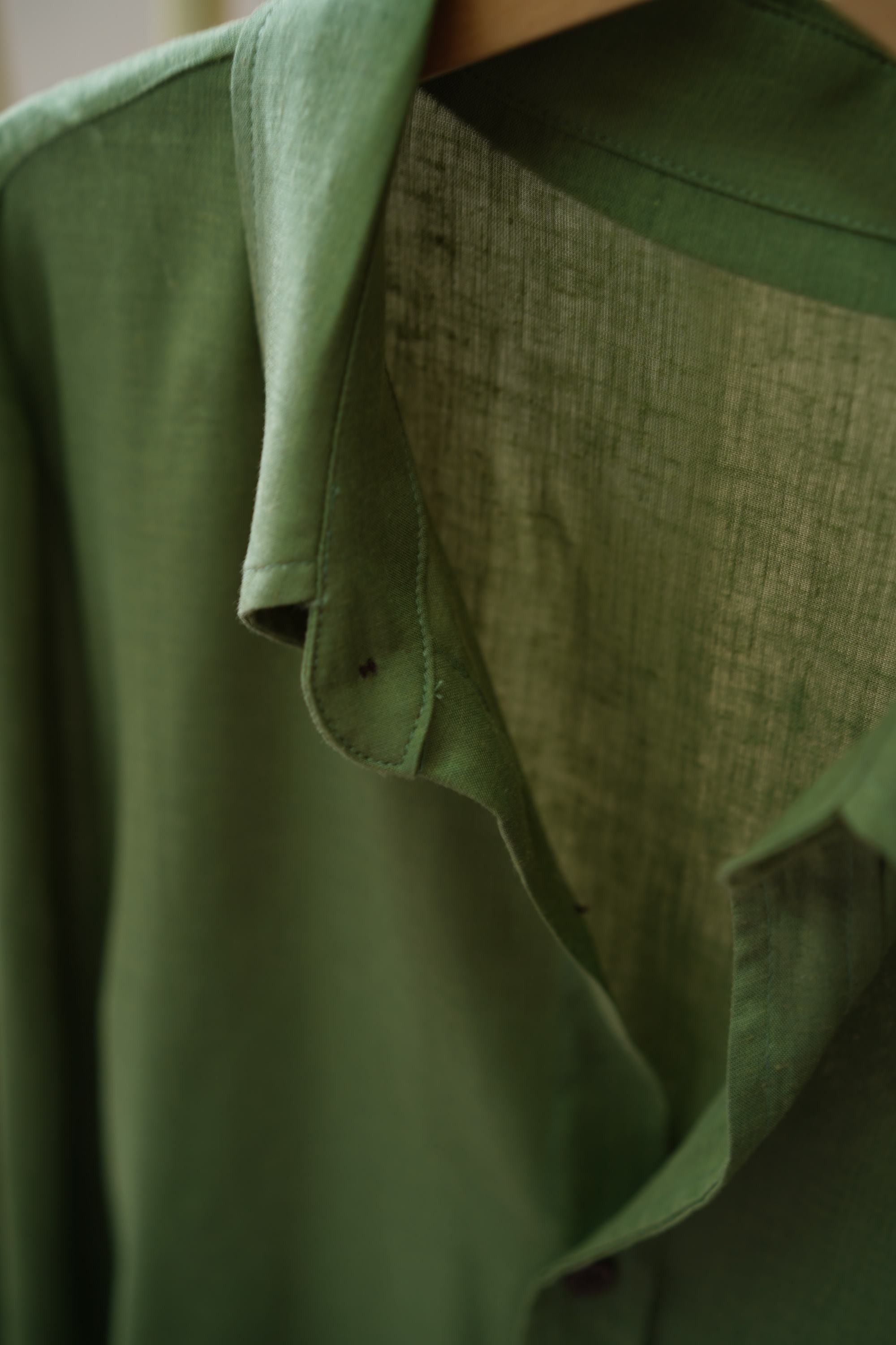 【下单3-7天发货】ORIGNAL&CO松绿色苎麻长袖衬衫,面料轻薄透气,夏天穿也可以保持干爽,宽松版型 不限制任何身材,遮肉显瘦!
