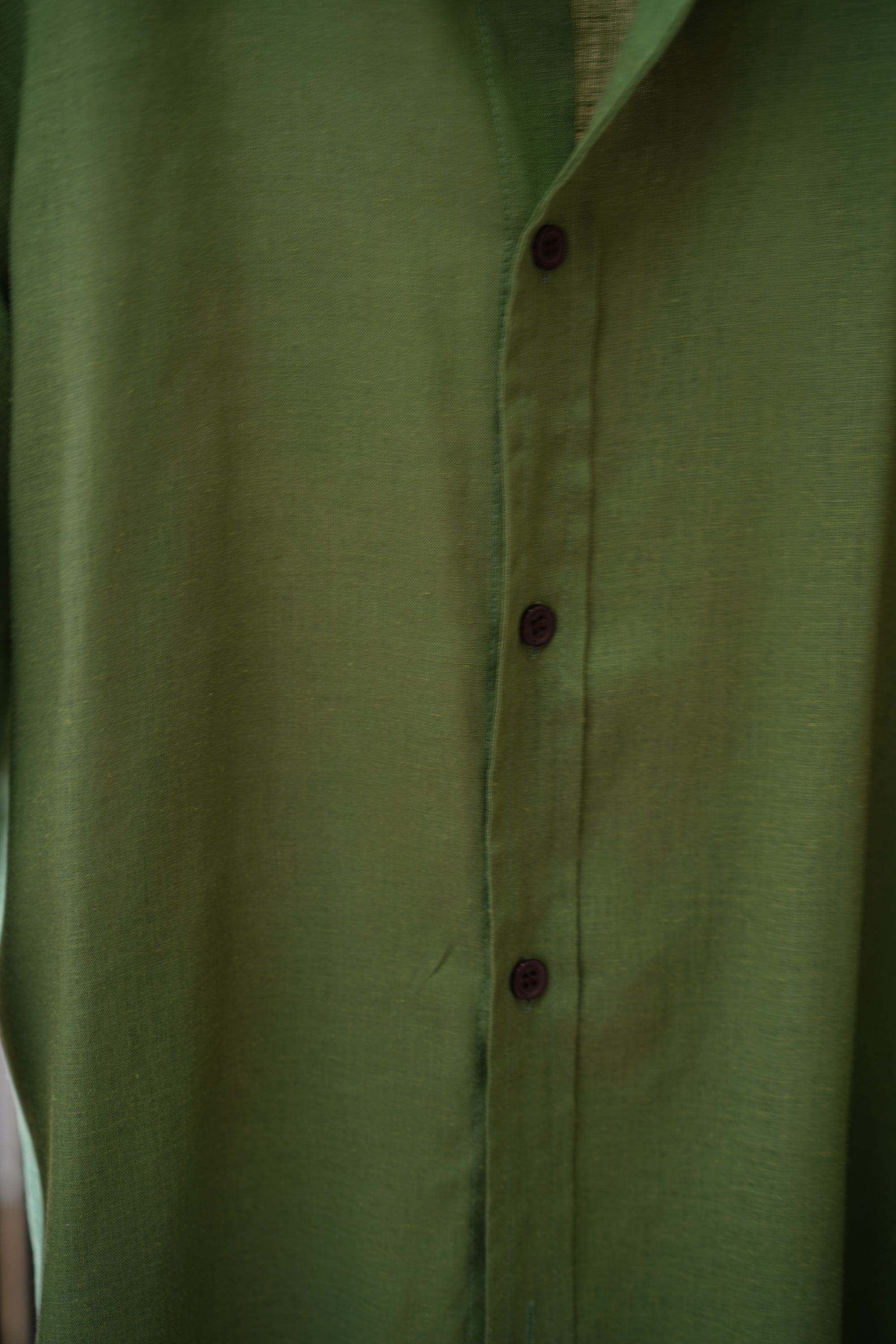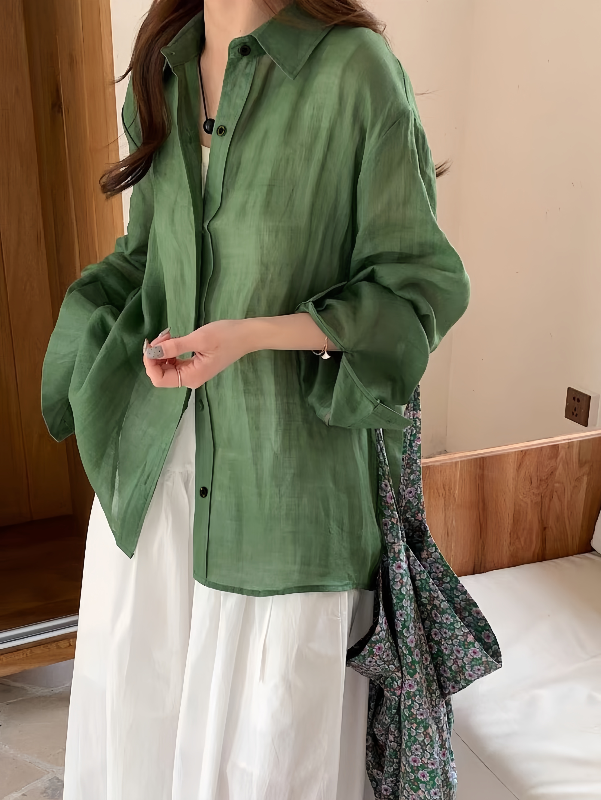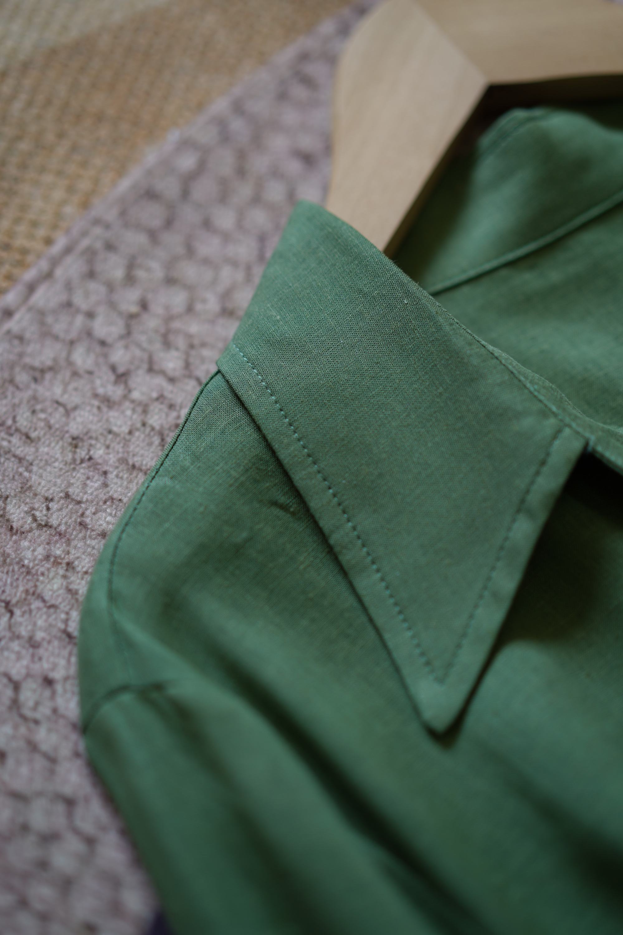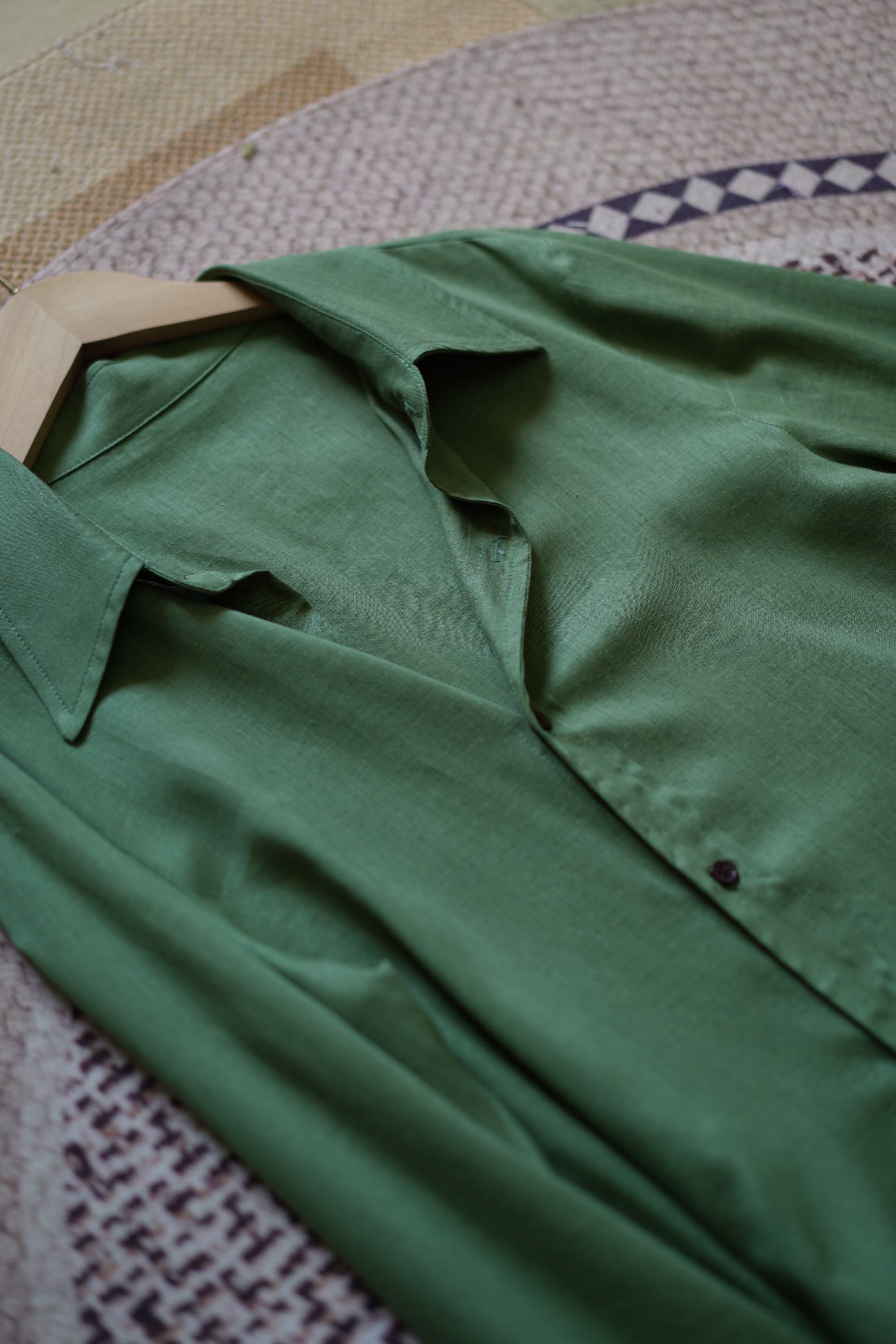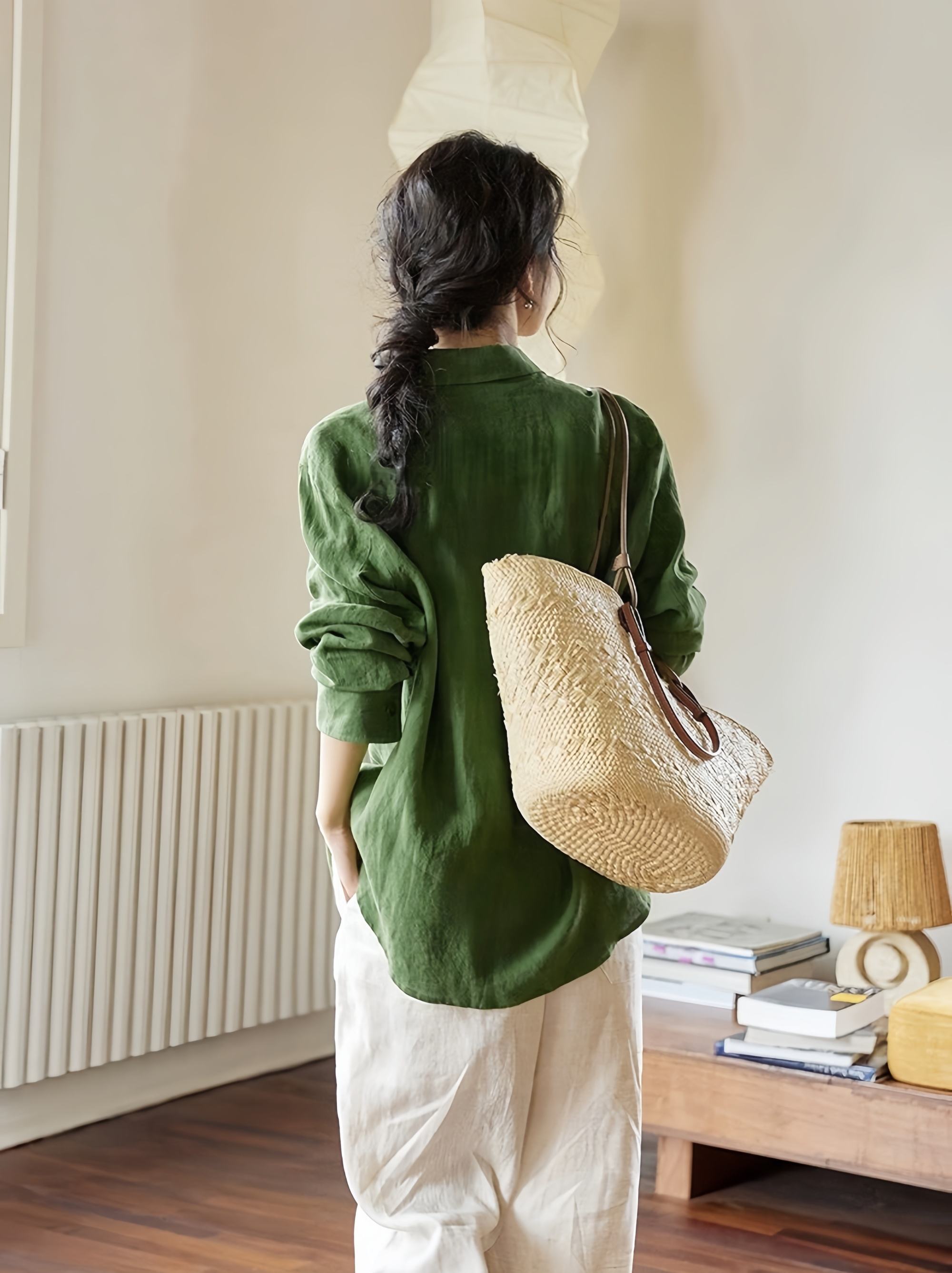 【下单3-7天发货】ORIGNAL&CO松绿色苎麻长袖衬衫,面料轻薄透气,夏天穿也可以保持干爽,宽松版型 不限制任何身材,遮肉显瘦!