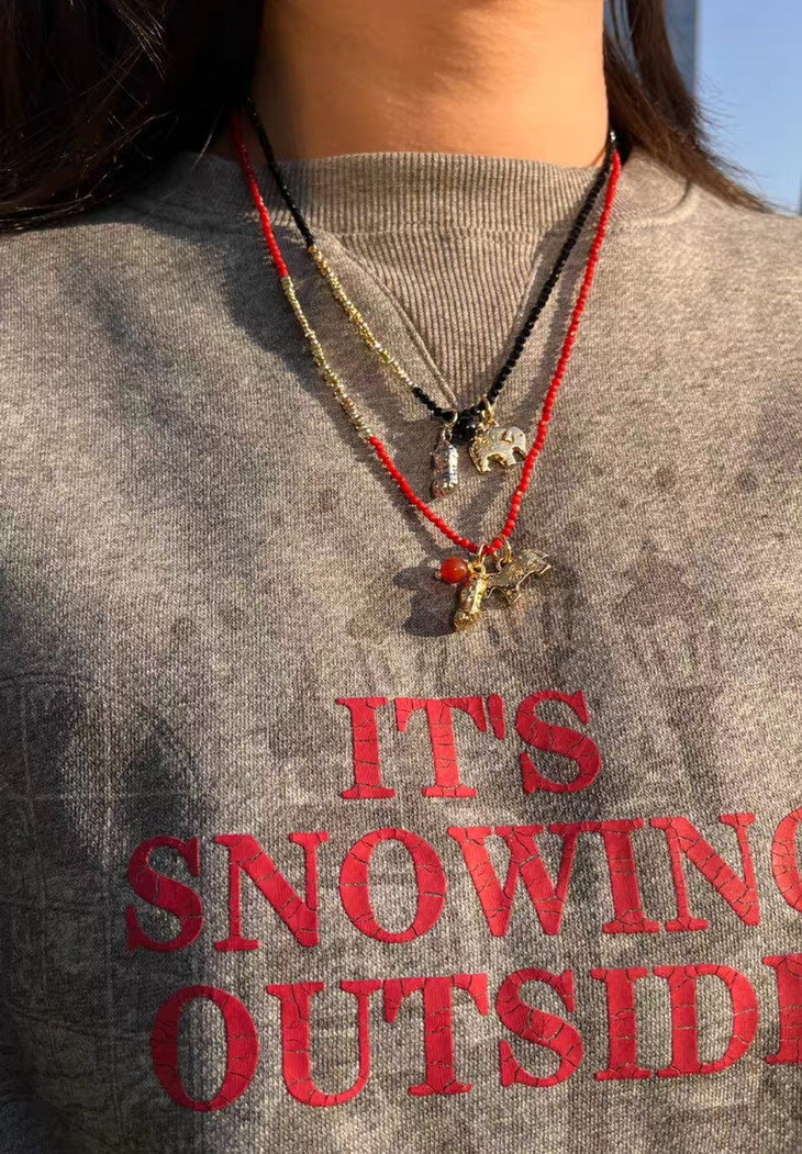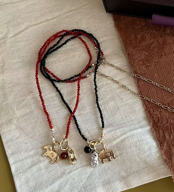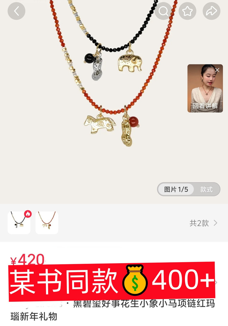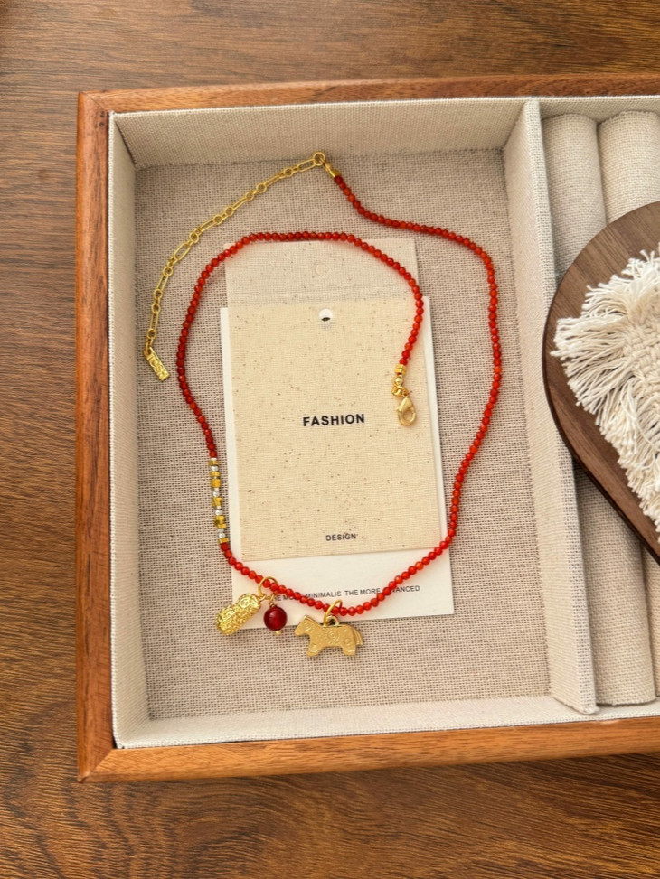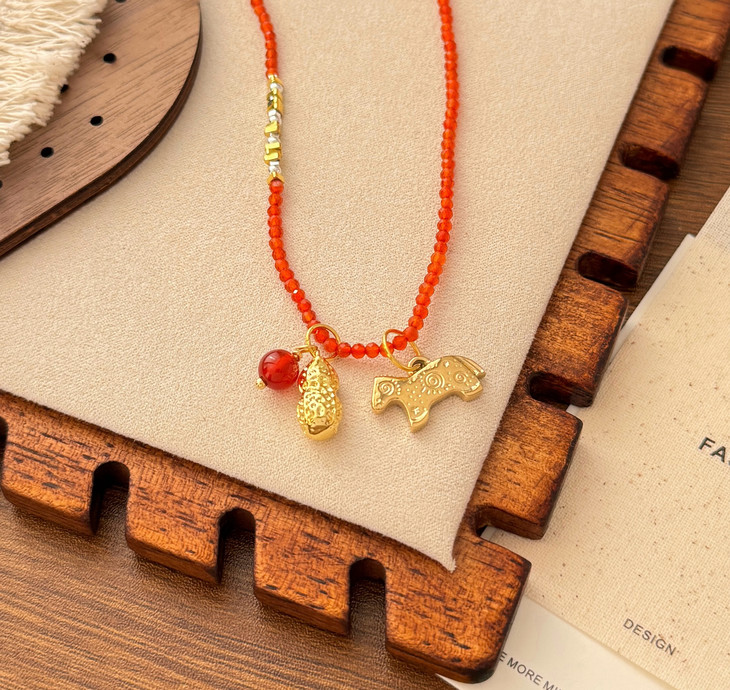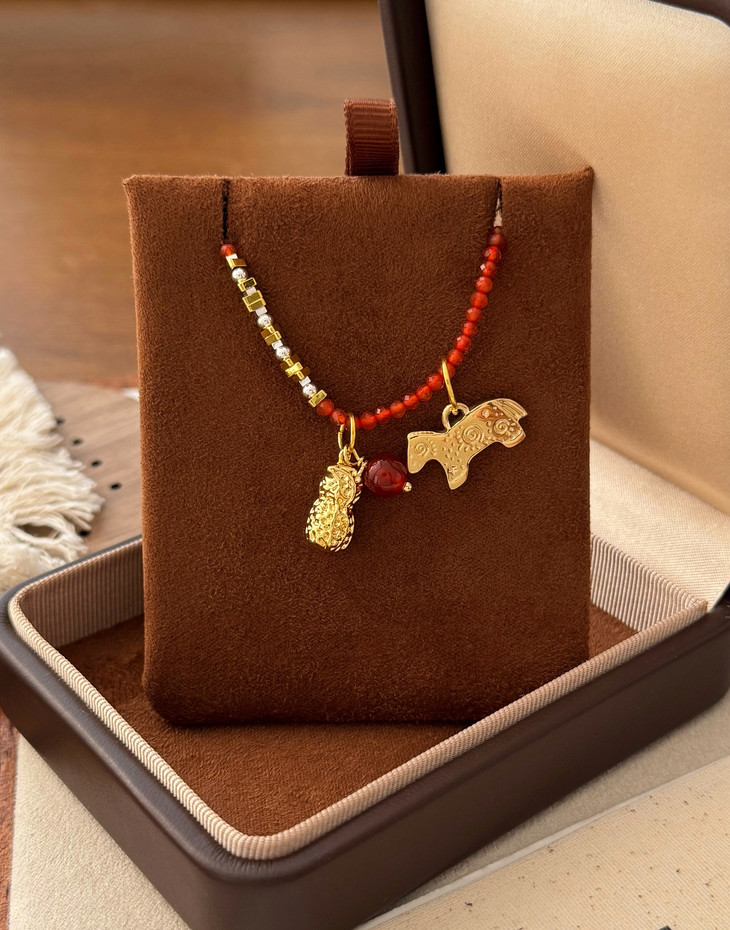本命年、新年图吉利的入这条准没错! 搭配传统吉祥寓意 戴在脖子上既是装饰,更是新年的美好期许 红玛瑙衬得肤色超白,小马+花生的吊坠 寓意“马上生财”,新年财运这不就安排上了~