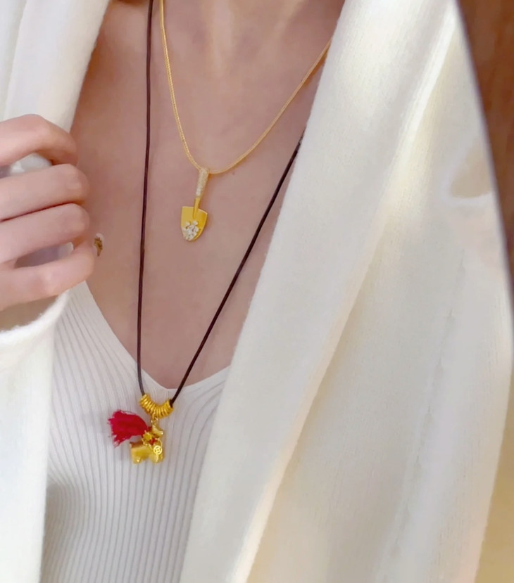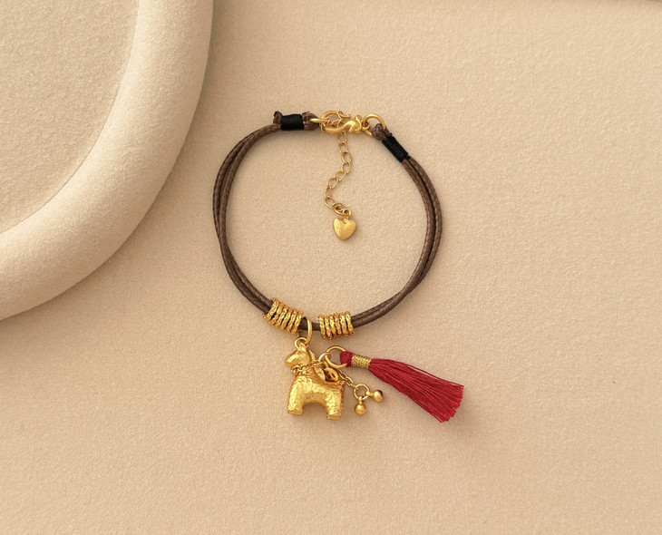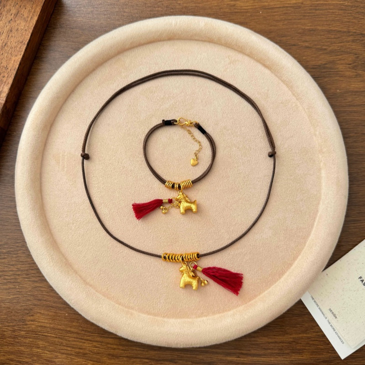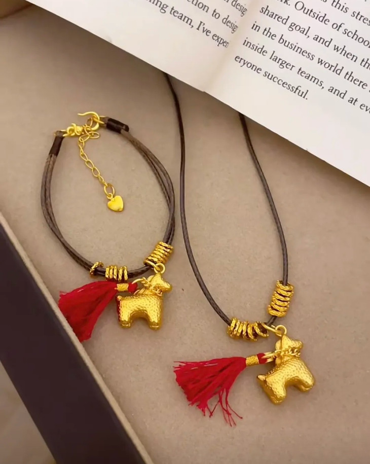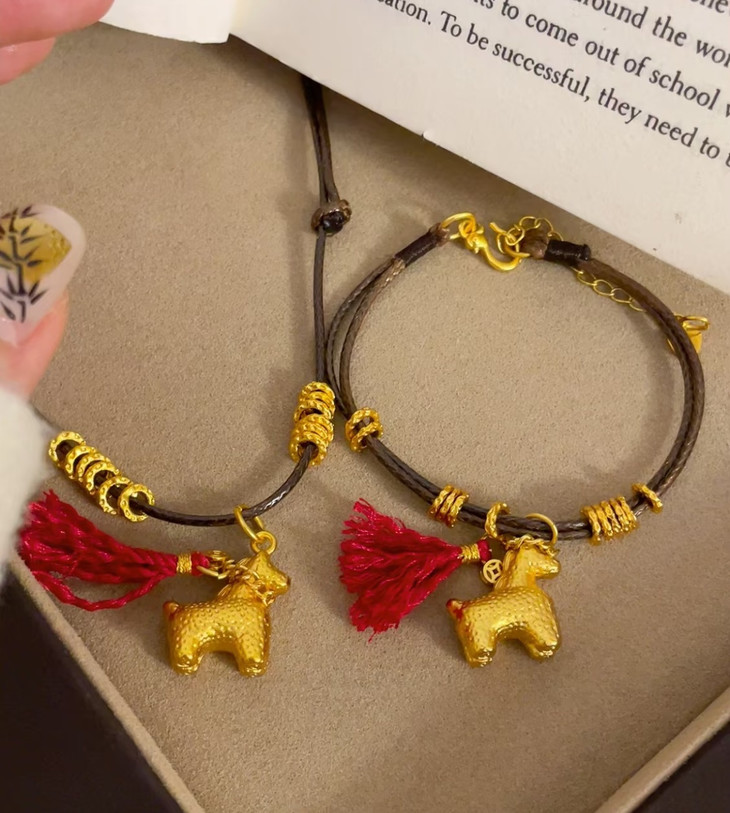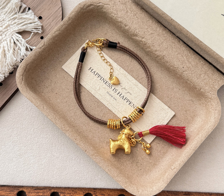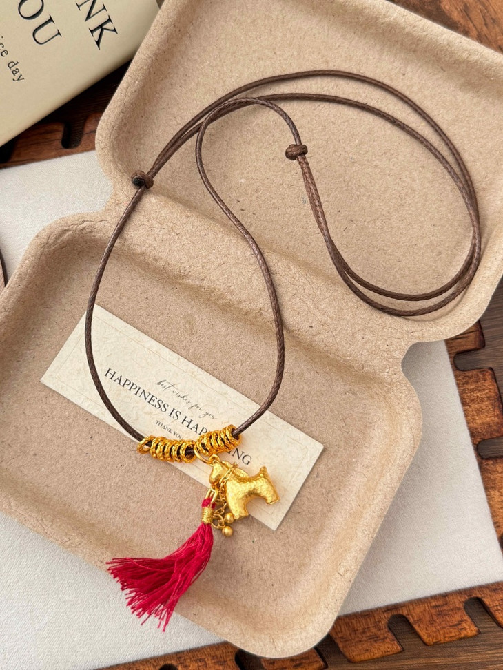 铜合金的小金马吊坠质感超赞 亮闪闪的金色搭配红流苏 年味直接拉满🧧 腊绳的设计又多了点随性的小精致 日常戴不挑穿搭 不管是搭毛衣还是新年战袍都超点睛!