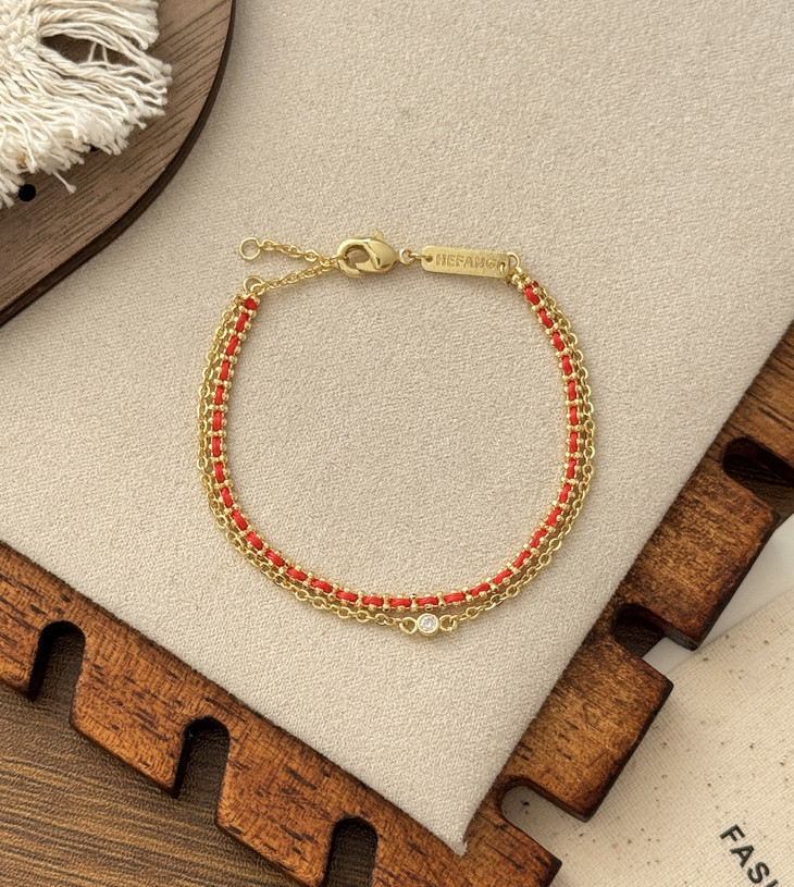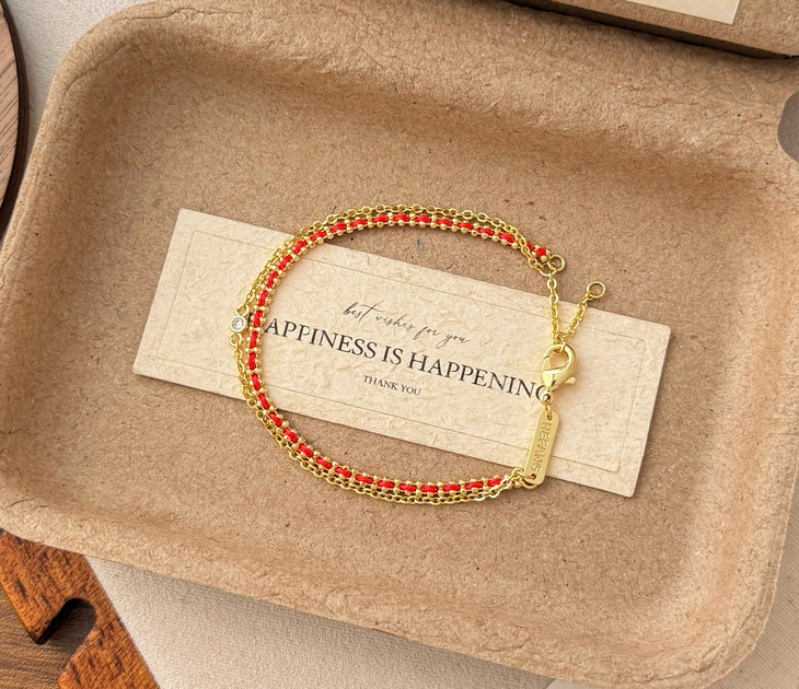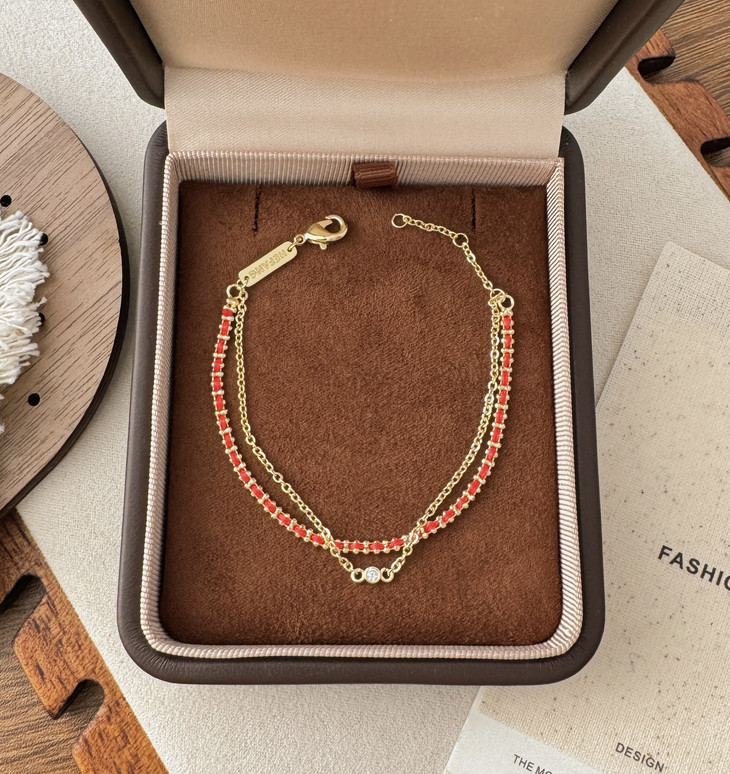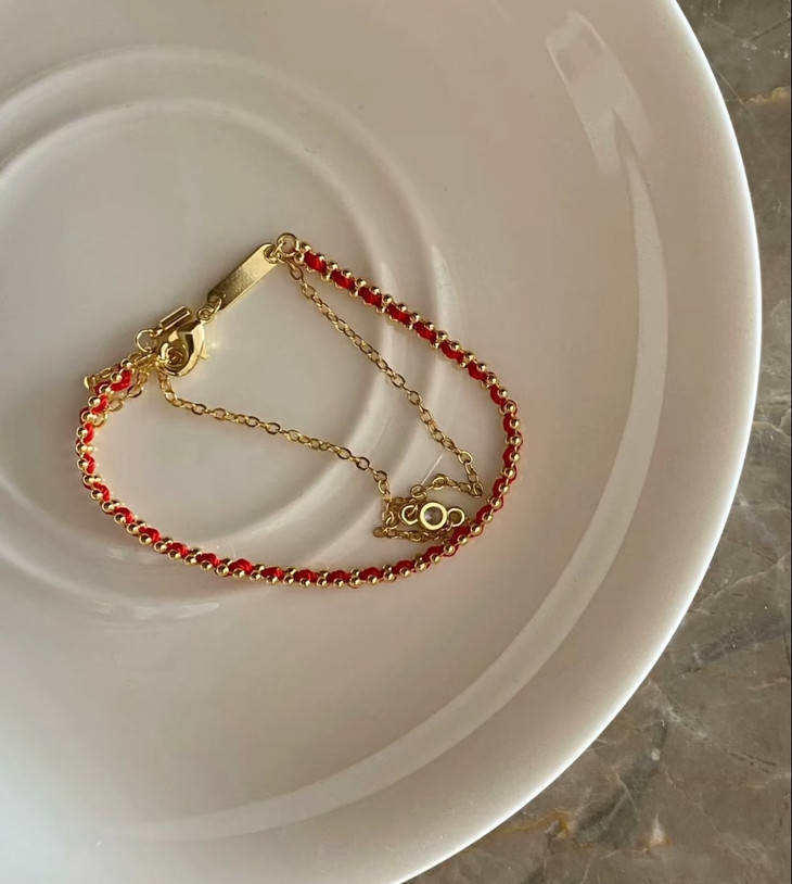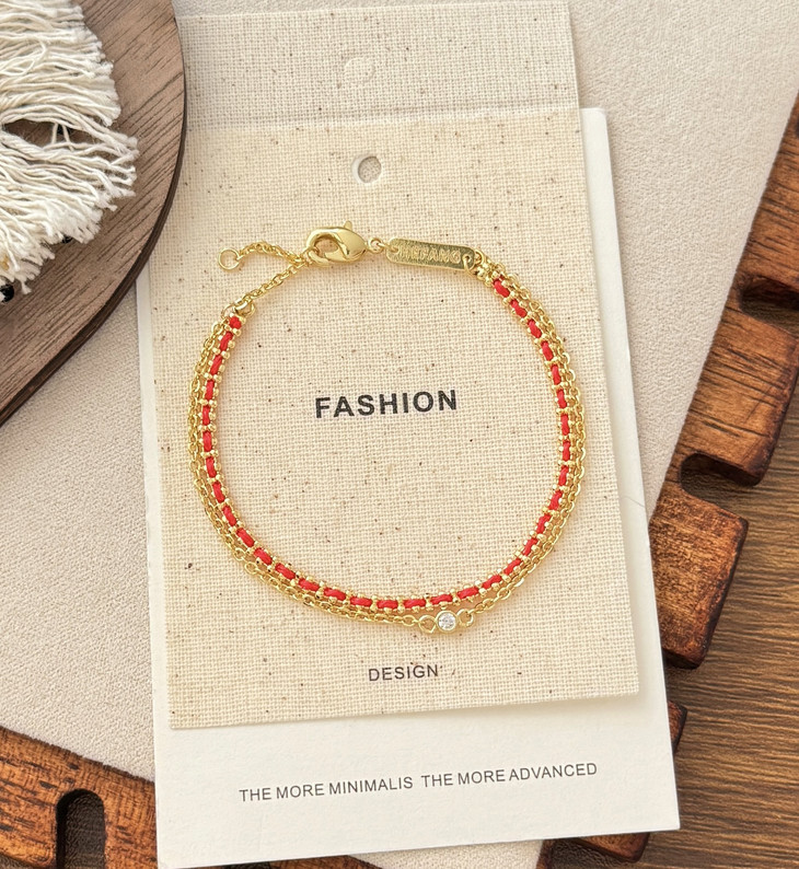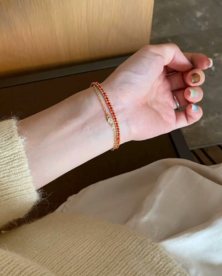 自带美好寓意的红绳手链 双层链设计视觉层次感拉满 简约百搭不失精致细节 矜贵材质的组合重工感满满