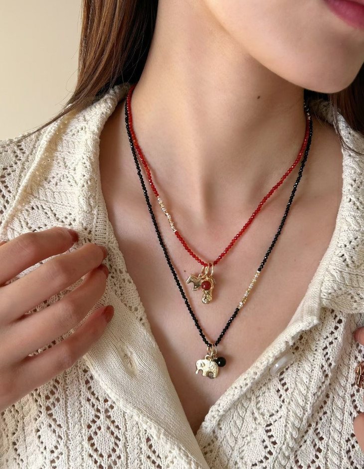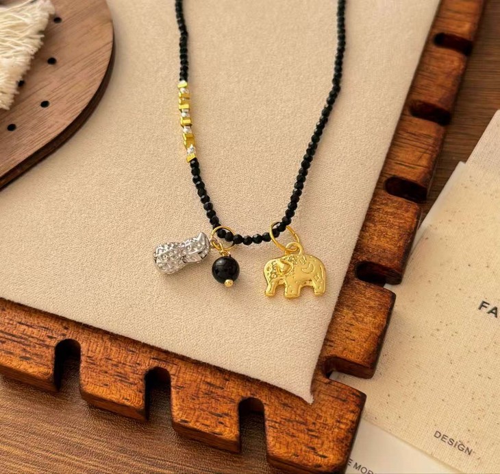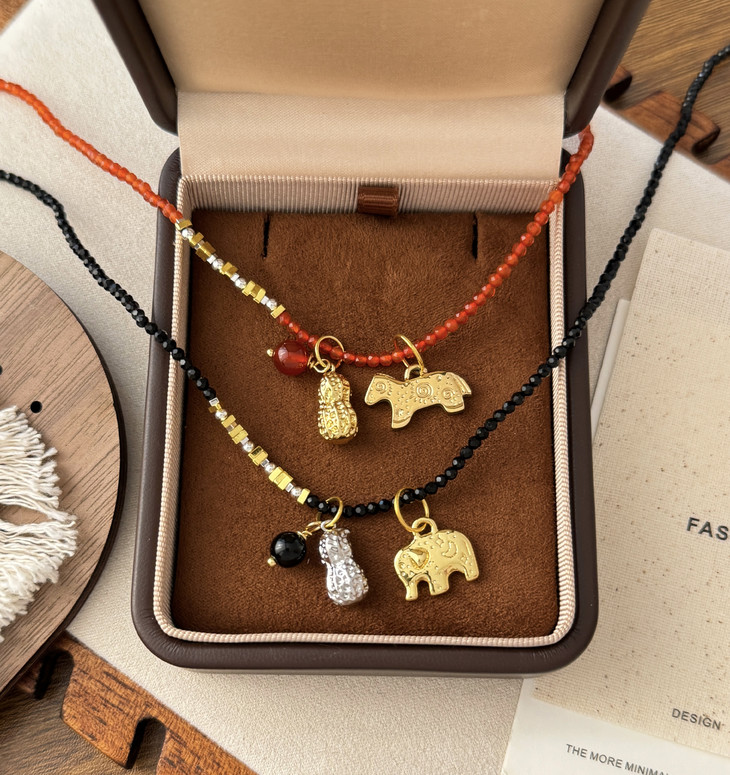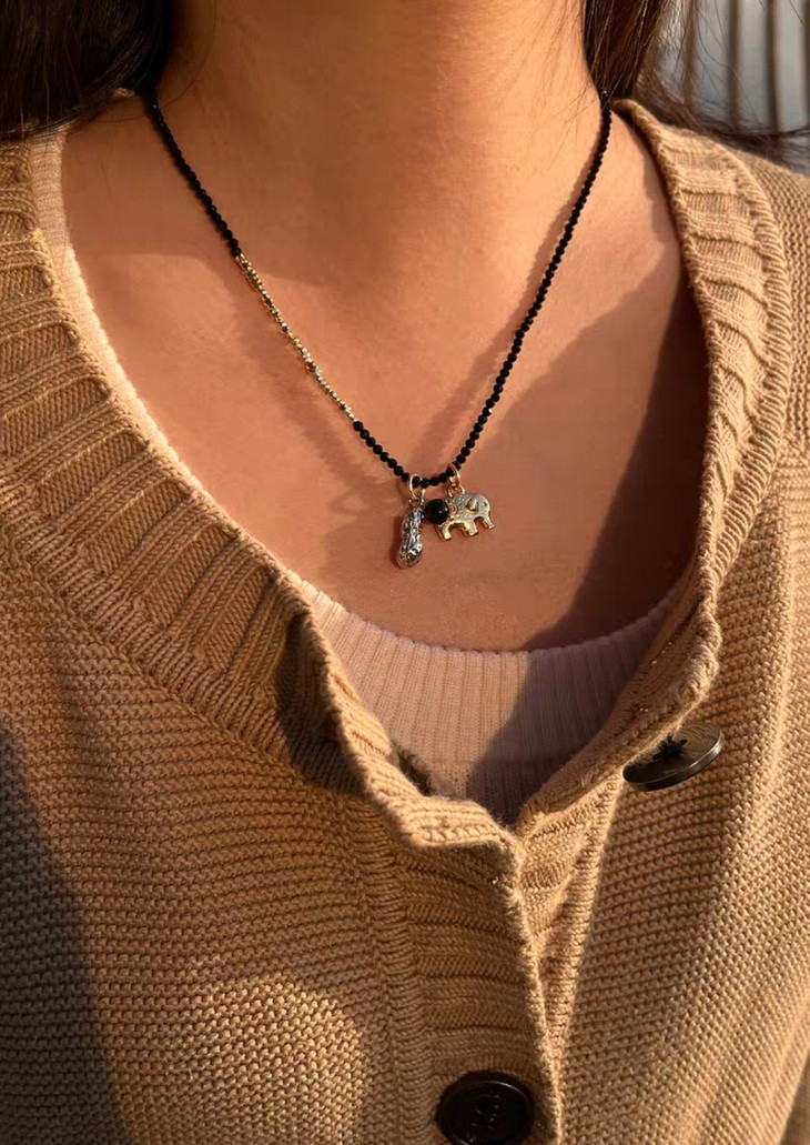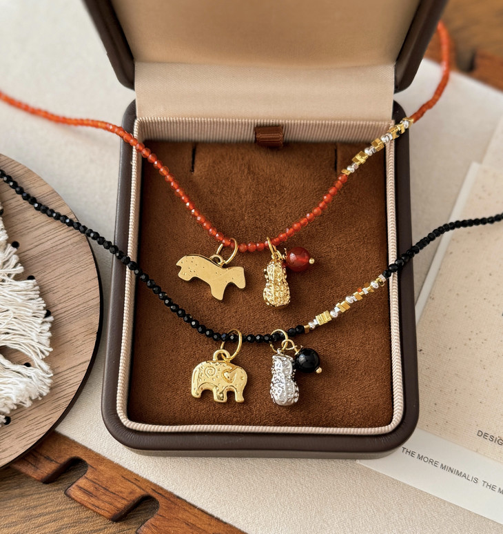 黑晶石花生小象款则是低调又精致 黑晶石自带清冷感 小象配花生是“万象生财”的好彩头 日常搭毛衣、衬衫都超百搭