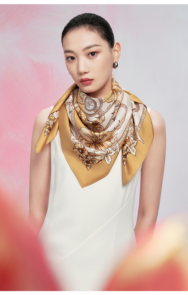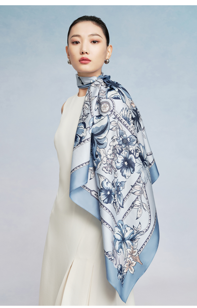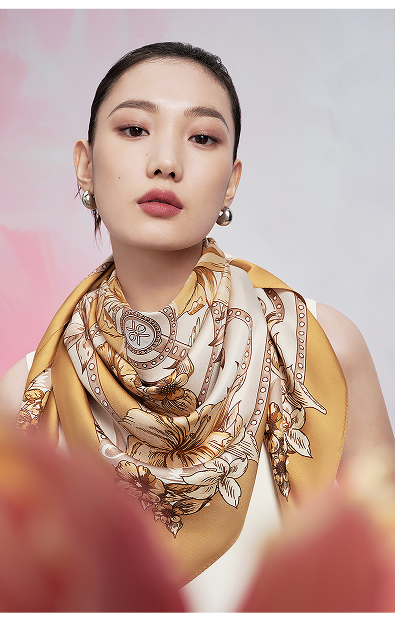 万事利“倾城时代”88厘米双面印花真丝大方巾