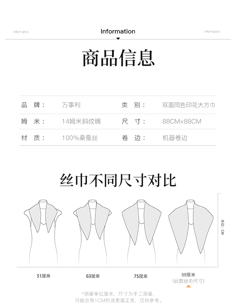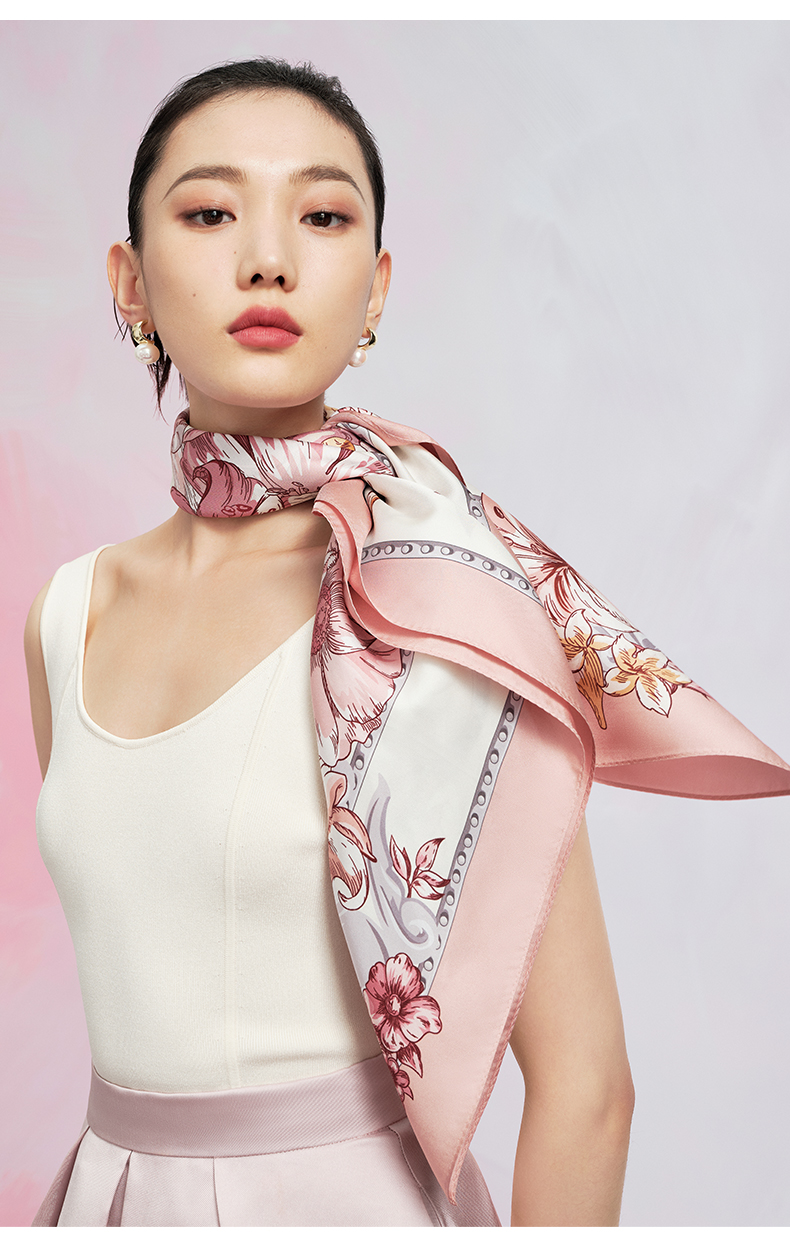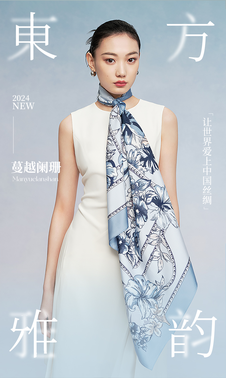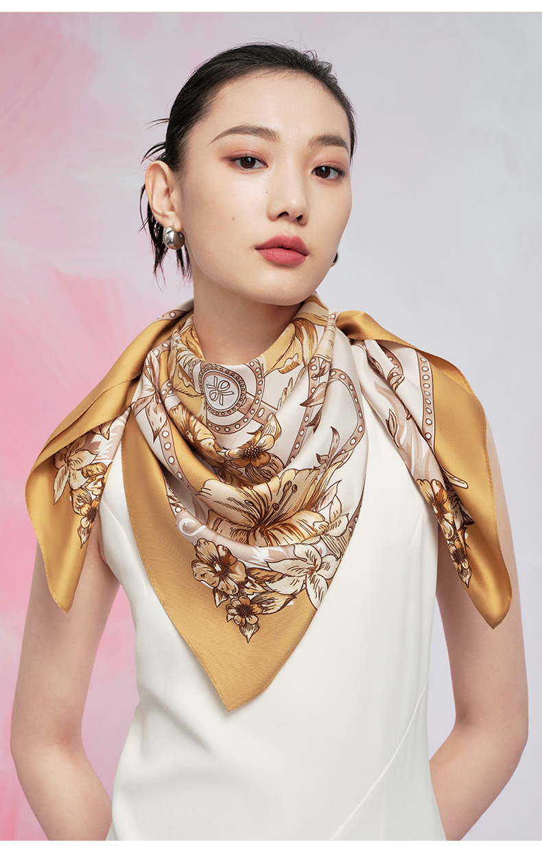 万事利“倾城时代”88厘米双面印花真丝大方巾