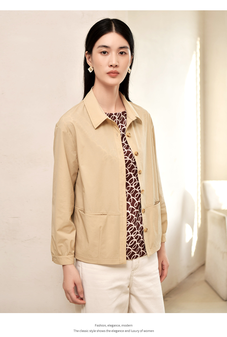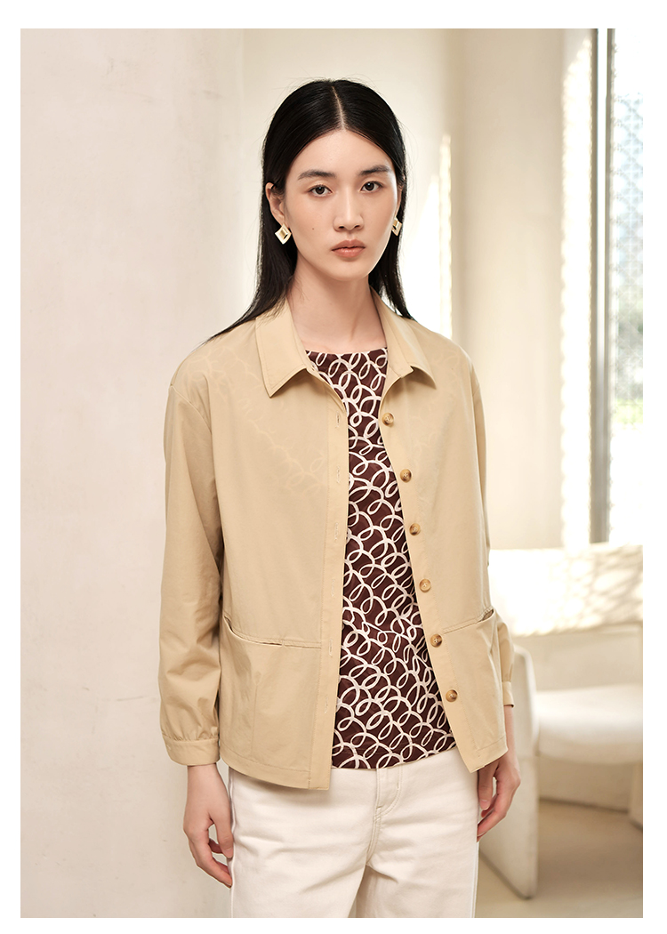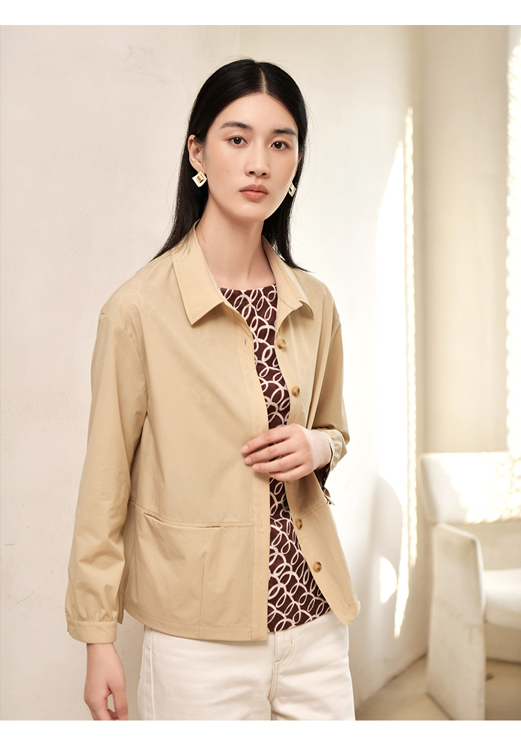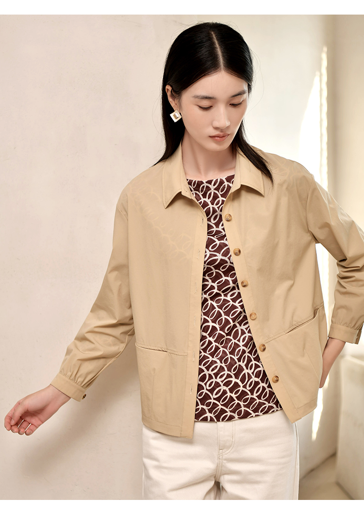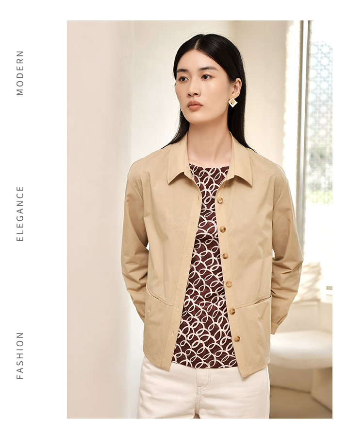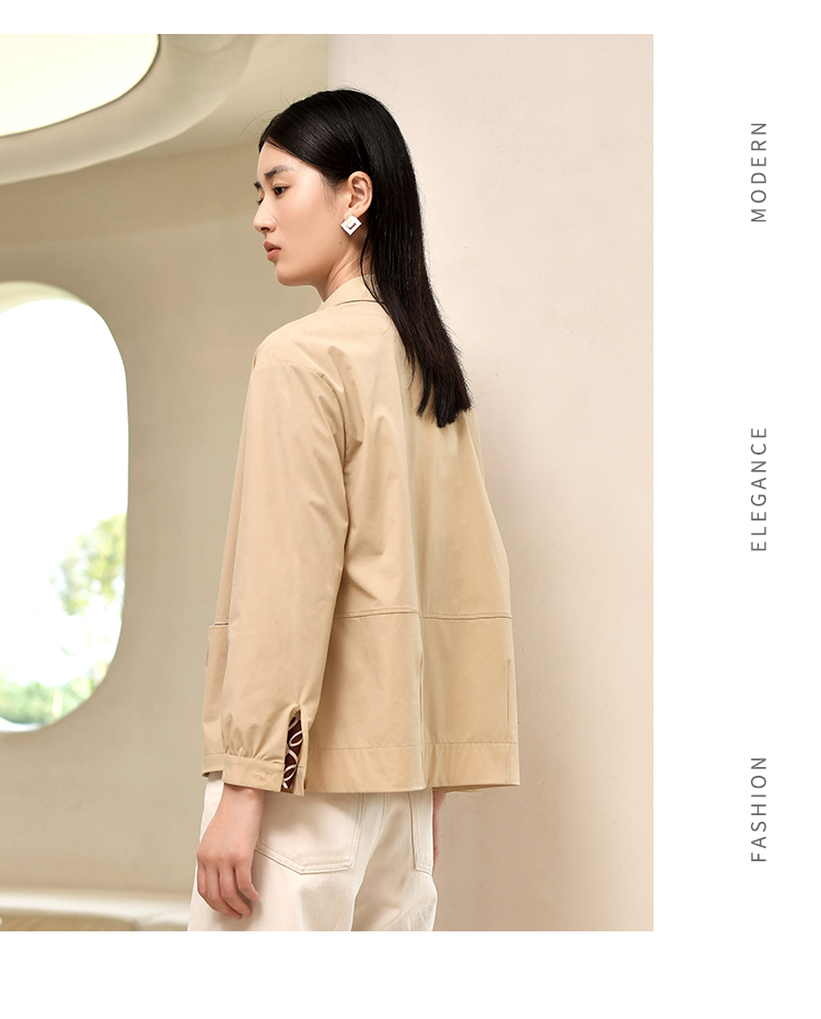 佐尔美秋季新款 奶茶色调衬衣式版型短风衣女E23FD04