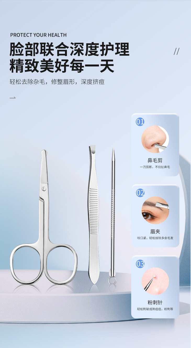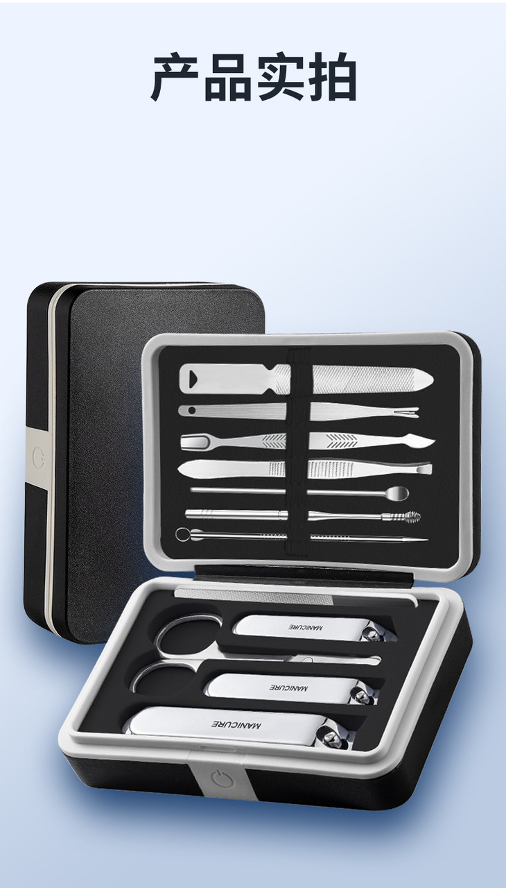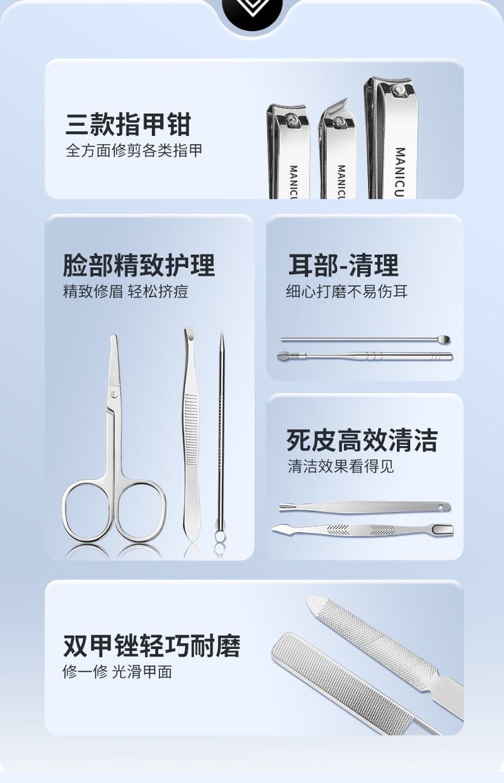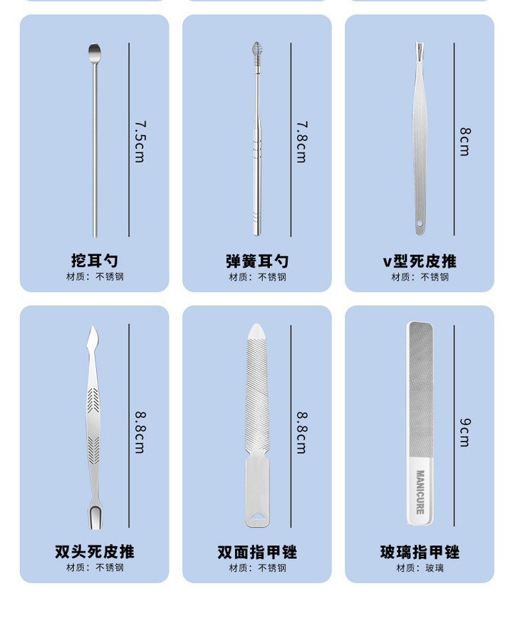 【不锈钢指甲刀套装】指甲剪全套带镜子美甲修甲指甲钳工具