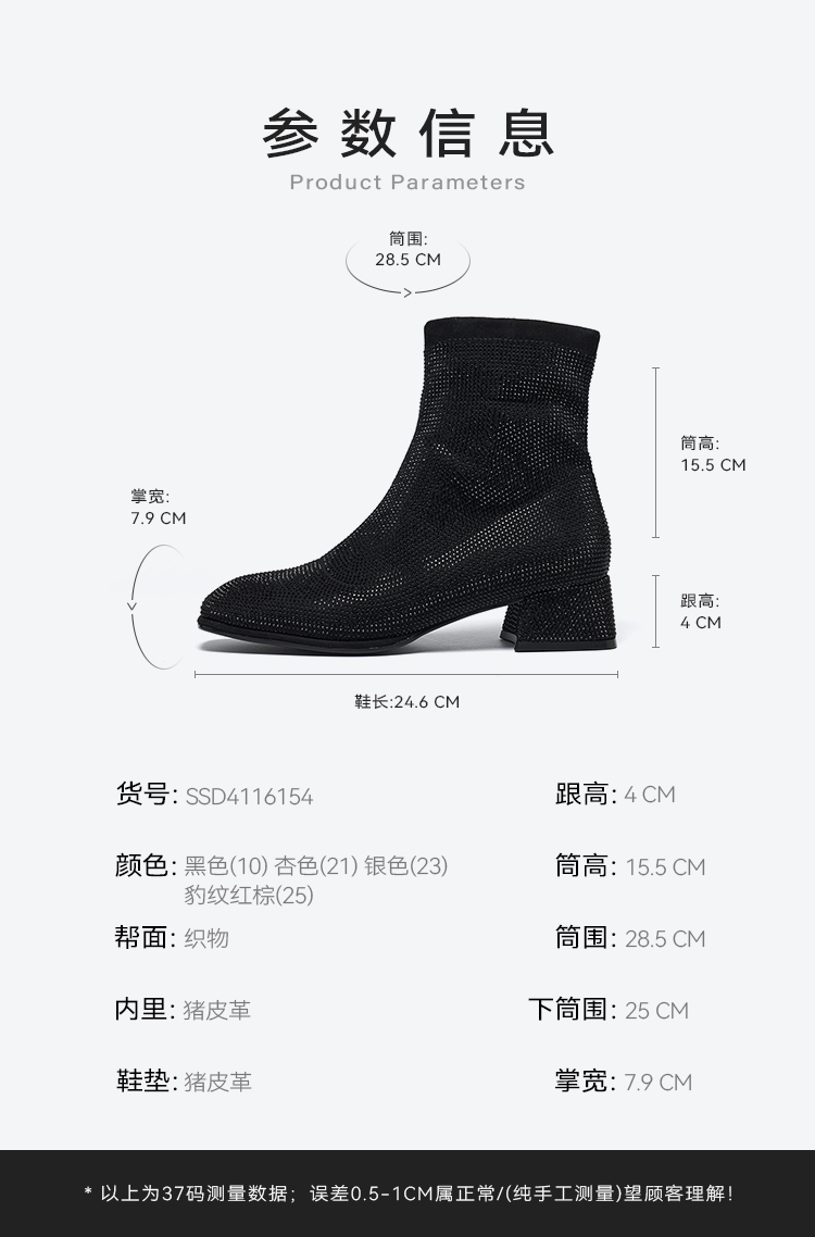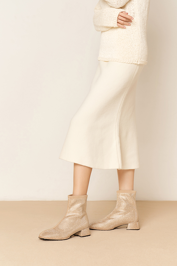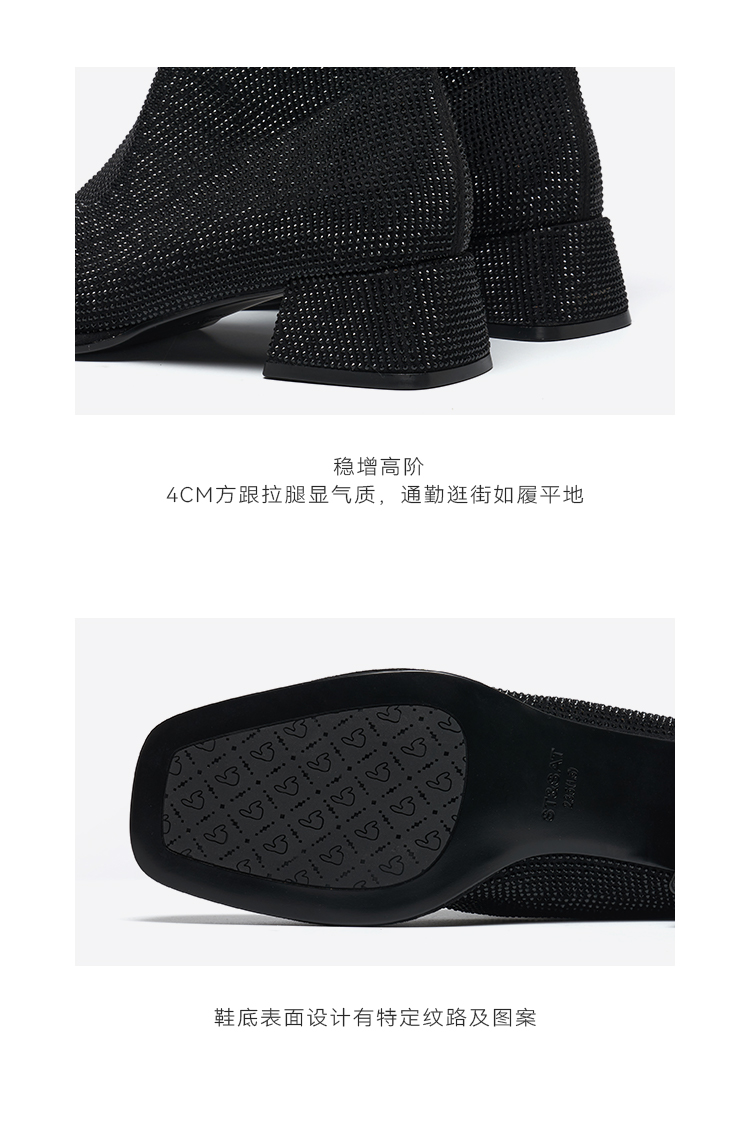 星期六优雅满钻粗跟时装靴SSD4116154
