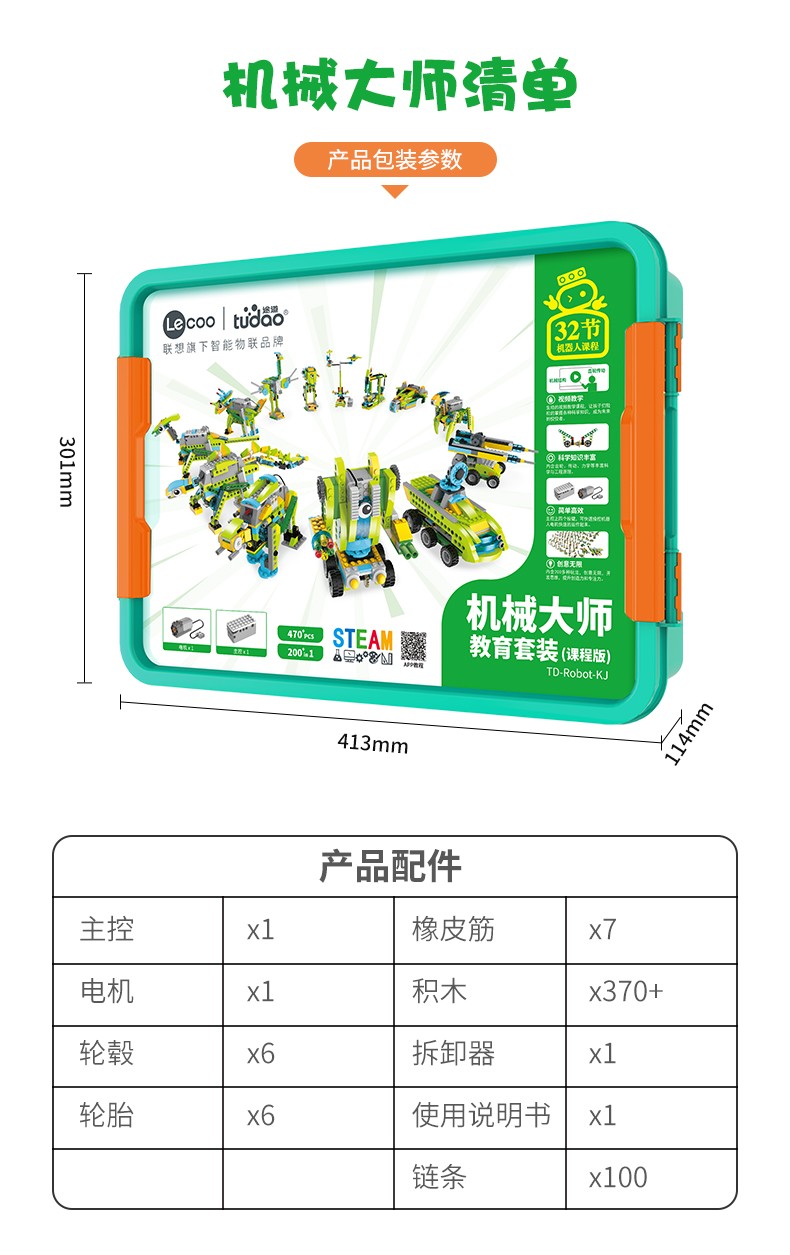 途道(tudao)机械大师教育套装教学拼装电动积木steam玩具儿童科学实验套装 课程版
