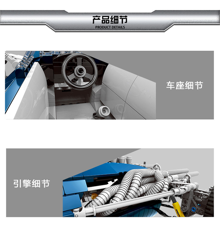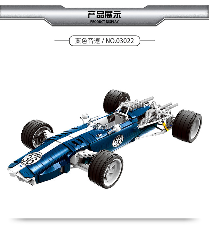 星堡XB03022创意科技跑车蓝色音速赛车拼插积木玩具