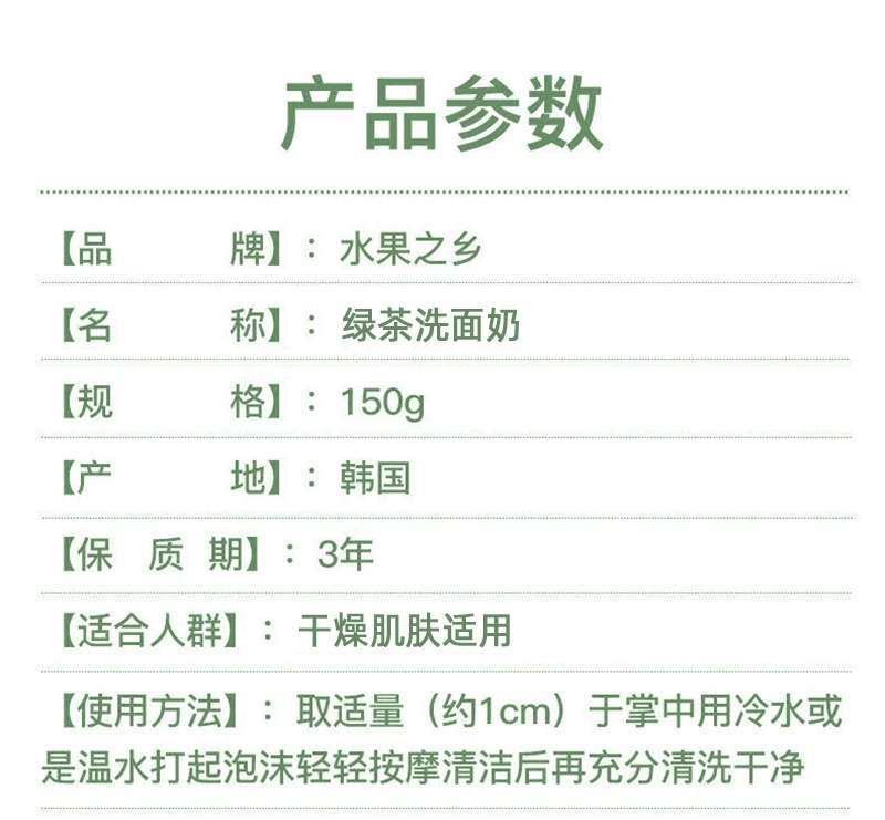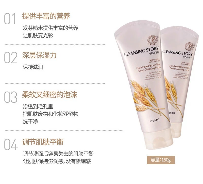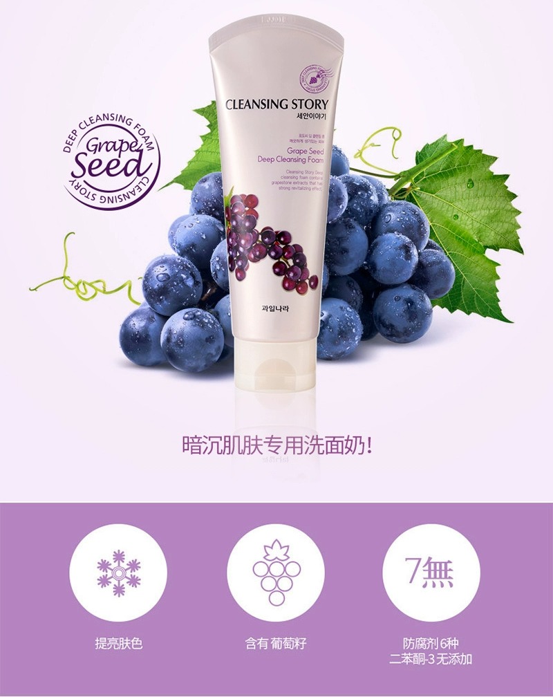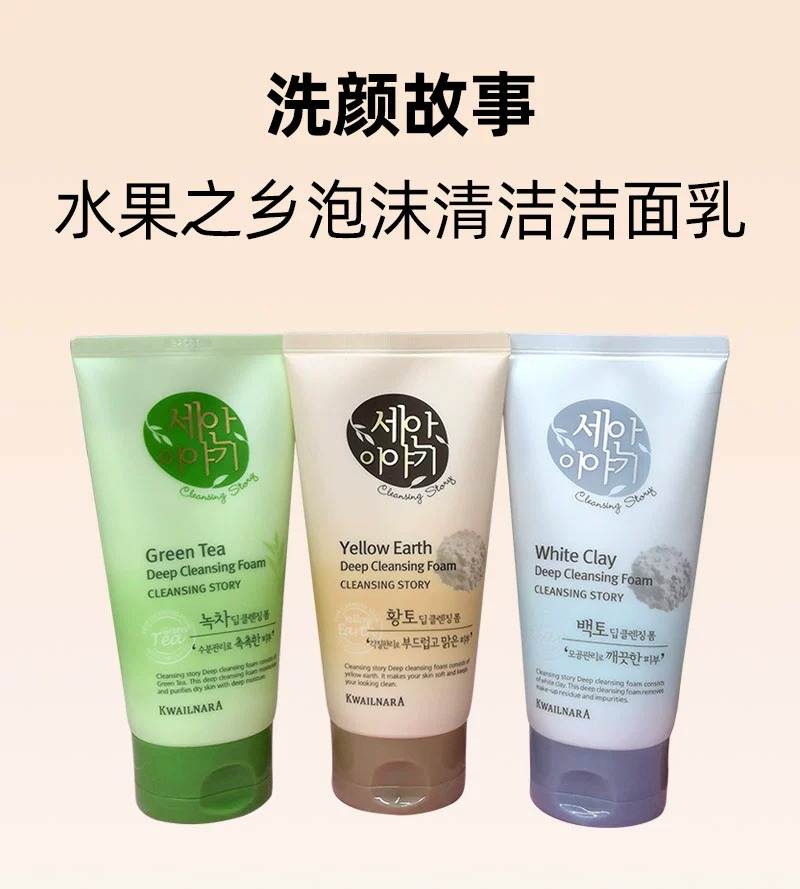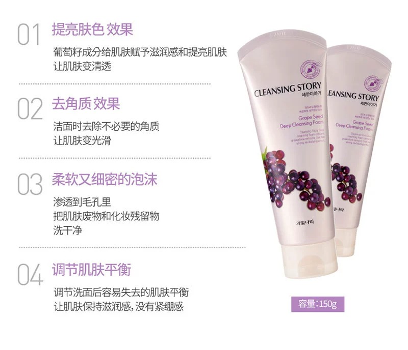 【中欧班列精选2支】韩国水果之乡洗颜故事洗面奶 原装进口洗颜泡沫葡萄籽洗面乳糙米绿茶洁面乳 150g/支WHBX