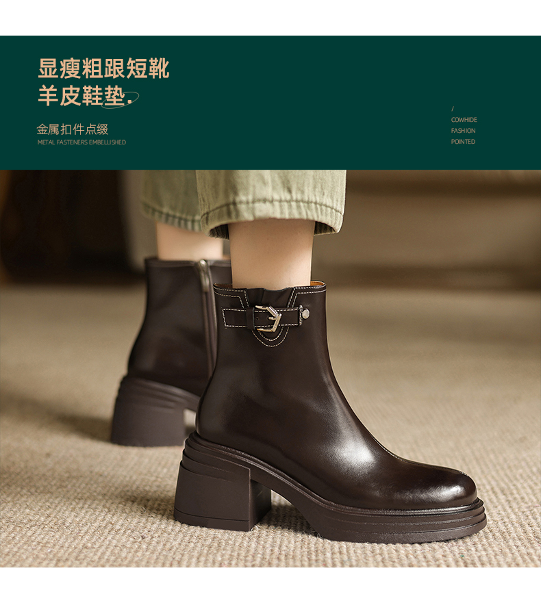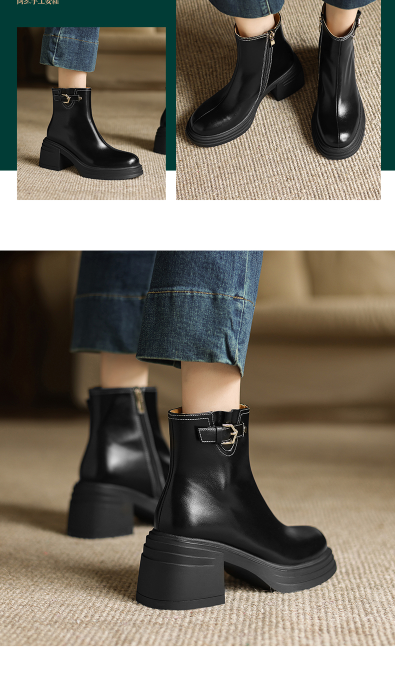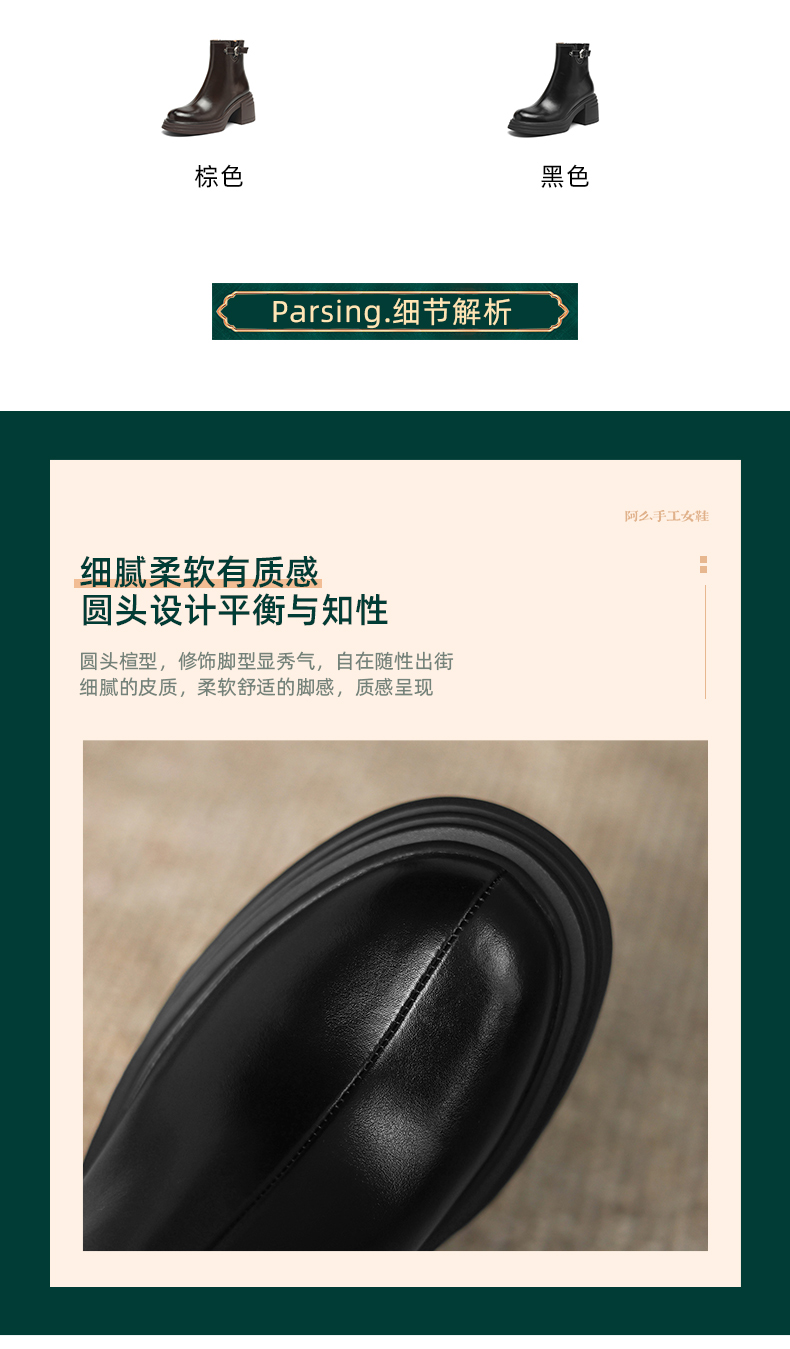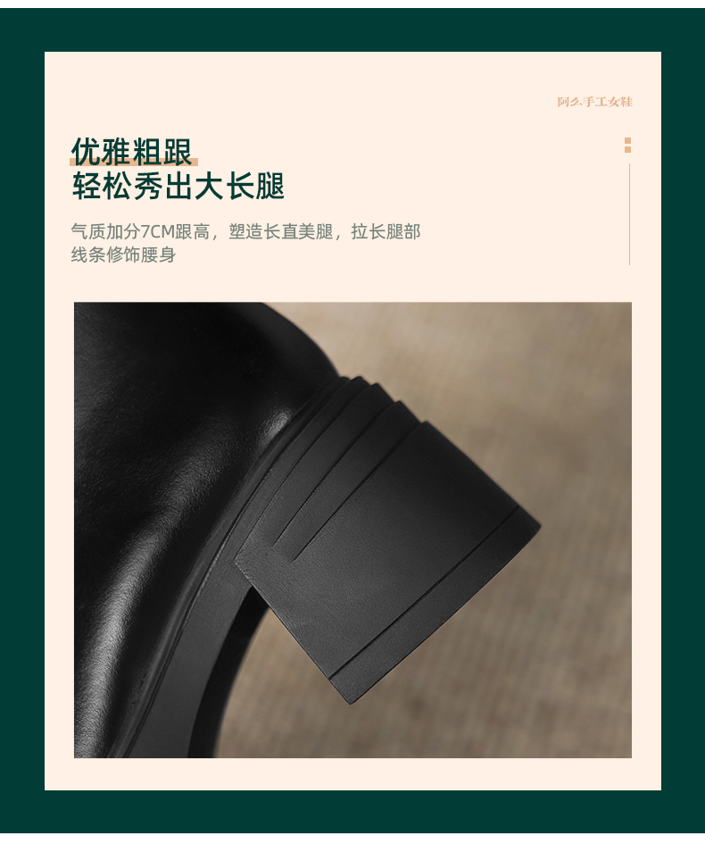阿么手工女鞋小个子增高厚底单靴女2025新款复古秋冬百搭短靴7CM