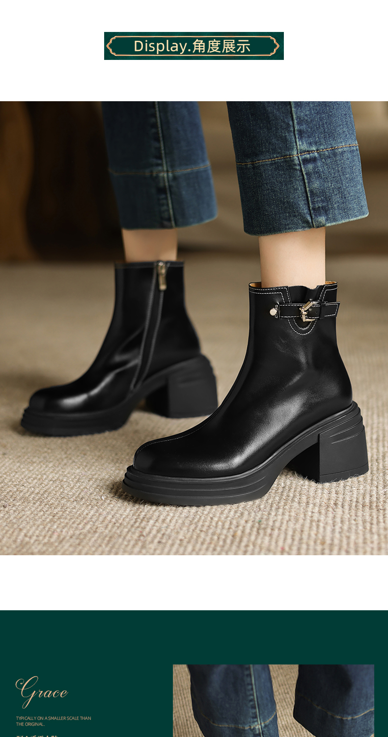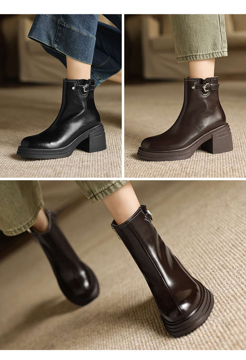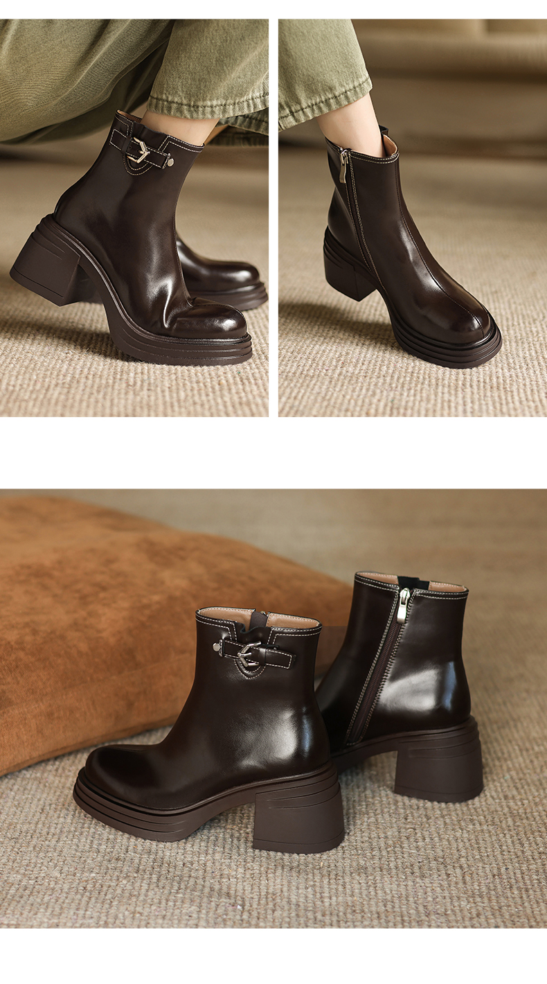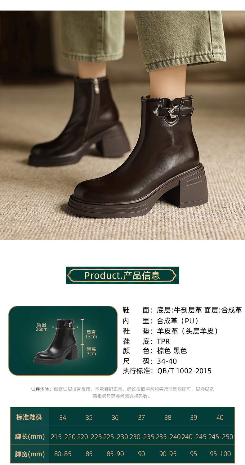阿么手工女鞋小个子增高厚底单靴女2025新款复古秋冬百搭短靴7CM