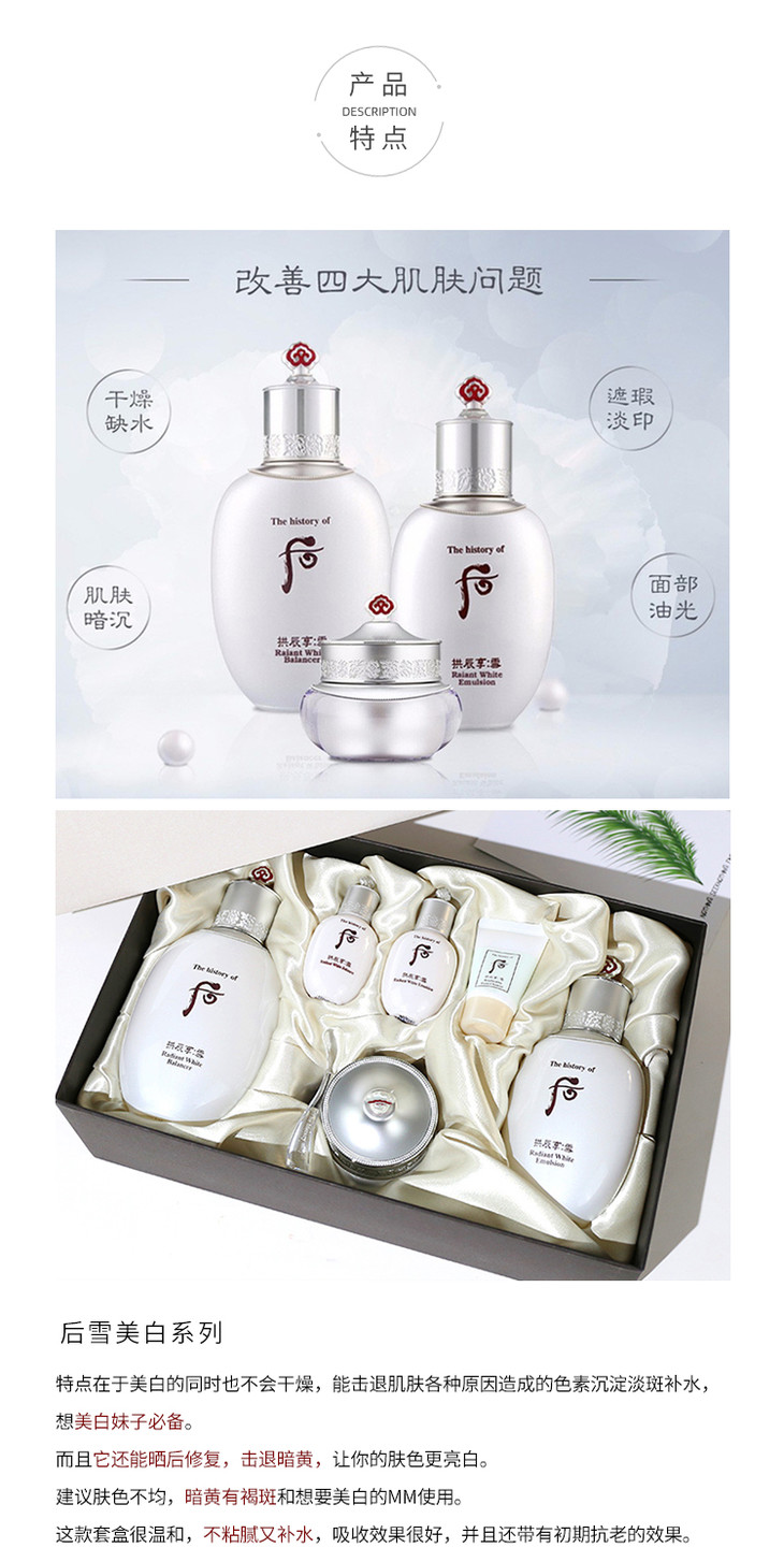 后 拱辰享雪美白淡斑膏水乳液面霜套装护肤化妆品套盒WHOO/whoo