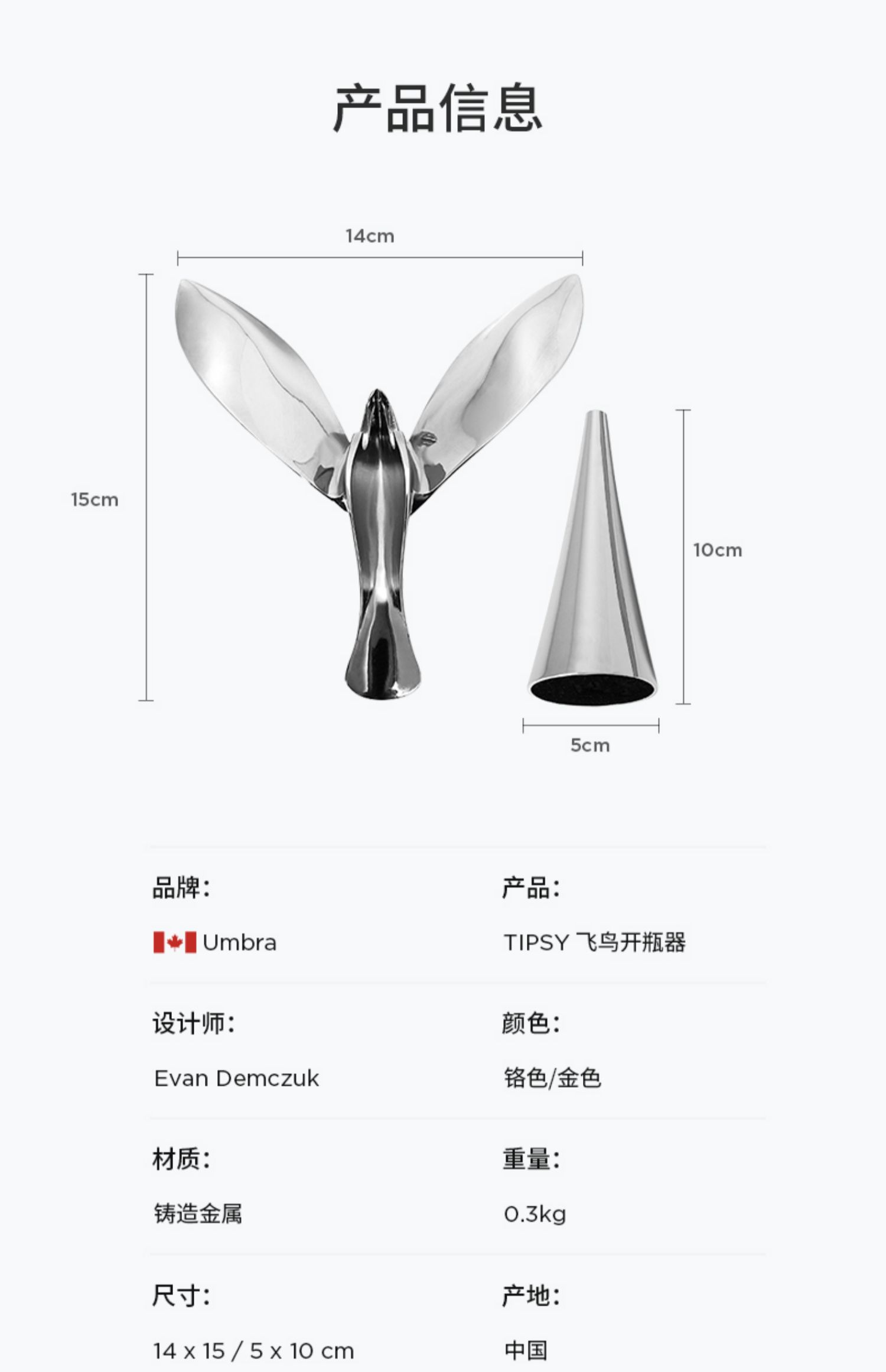 Umbra飞鸟开瓶器 平衡不倒翁 啤酒起瓶器 创意摆件