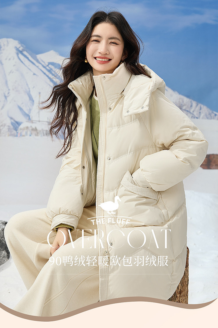 【年终特卖】熙世界连帽高领羽绒服女冬2025新款时尚中长款宽松抗寒保暖厚外套