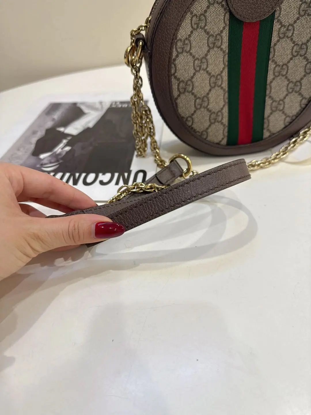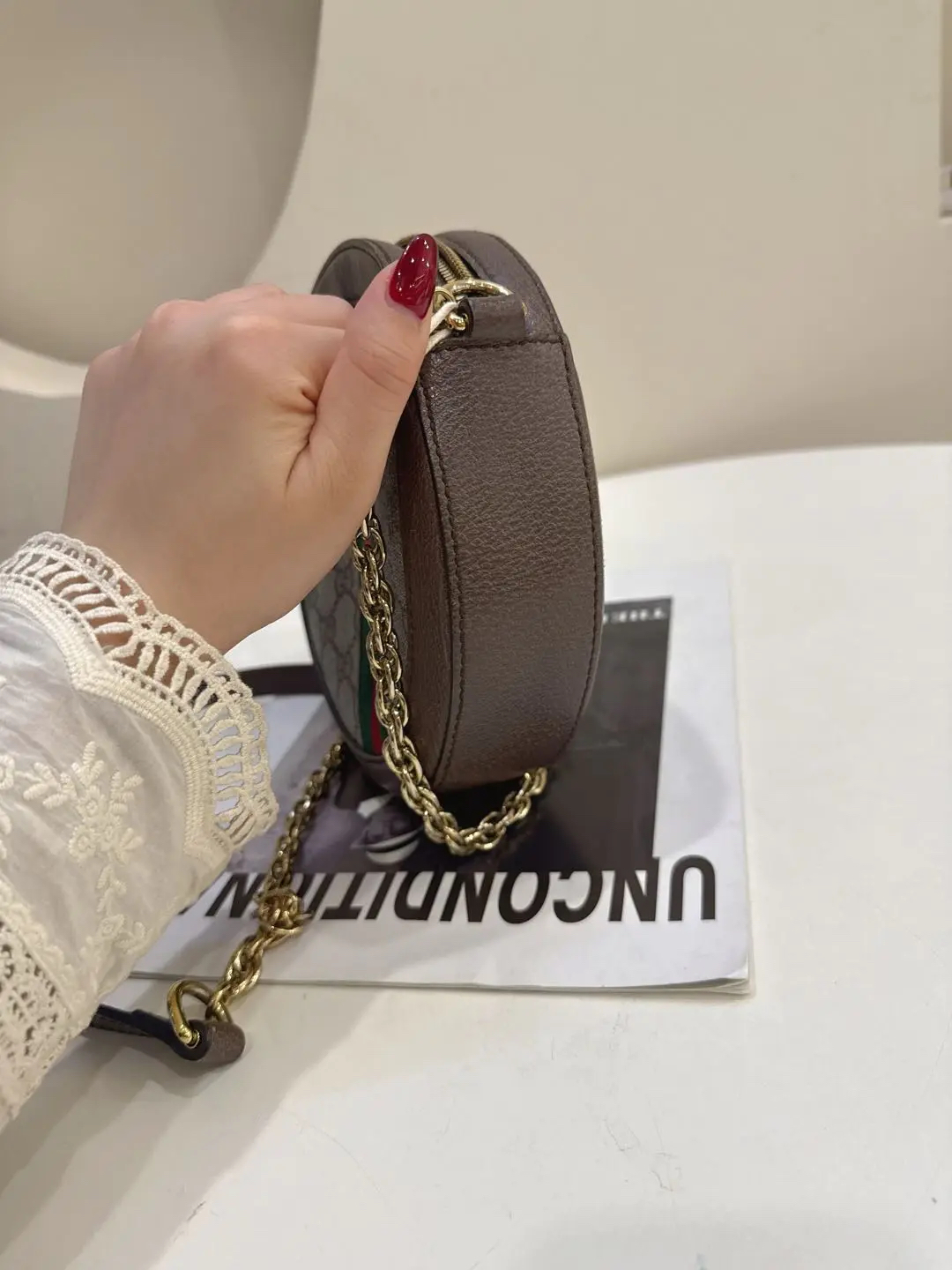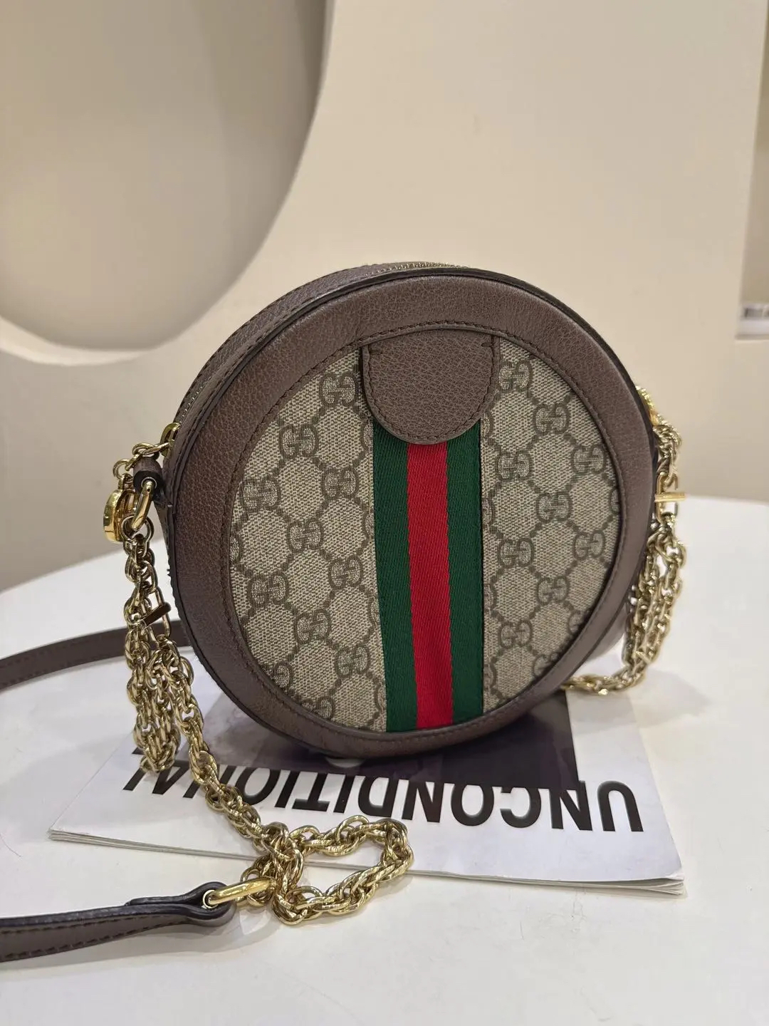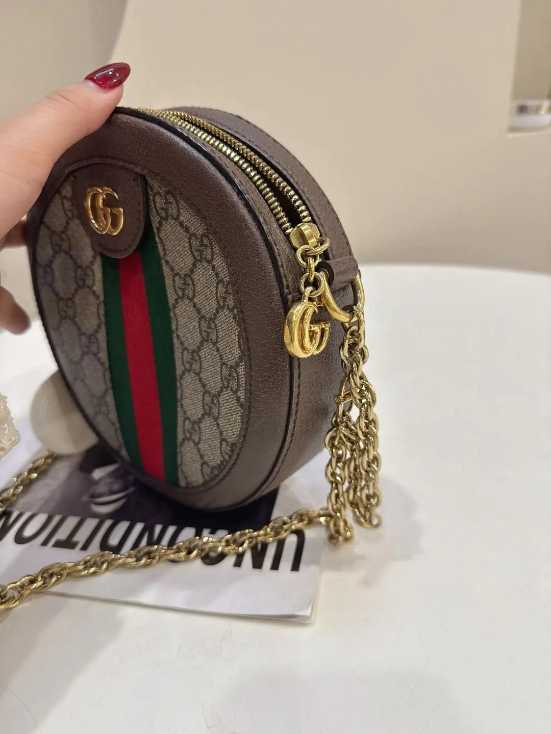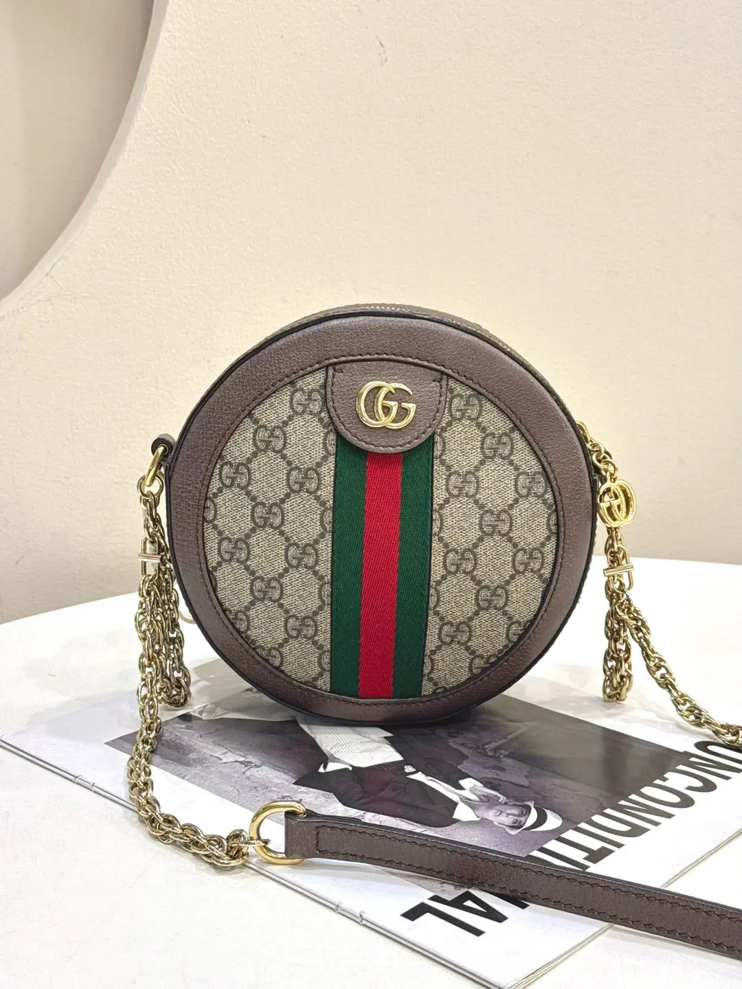 【商品详情】正品二手 Gucci Ophidia 双G 老花 mini 圆饼包😻 97新 19*19。复古精致