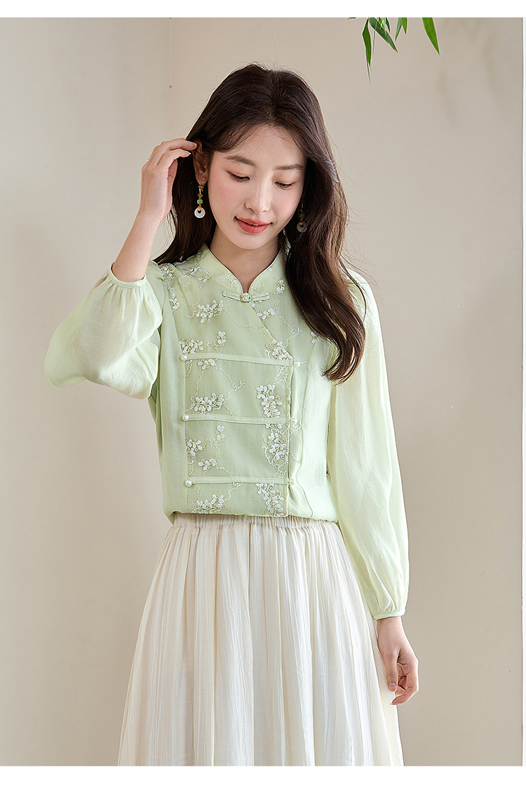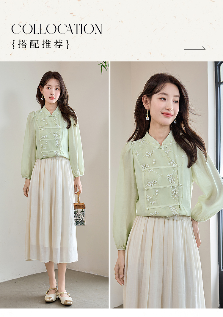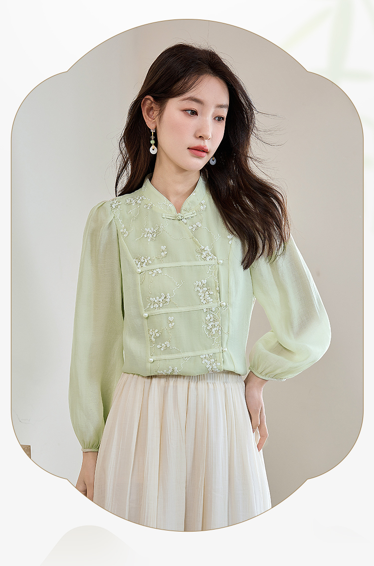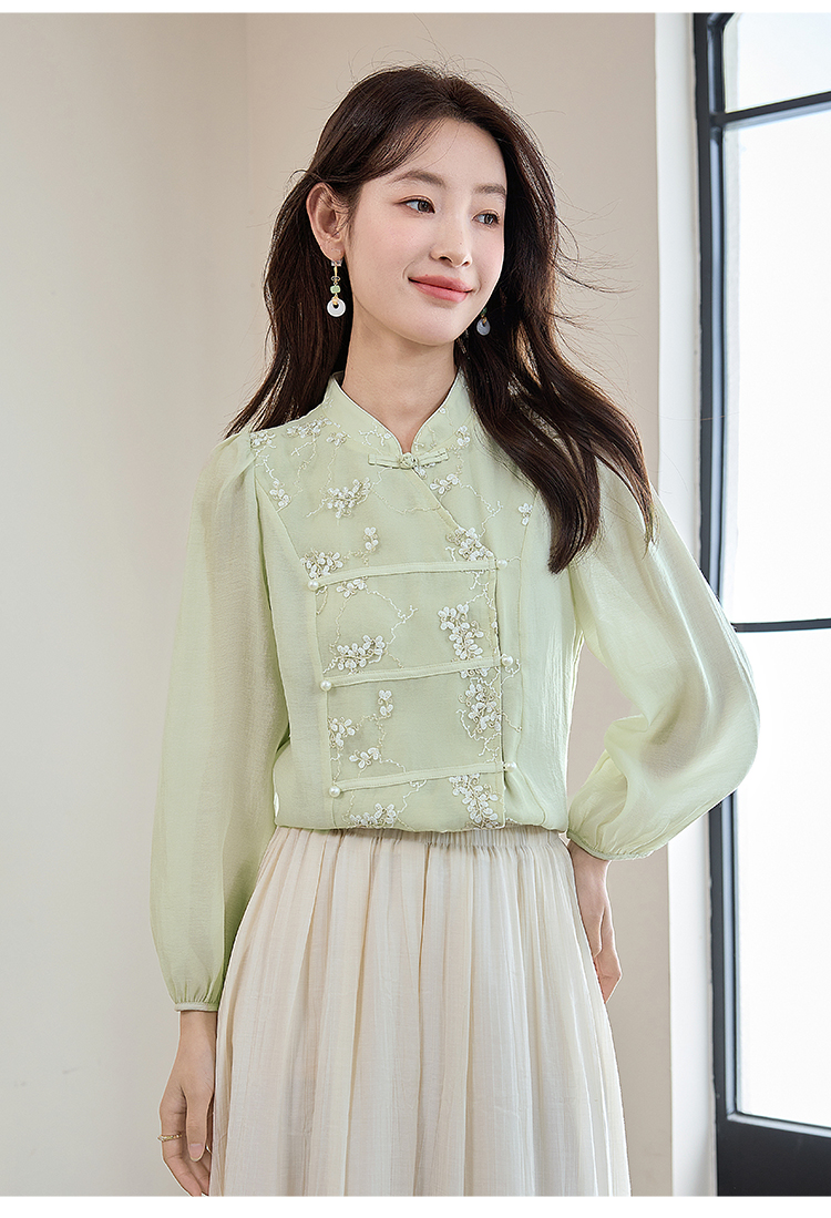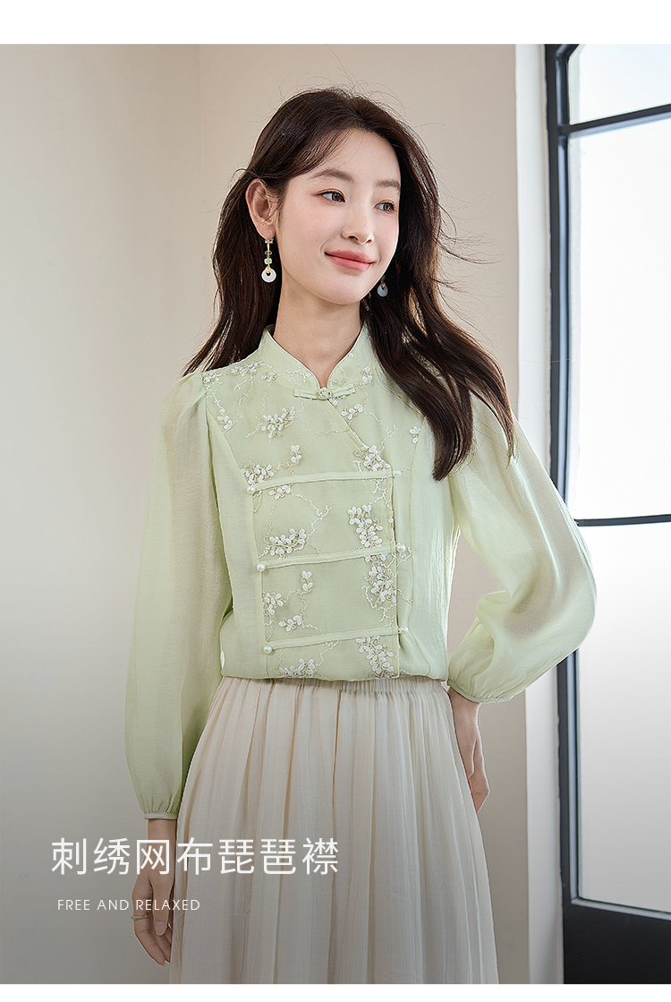 【五折购】熙世界莱赛尔天丝国风衬衫2025秋夏新款重工刺绣新中式衬衣上衣