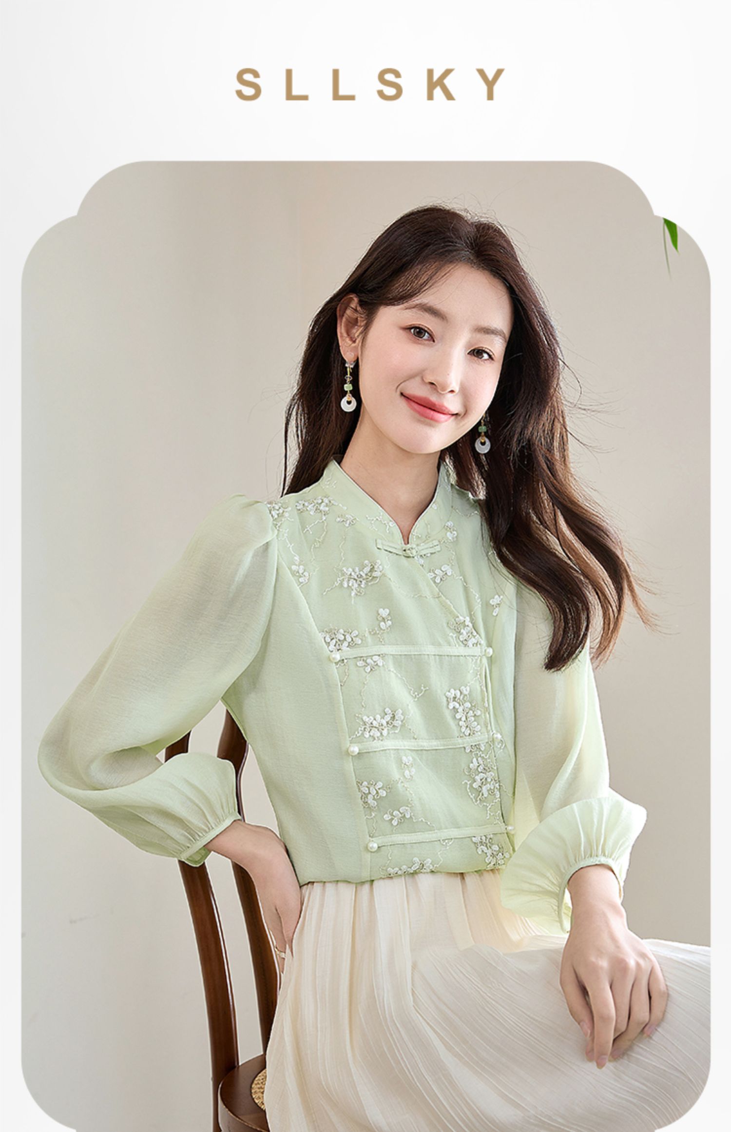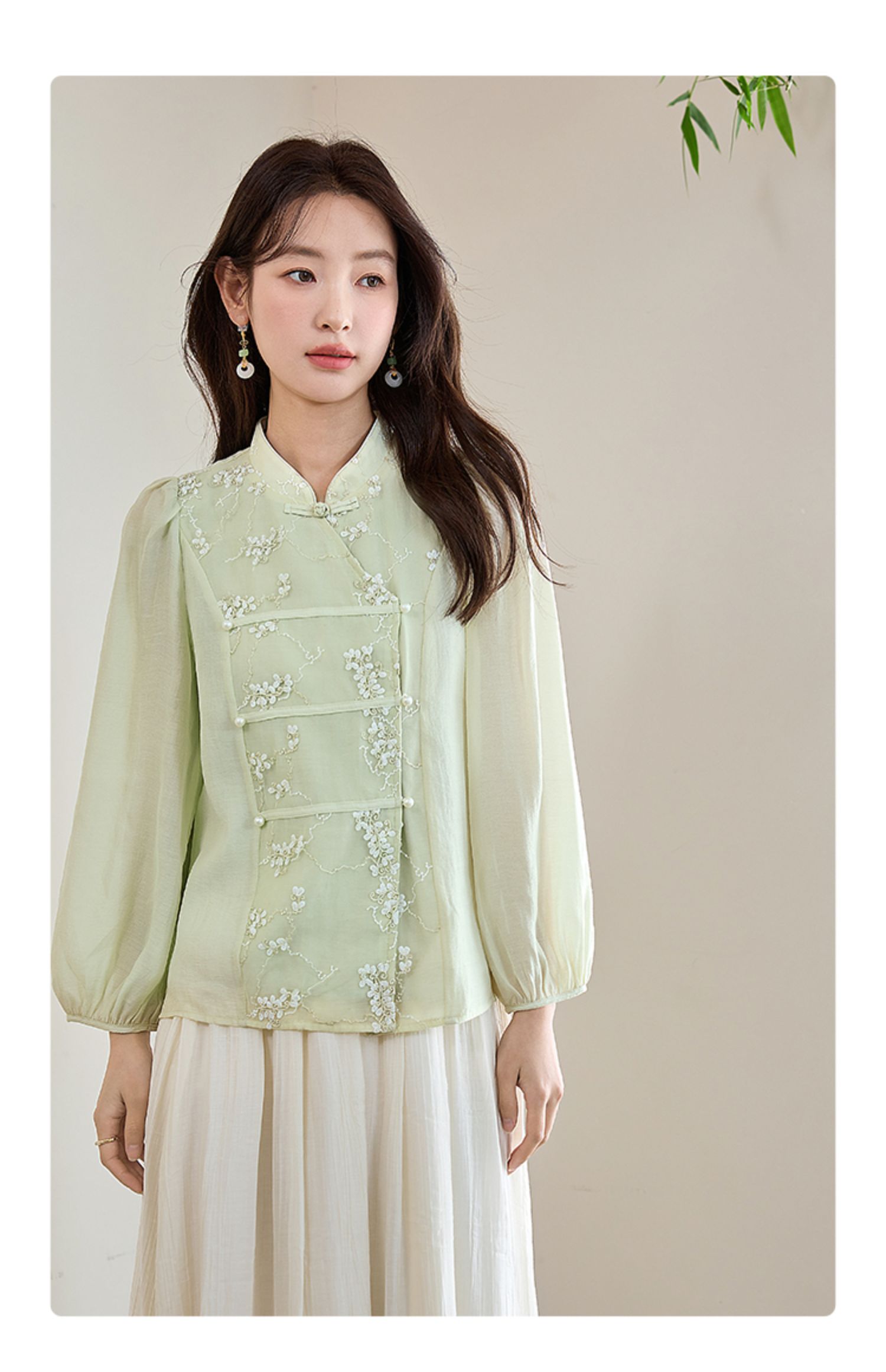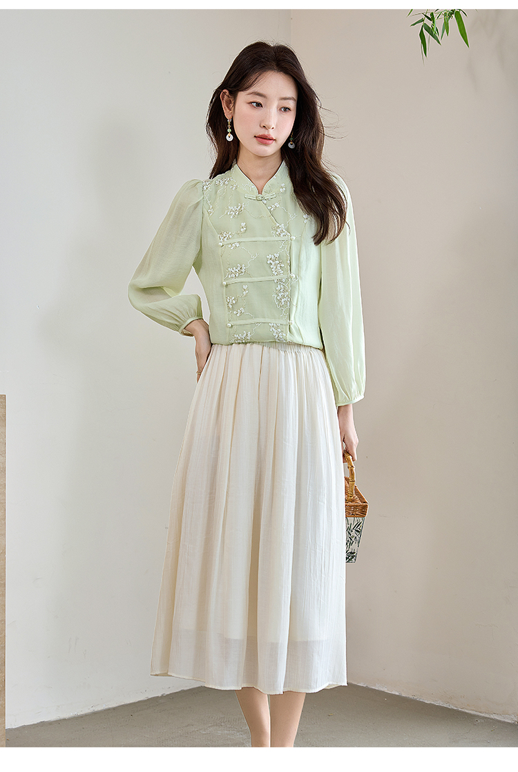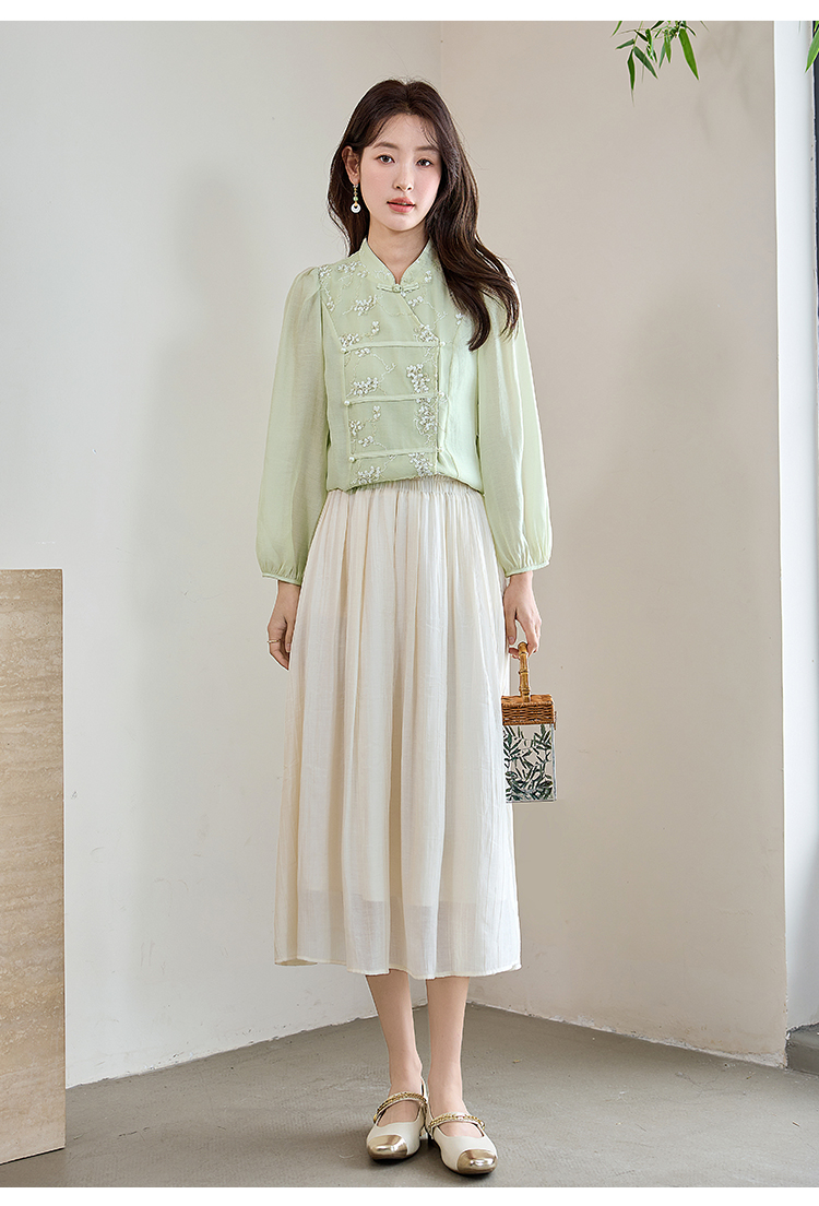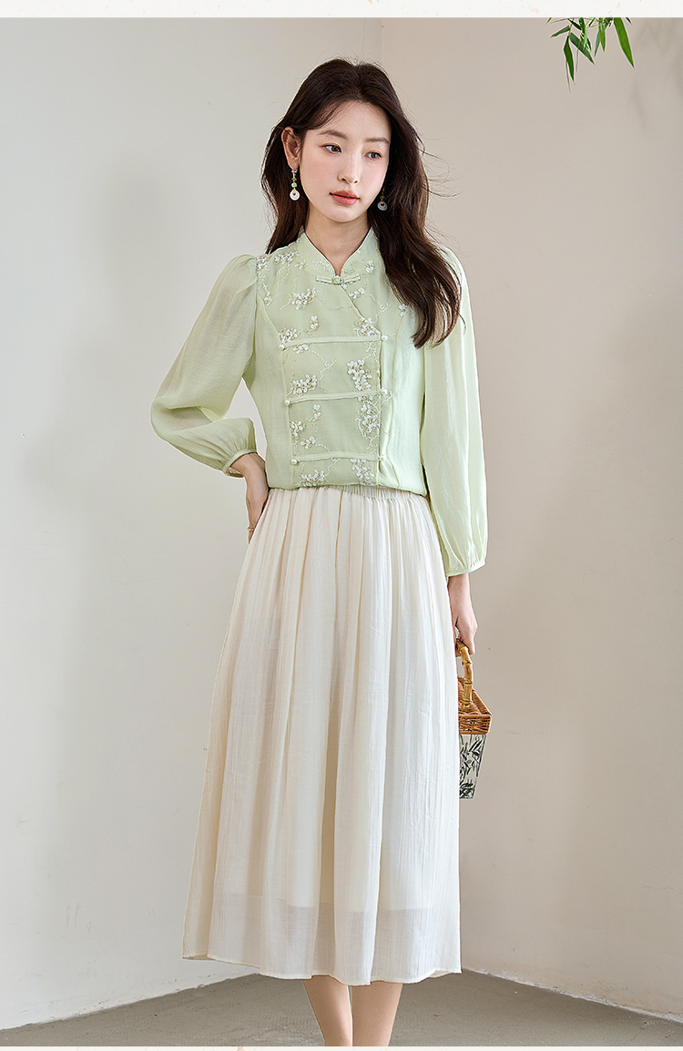 【五折购】熙世界莱赛尔天丝国风衬衫2025秋夏新款重工刺绣新中式衬衣上衣
