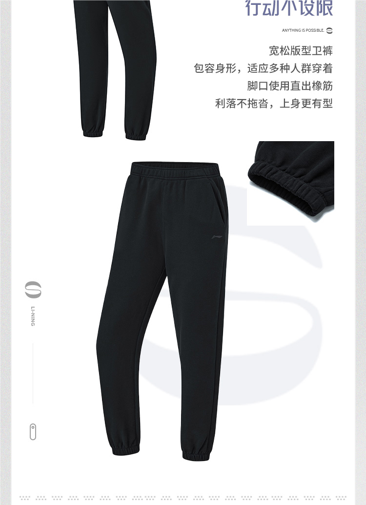 李宁女子2024秋季束脚宽松运动裤AKLU100-1