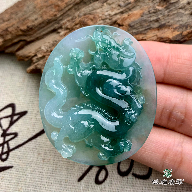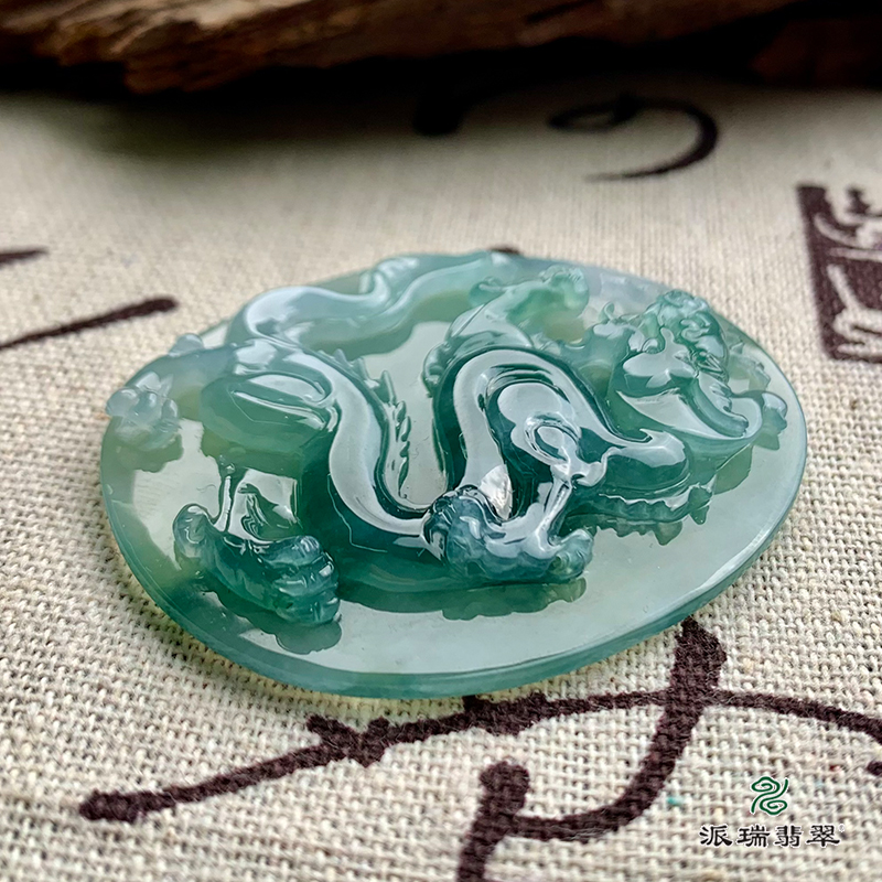 派瑞翡翠 翡翠挂件 糯冰种 飘蓝花