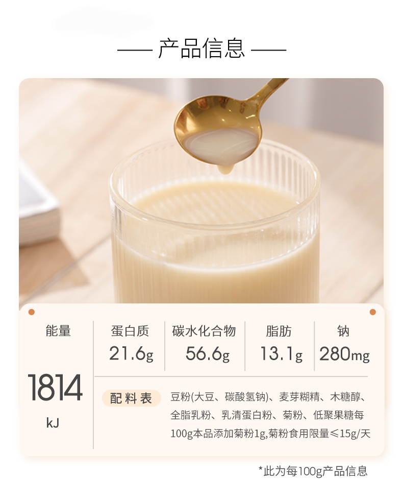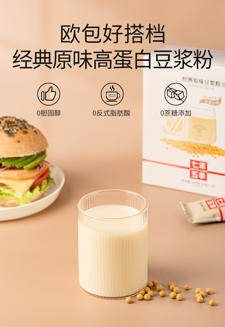 七年五季轻食豆浆粉经典原味五谷杂粮速溶无蔗糖精冲饮代早餐豆奶 高蛋白原味12袋/1盒