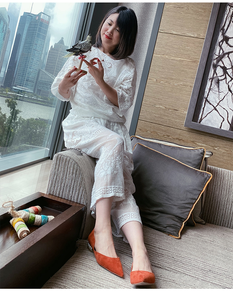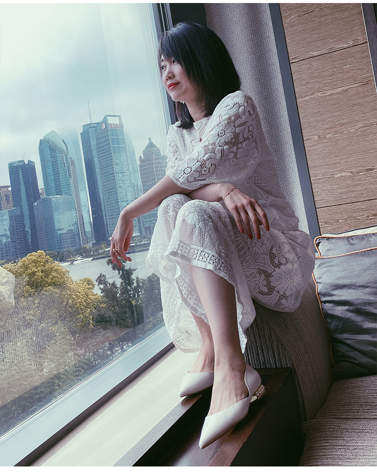 westory2020年夏新品镂空蕾丝波点蝴蝶结性感高跟细跟包头单凉鞋W20AH51941