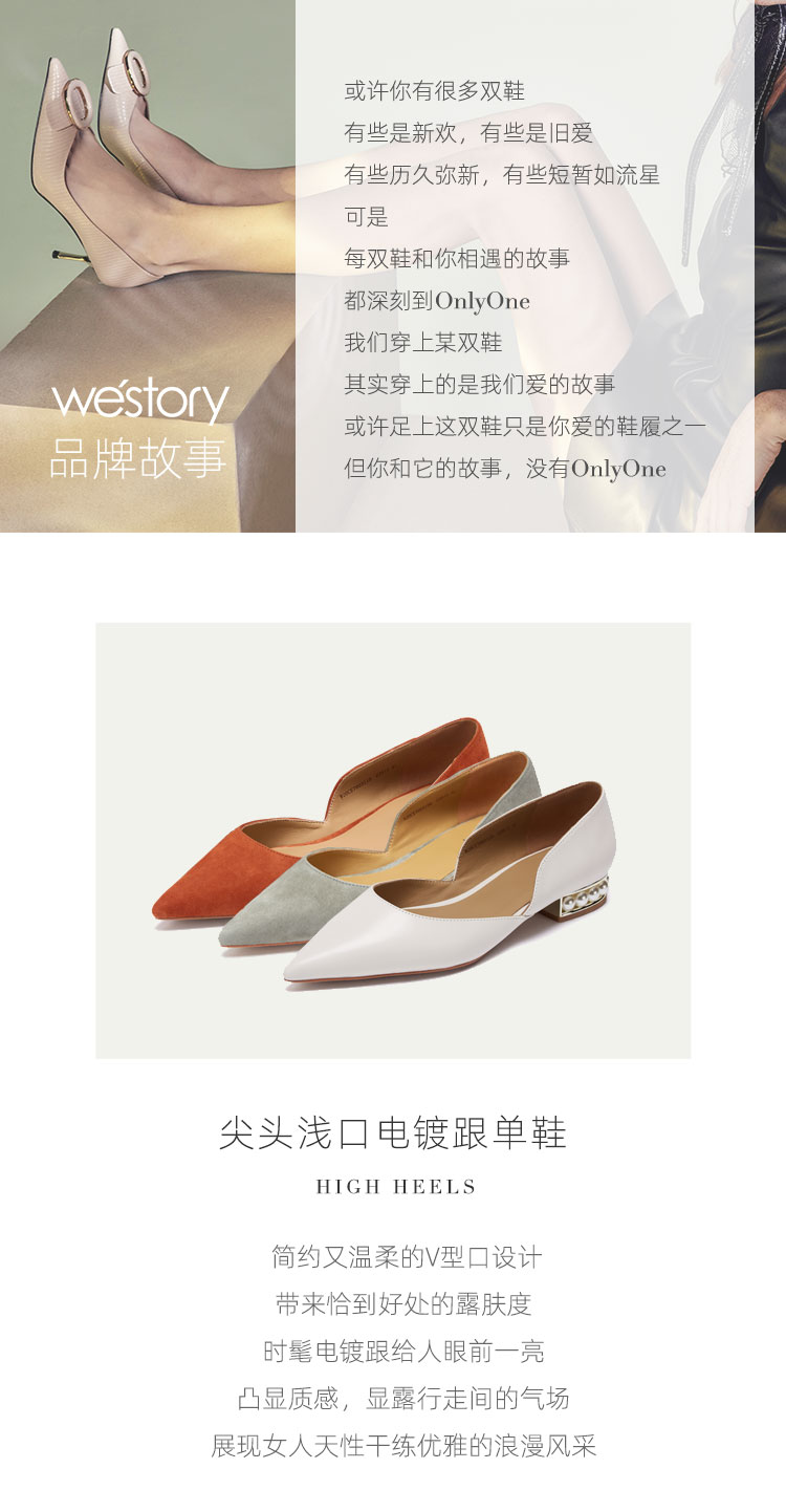 westory尖头细跟高跟鞋女新品真皮婚鞋新娘鞋52511