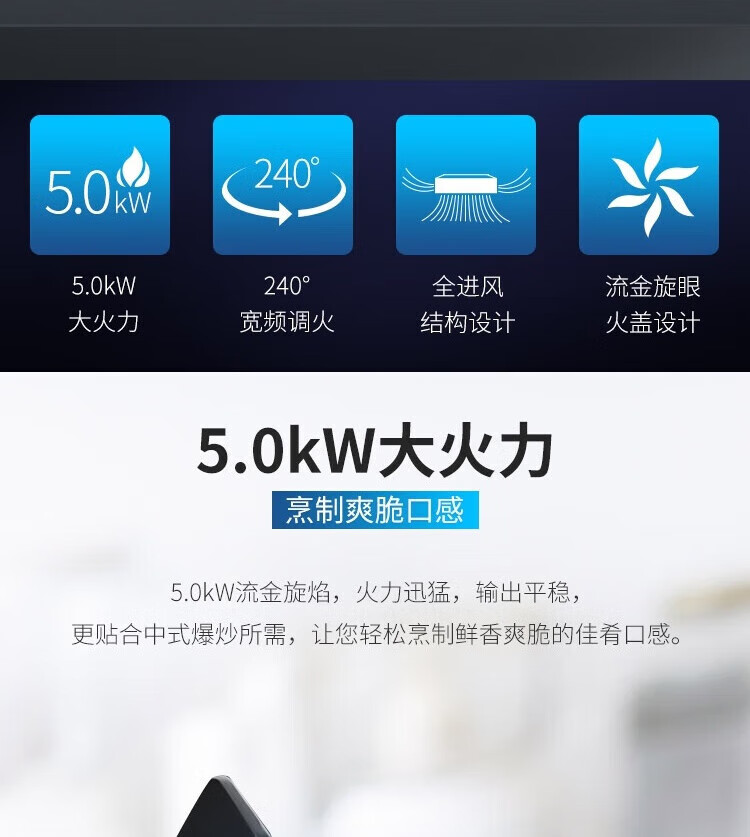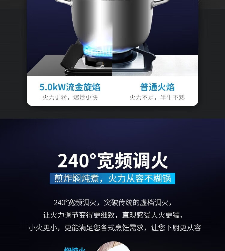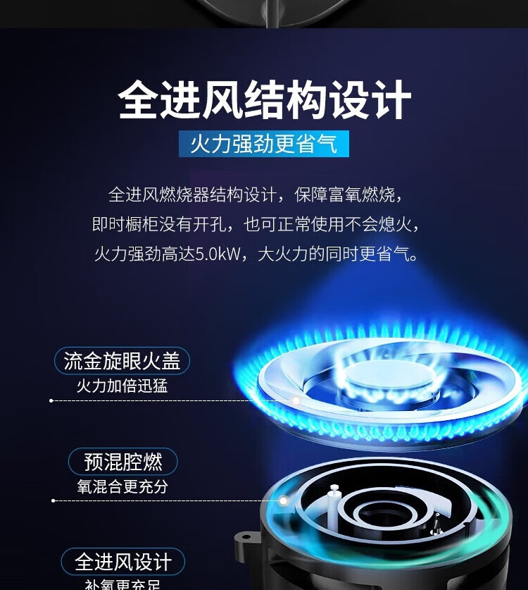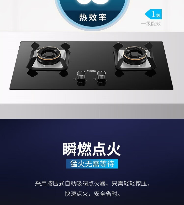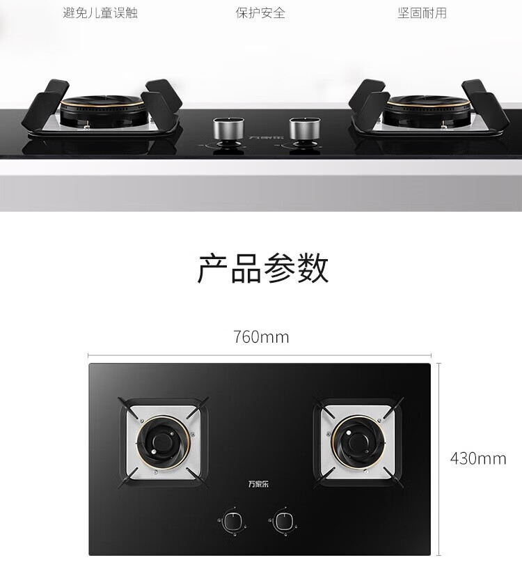 万家乐(Macro)JZT/Y-V2C(B) 嵌入式燃气灶全进风结构火力强劲