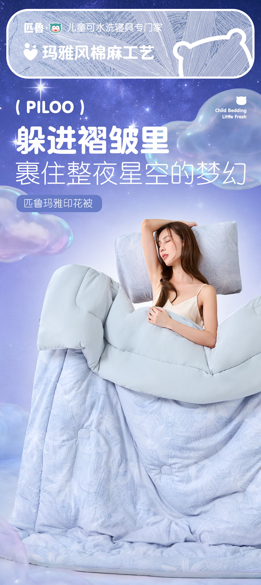 匹鲁玛雅印花被 棉麻手感 亲肤透气吸湿速干7A抗菌★★