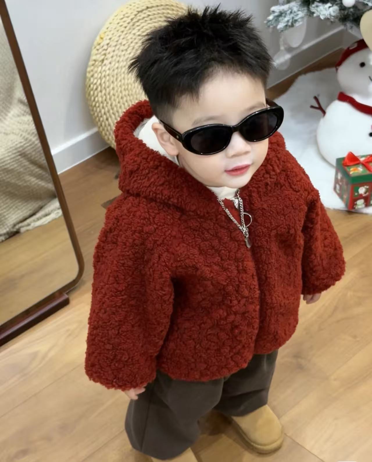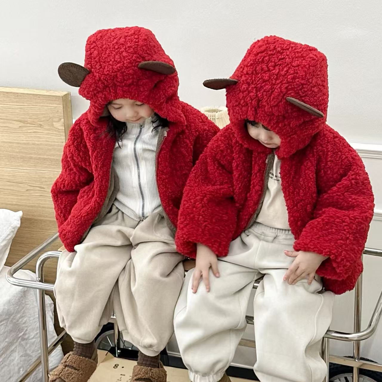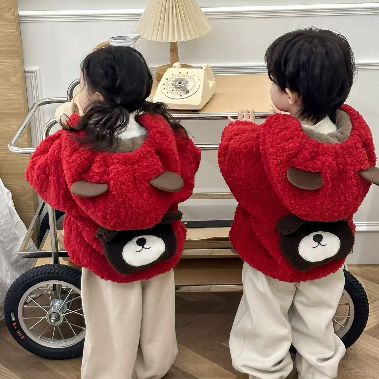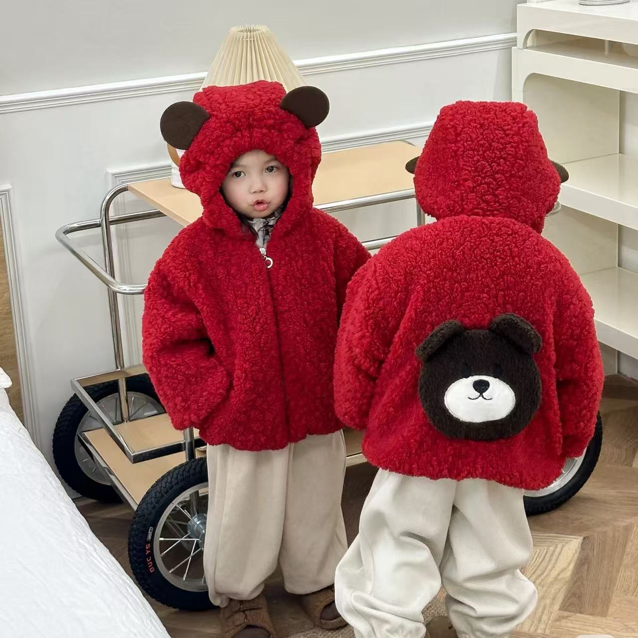 谁懂啊‼️超级有爱的兄妹装‼️过年氛围感拉满‼️儿童羊羔绒小熊外套新年拜年服男女童可爱毛毛衣兄妹拜年服加厚聚