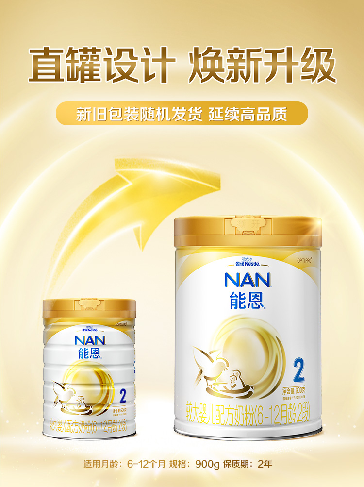 雀巢(nestle)能恩 较大婴儿及幼儿配方奶粉 2段(6-12个月婴儿适用)900克【雀巢】