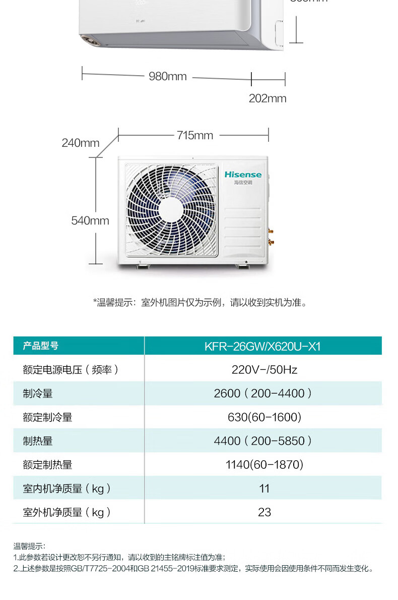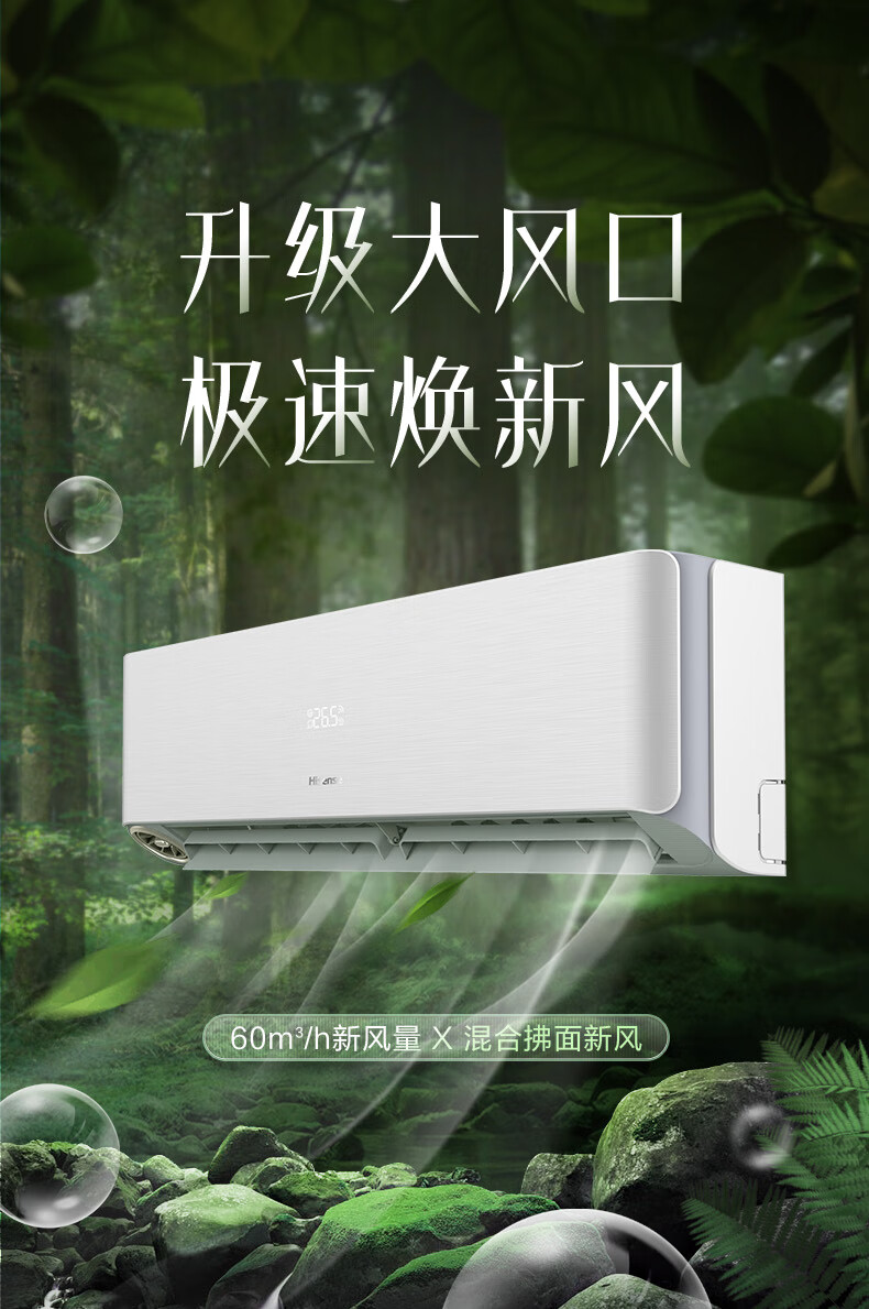 海信(KFR-26GW/X620U-X1) 1匹/1.5匹 新风空调新一级大新风量独立新风智能wifi低噪除湿壁挂式卧室挂机
