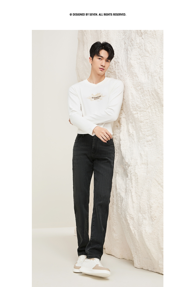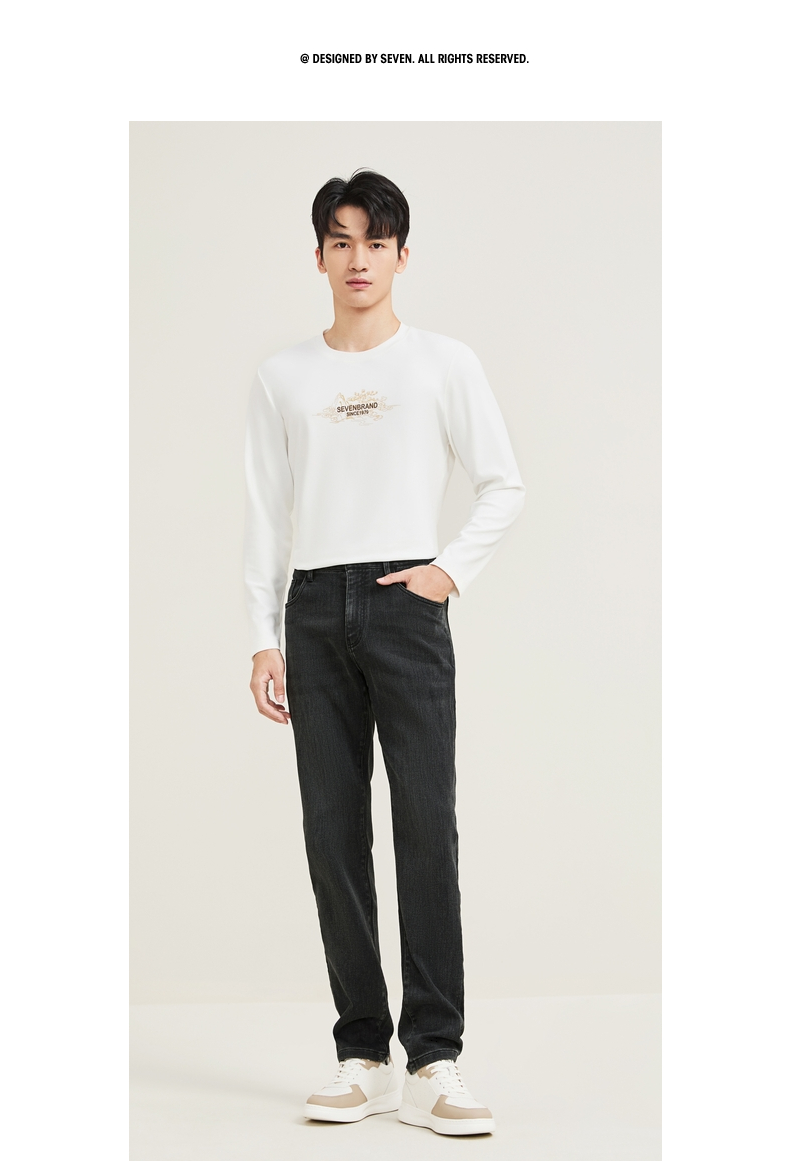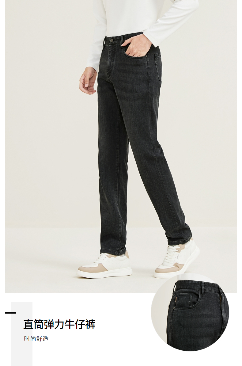 【莱赛尔】柒牌牛仔裤2025秋季新款男士弹力中腰直筒长裤休闲裤装129H71370