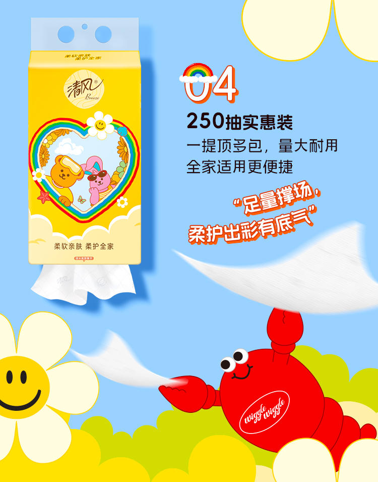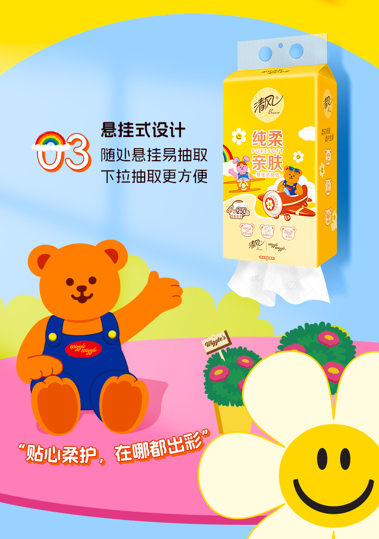 【品牌优选】清风挂抽4层250抽10提送挂钩wiggle小熊联名款