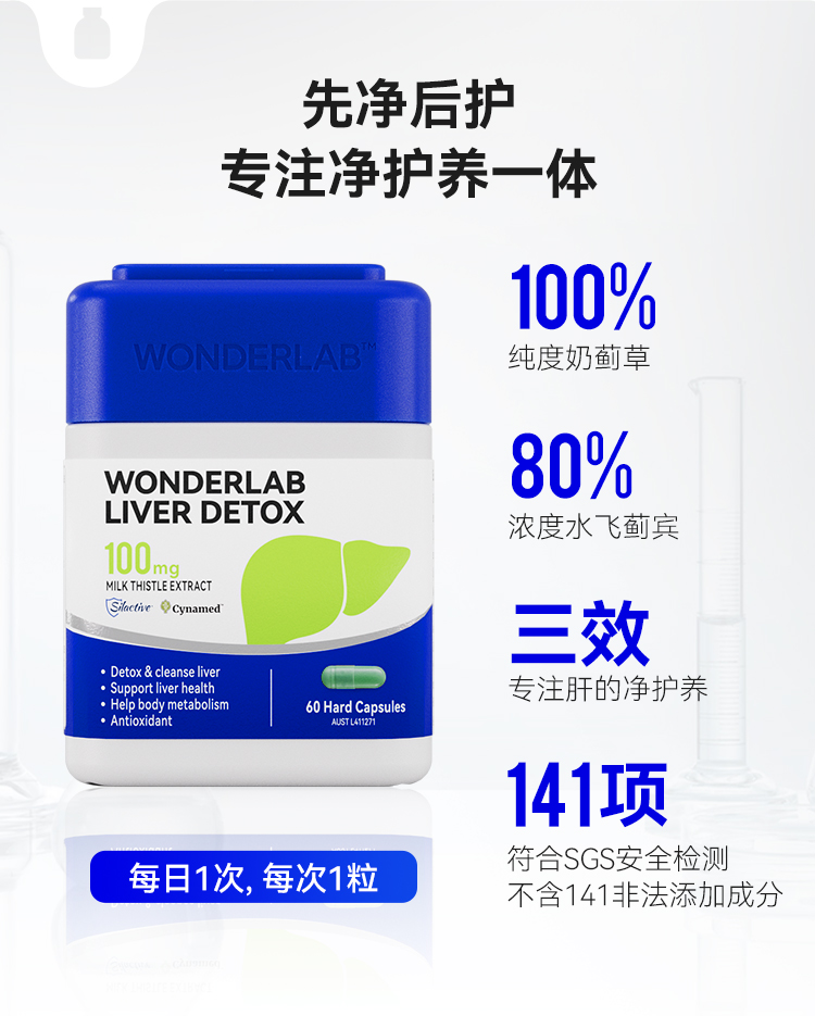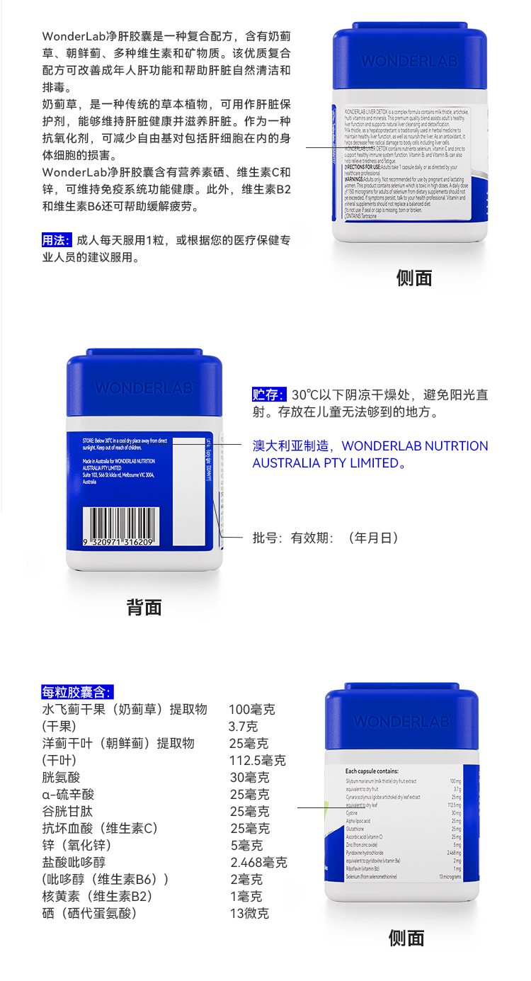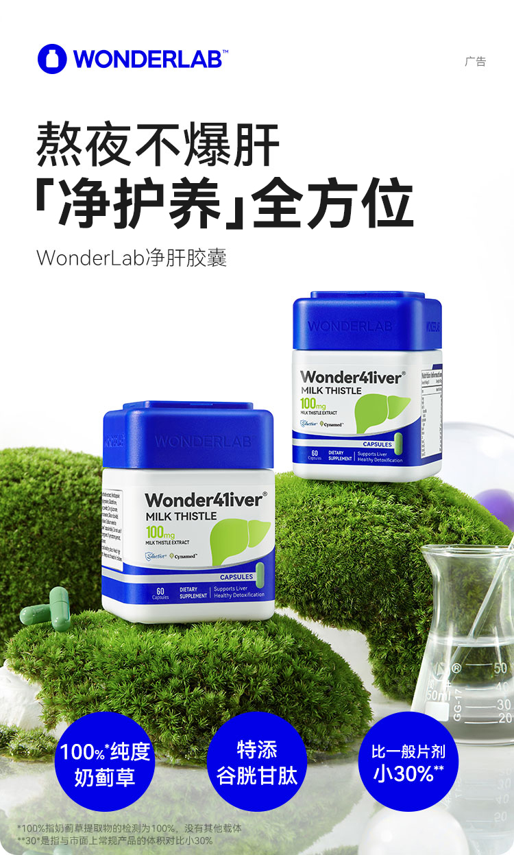 【震海轩专属】万益蓝WonderLab 奶蓟草净肝胶囊 护肝熬夜 谷胱甘肽60粒/瓶(宁波北仑保税仓直发)