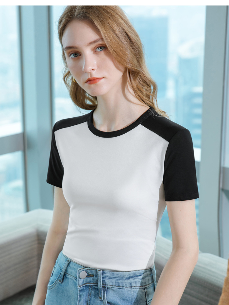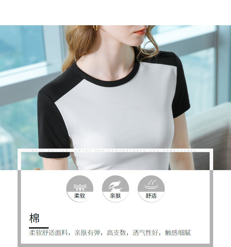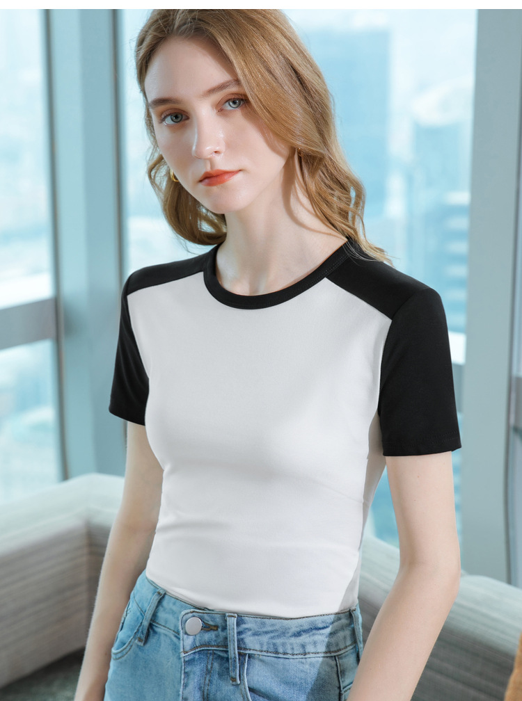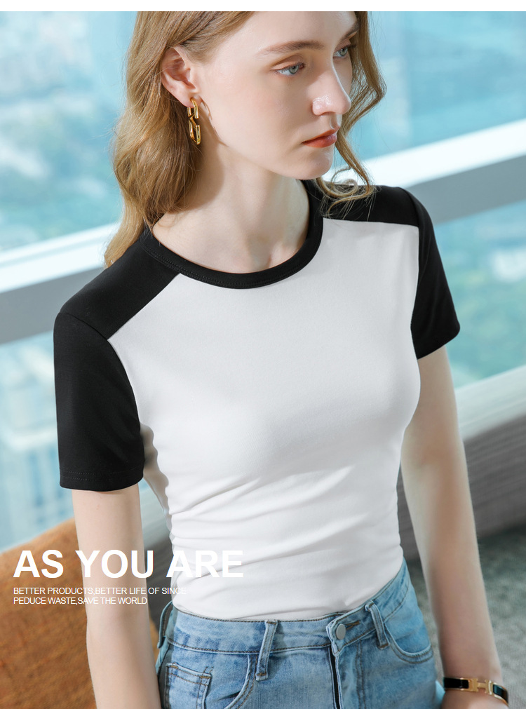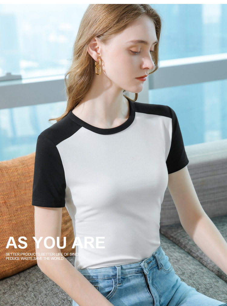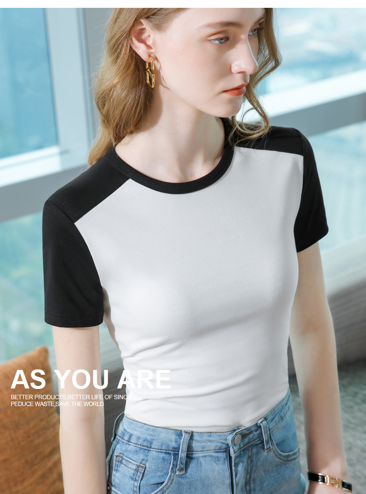 气质短袖t恤,撞色拼接圆领正肩棉体恤收腰上衣SG-T2X2483