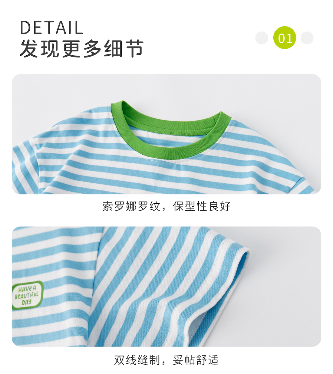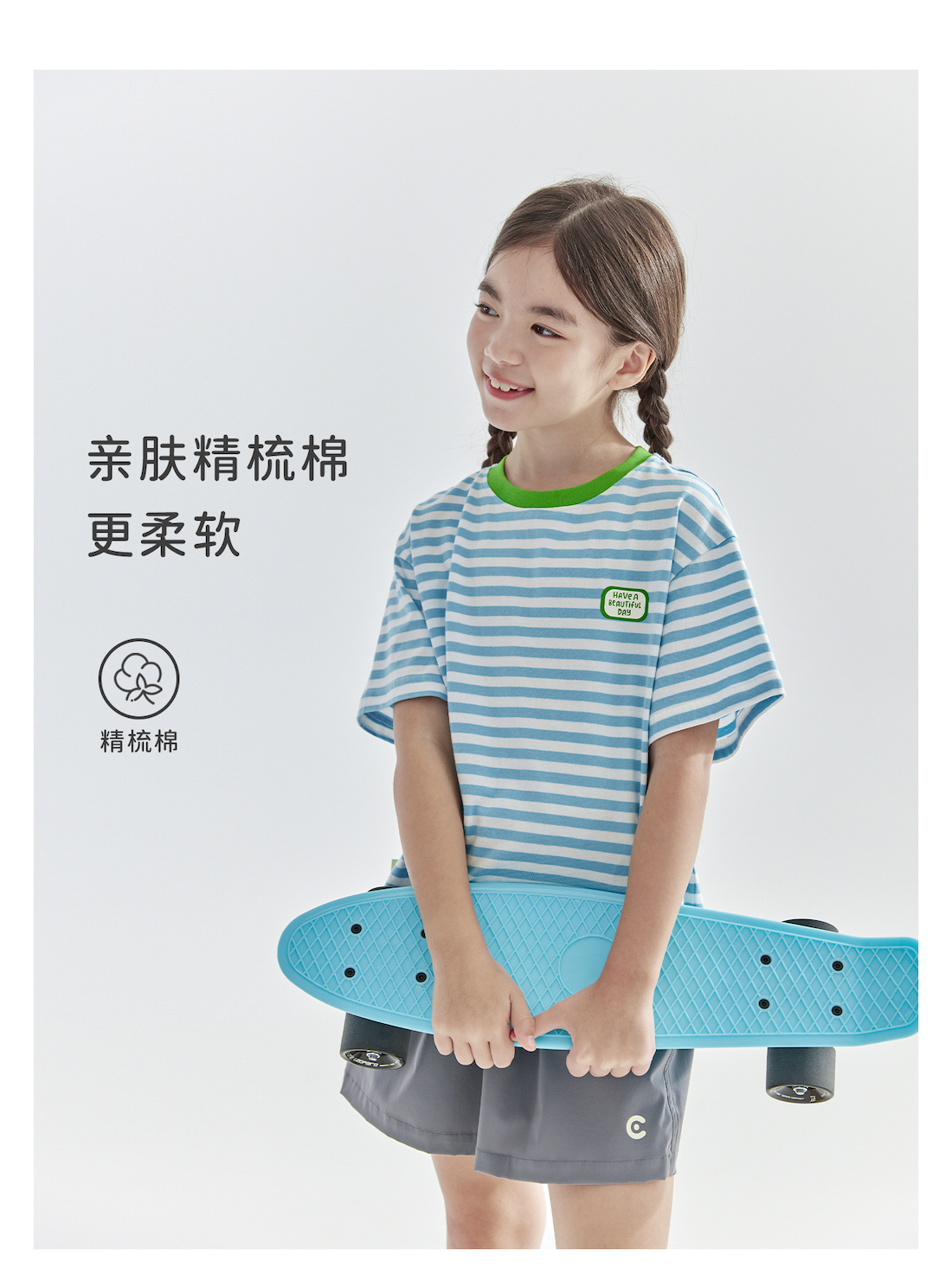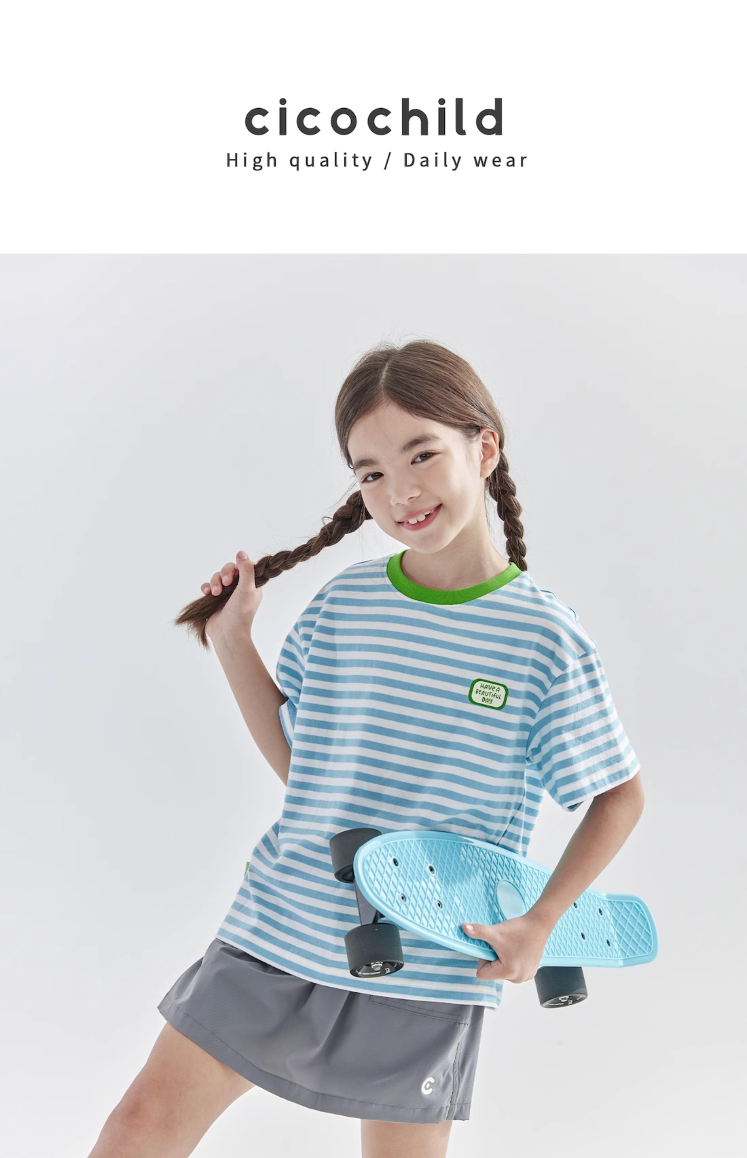 【代发】条纹短袖T恤 cicochild夏季款中大女童舒适亲子款蓝白条纹短袖