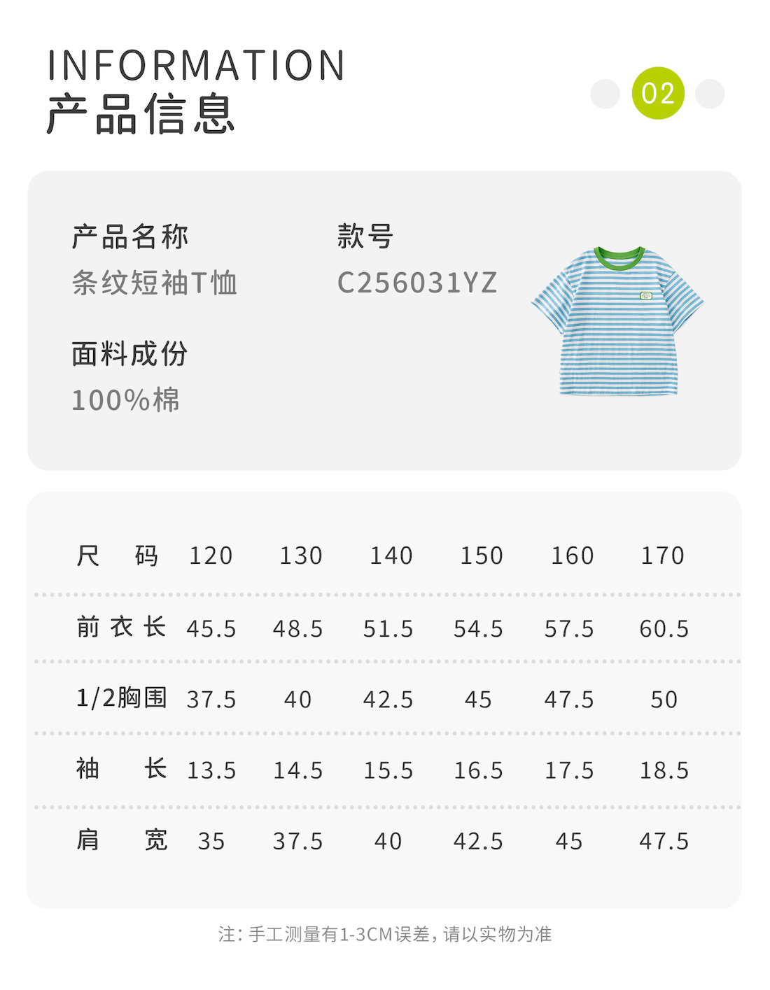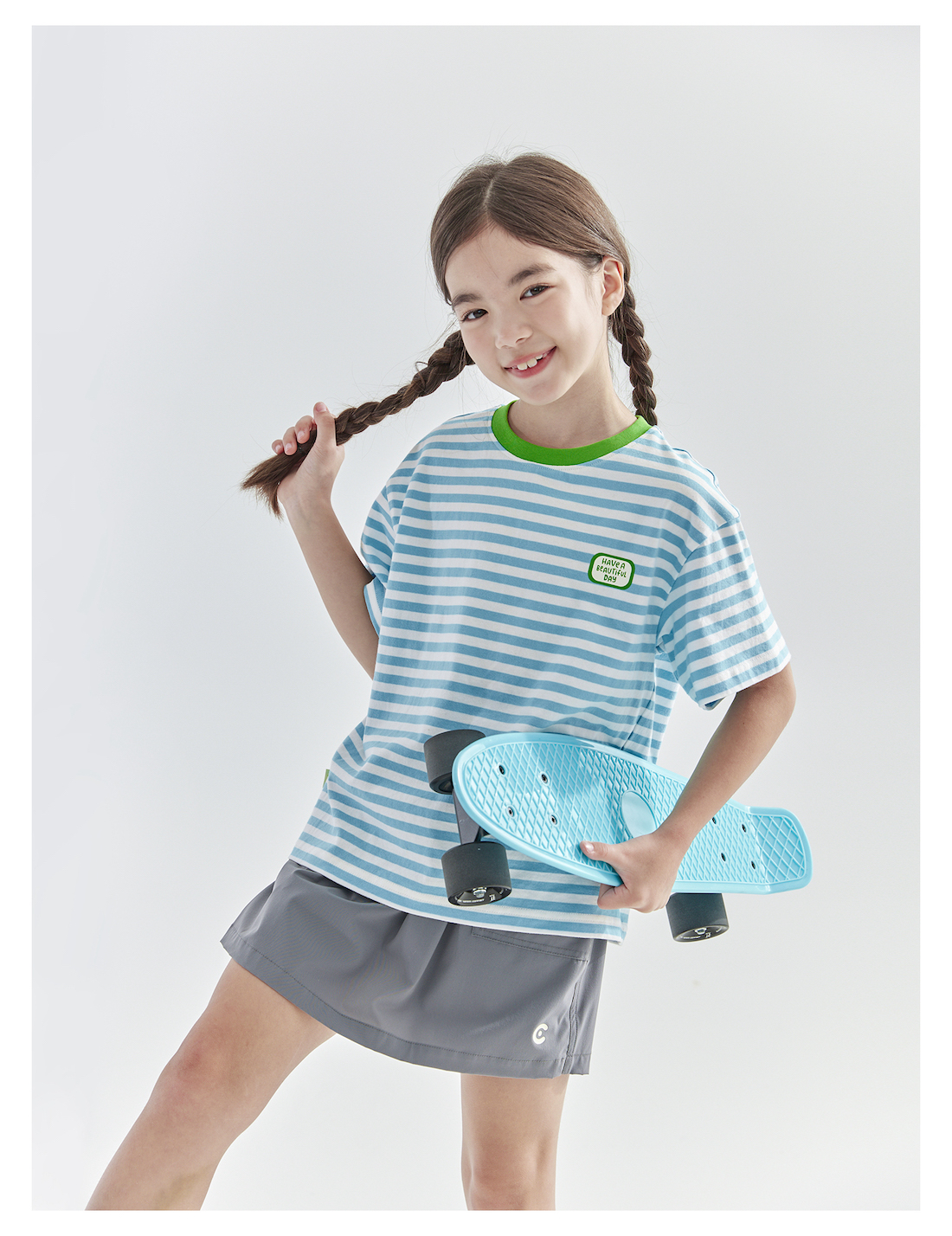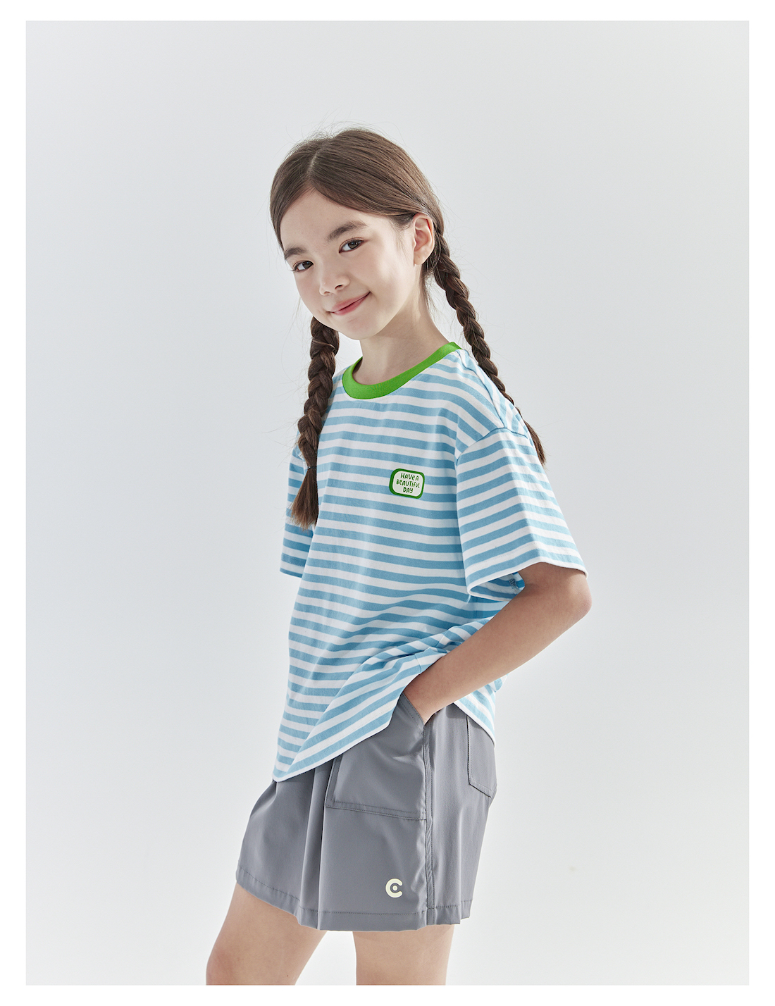 【代发】条纹短袖T恤 cicochild夏季款中大女童舒适亲子款蓝白条纹短袖