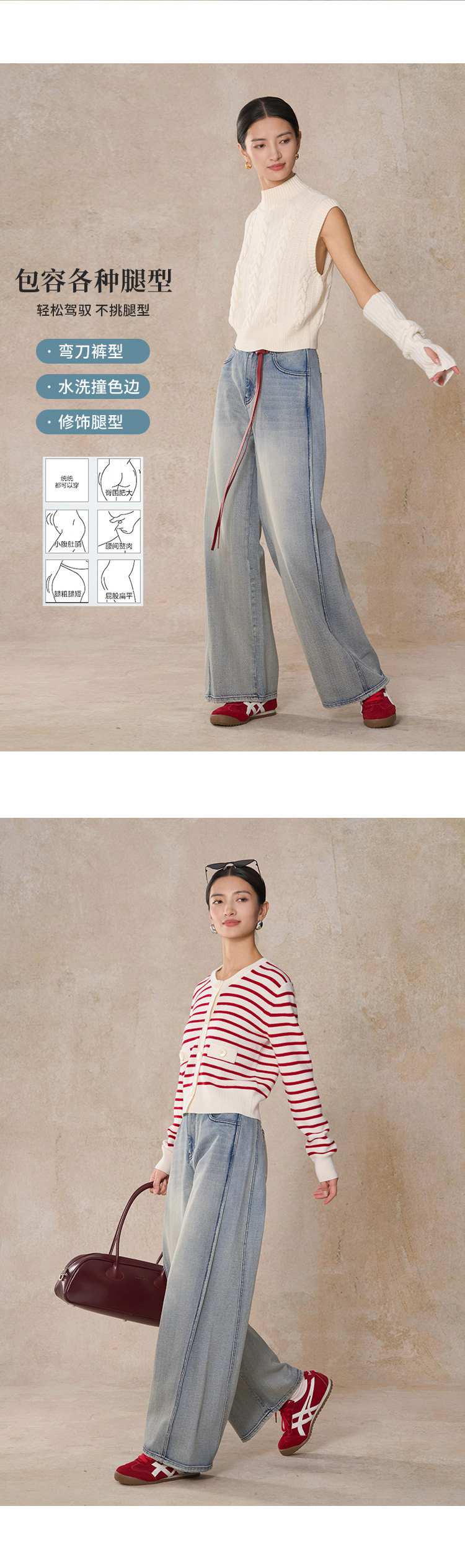 【商场同款】CNT5988 “ 弯刀裤 ” 松弛感穿搭宽松仔裤 弯刀廓形 时髦有腔调