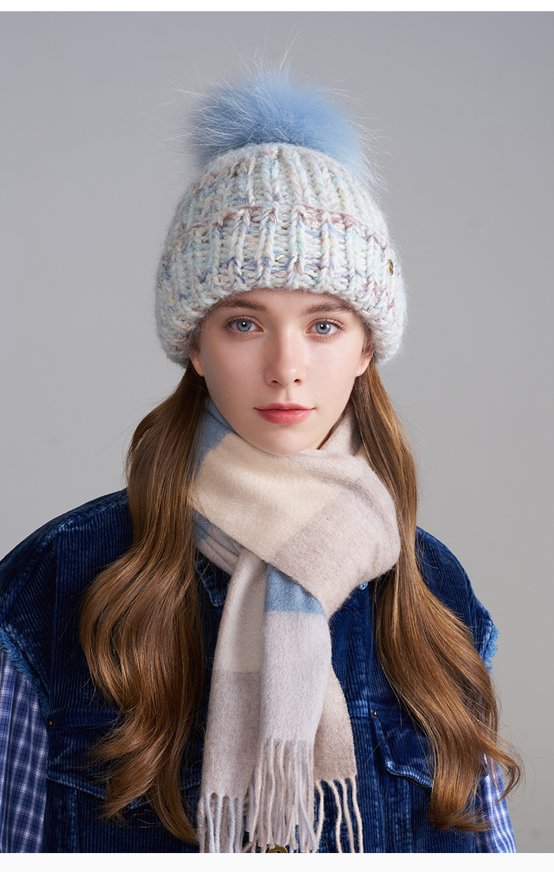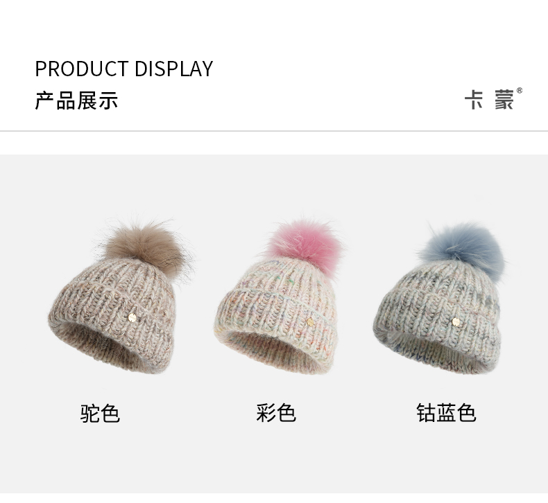(丹妈)Kenmont卡蒙针织帽女2025冬季新款彩色毛线帽子保暖毛球帽子