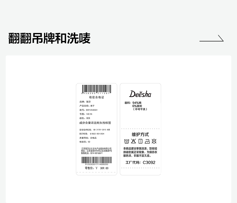 笛莎/Deesha 2026年春季新款女童弯刀牛仔裤